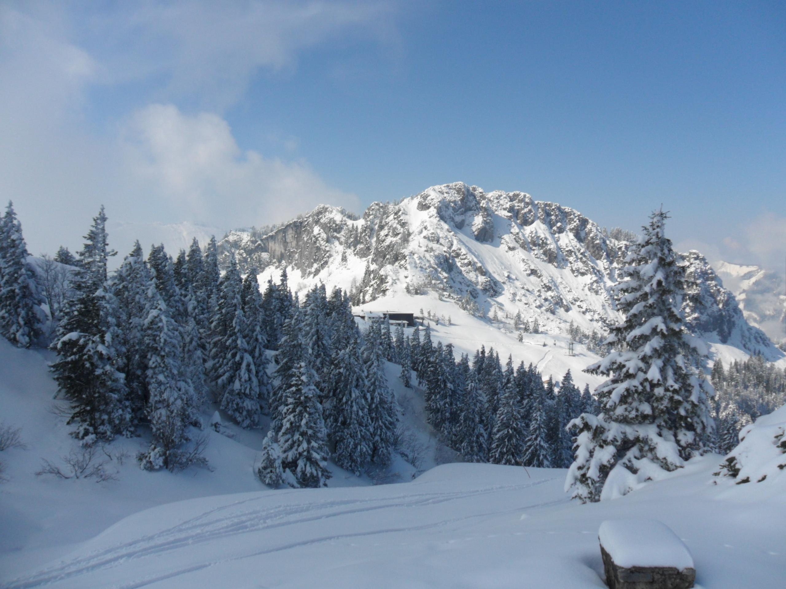 Heute nochmal seichtes Programm auf der Kampenwand. Oberhalb der Almen schöner Pulver auf Grundlage, unterhalb der Almen Neuschnee bei fehlender Grundlage. Diverse Feindkontakte lassen sich dort nicht vermeiden.