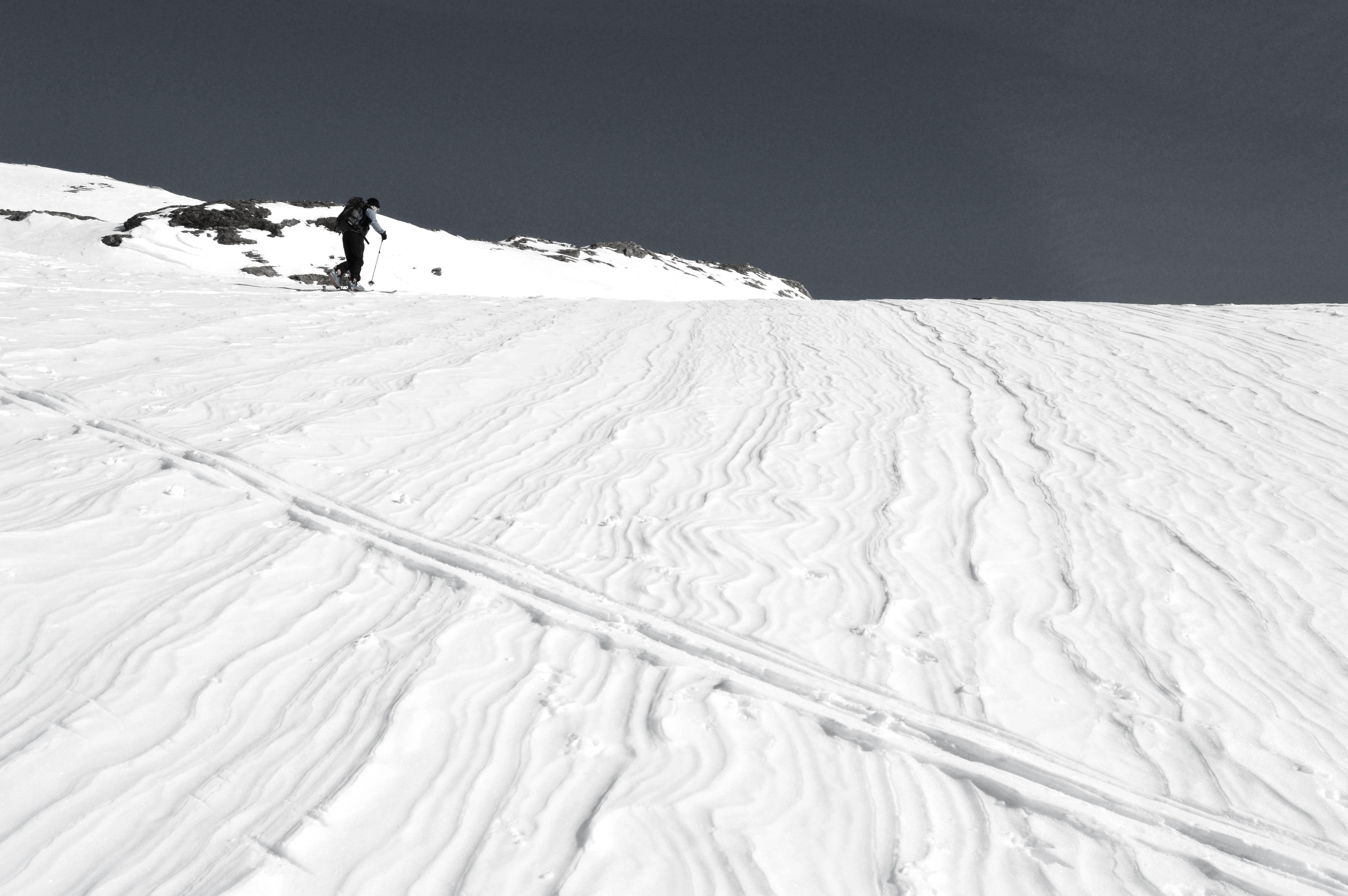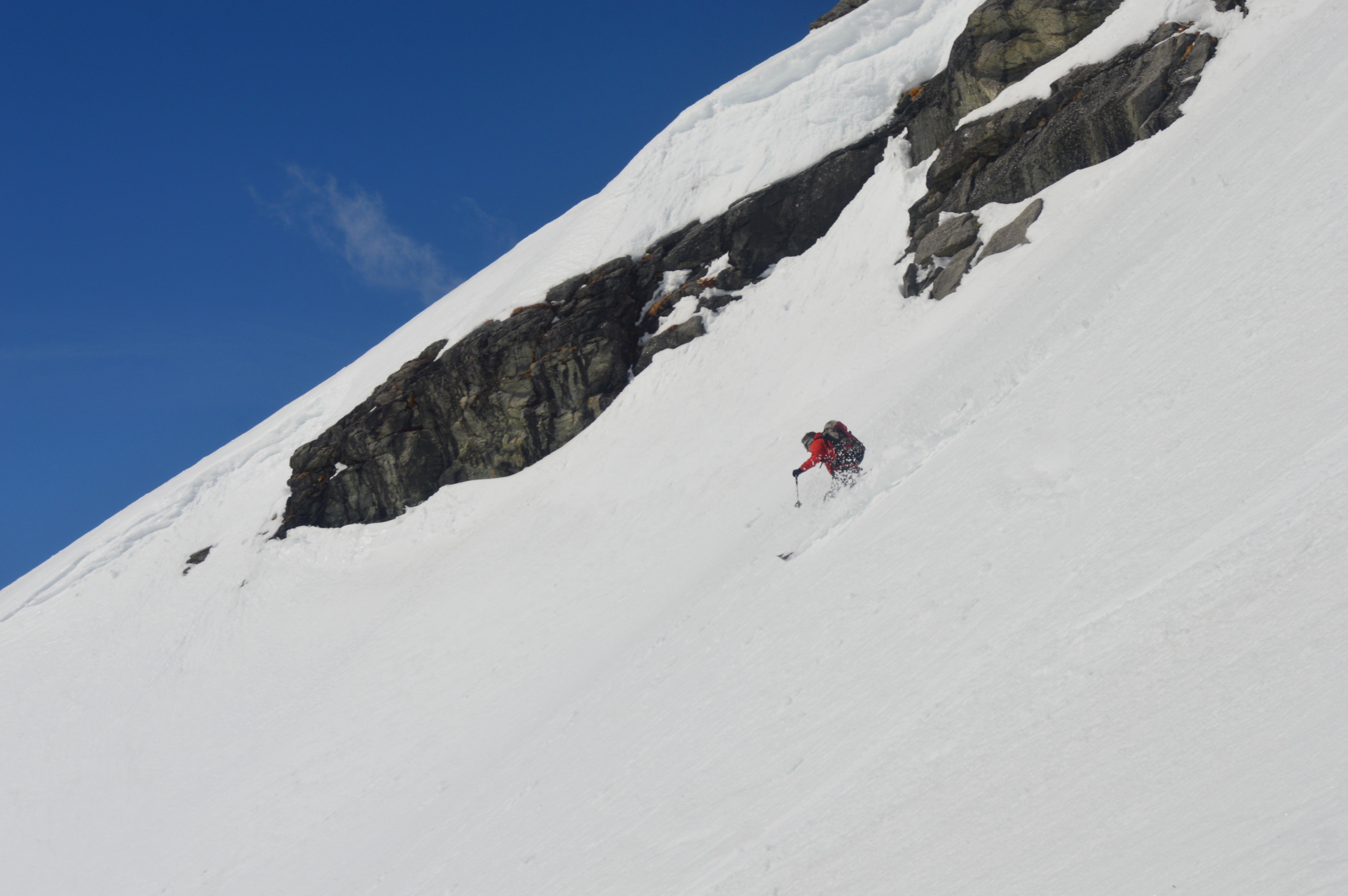 Der Schnee war vom Start weg durchgefrohren. Der steile Gipfelhang firnte um 11 Uhr perfekt auf, bei der Querung Richtung Seekopf hatten wir einen Windharsch-(Pisten)deckel und danach gabs nur noch Firn bis nach Innergschlöß.