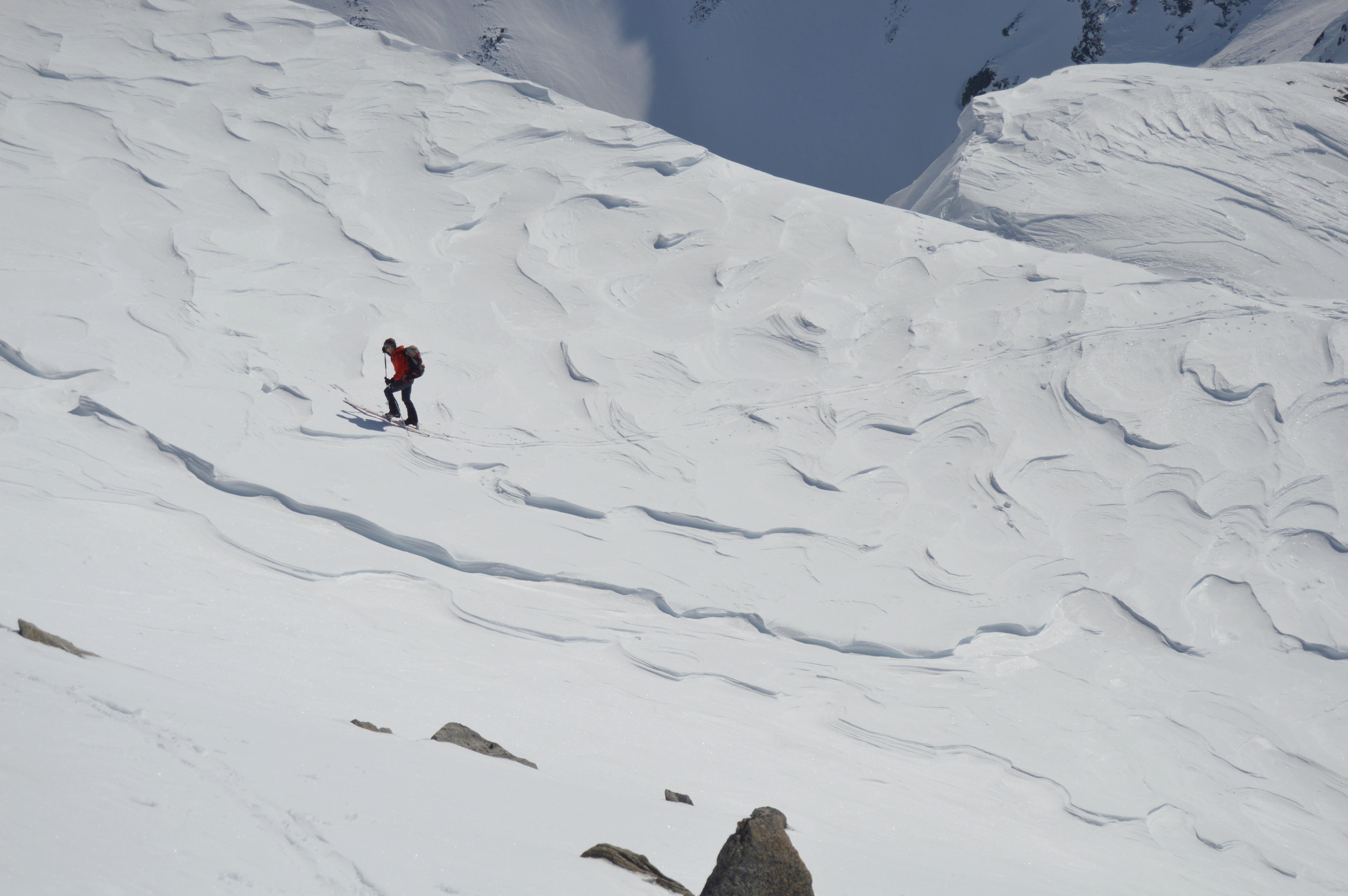 Im Tal sind, wie momentan überall die Nordseiten komplett abgeganen. Es liegen riesige Schneebretter im Talgrund. Südseitig noch nicht! - Ein früher Aufbruch ist bei dieser Tour also unbedingt erforderlich sonst könnte es im Villtragental unangenehm werden. Das Einzugsgebiet ist enorm! Hier wäre es dann sinnvoll am Seekopf vorbei zur Abfahrt der Roten Säule zu queren und die schönen Südhänge nach Innergschlöß abzufahren.