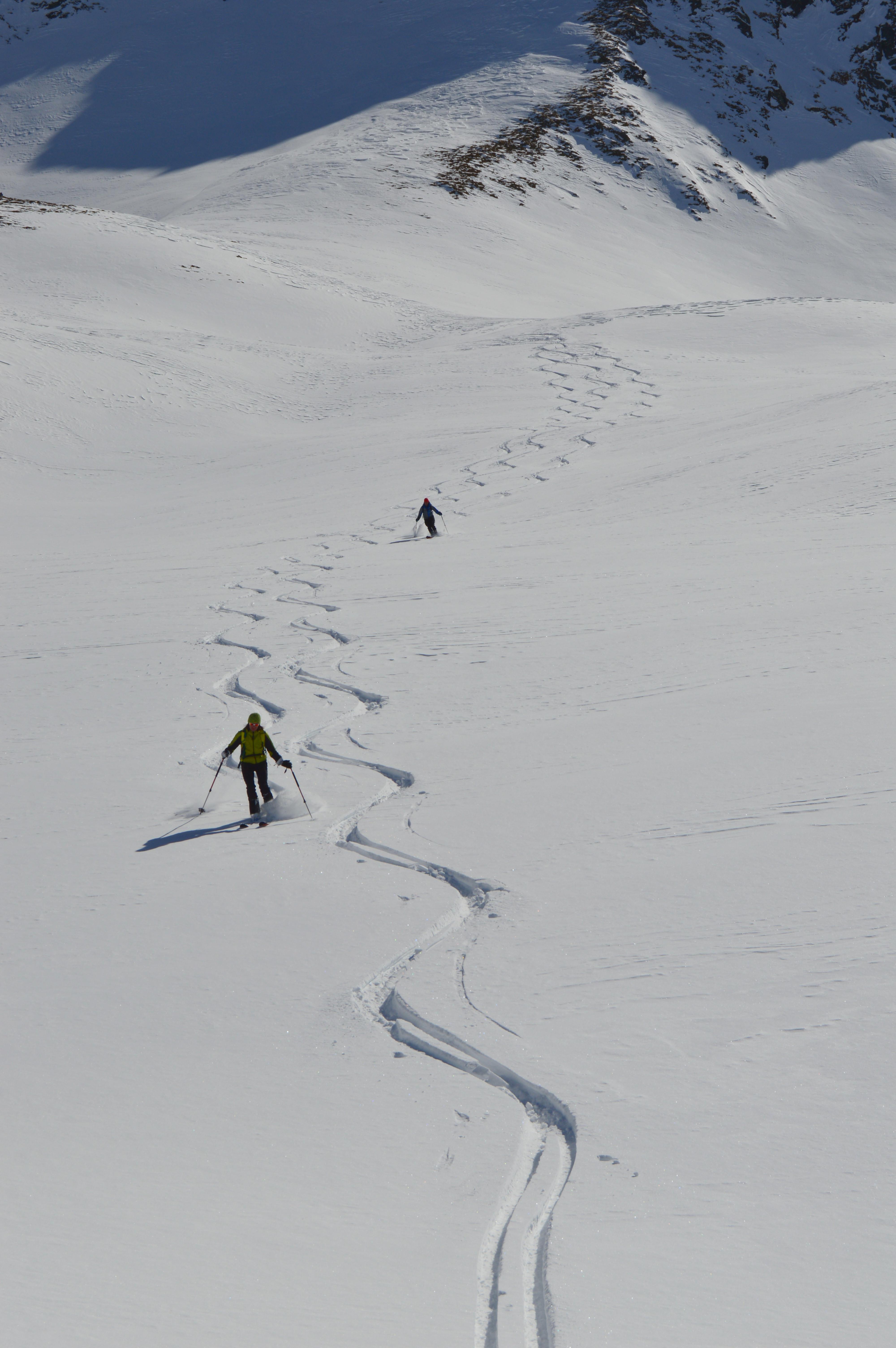 Schee woas... momentan fehlen mir noch die Worte, owa sovui konn i sogn: Oiso von der Höhle entlang der Lawine danebn war super tragender firn, ab dem latschgürtel – MAN MUSS ES GERN TUN-SCHNEE…..dann die aufgeweichte, aber durchgehend befahrbare straße herunter….insgesamt a nettes morgenprogramm…