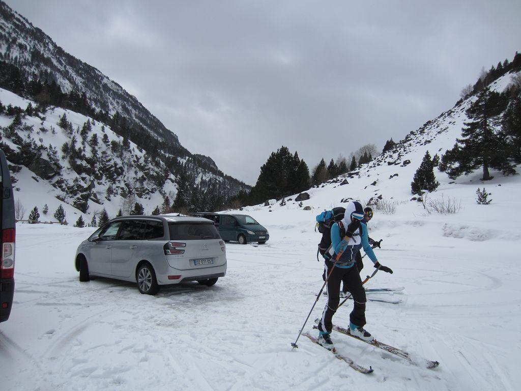 Nach den vier wunderbaren Skitouren im touristisch geprägten Arantal, Weiterfahrt nach Westen, nach Benasque dem "Chamonix " der Pyrenäen, von dem wir angenehm überrascht sind, ein "Bergdorf" das trotz vieler Hotels seinen Charme erhalten hat, weiter zum Hospital auf ca. 1800m.Aufstieg zum Refuge Renclusa 2140m, ganzjährig geöffnet, etwas kühl im Gastraum, aber mit Warmwasserdusche abends, 6er Zimmer mit WC, gutes Abendessen, spärliches Frühstück,