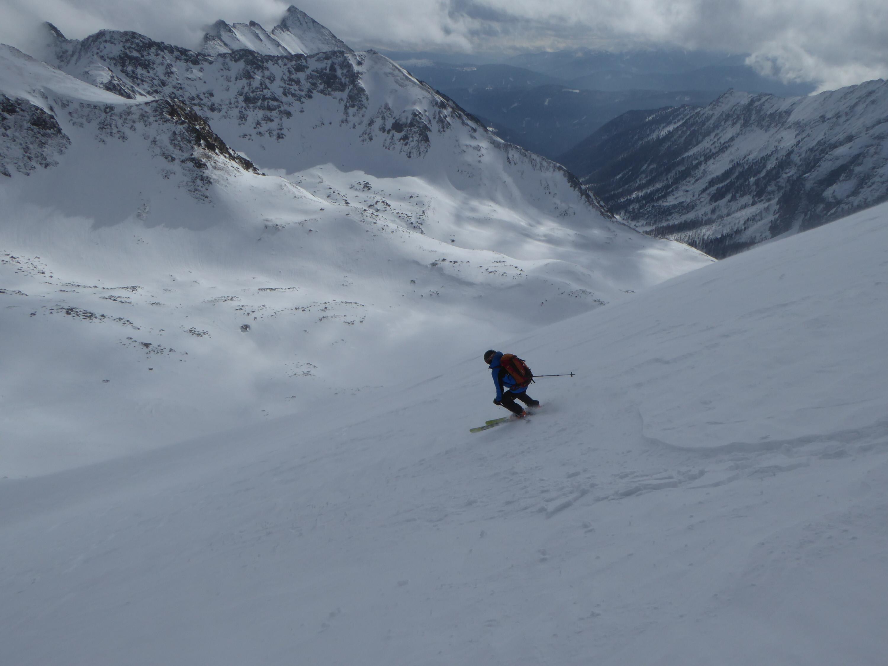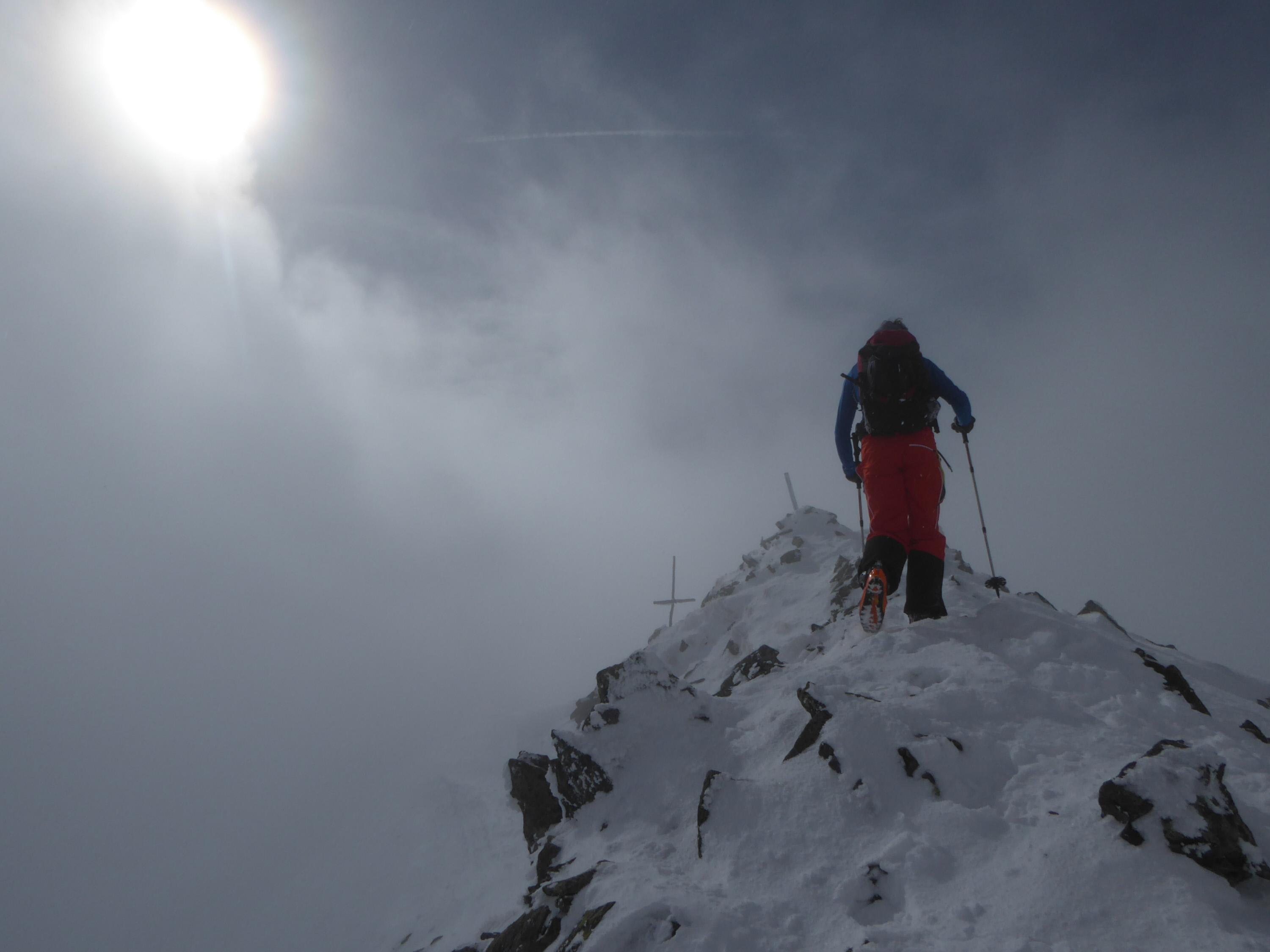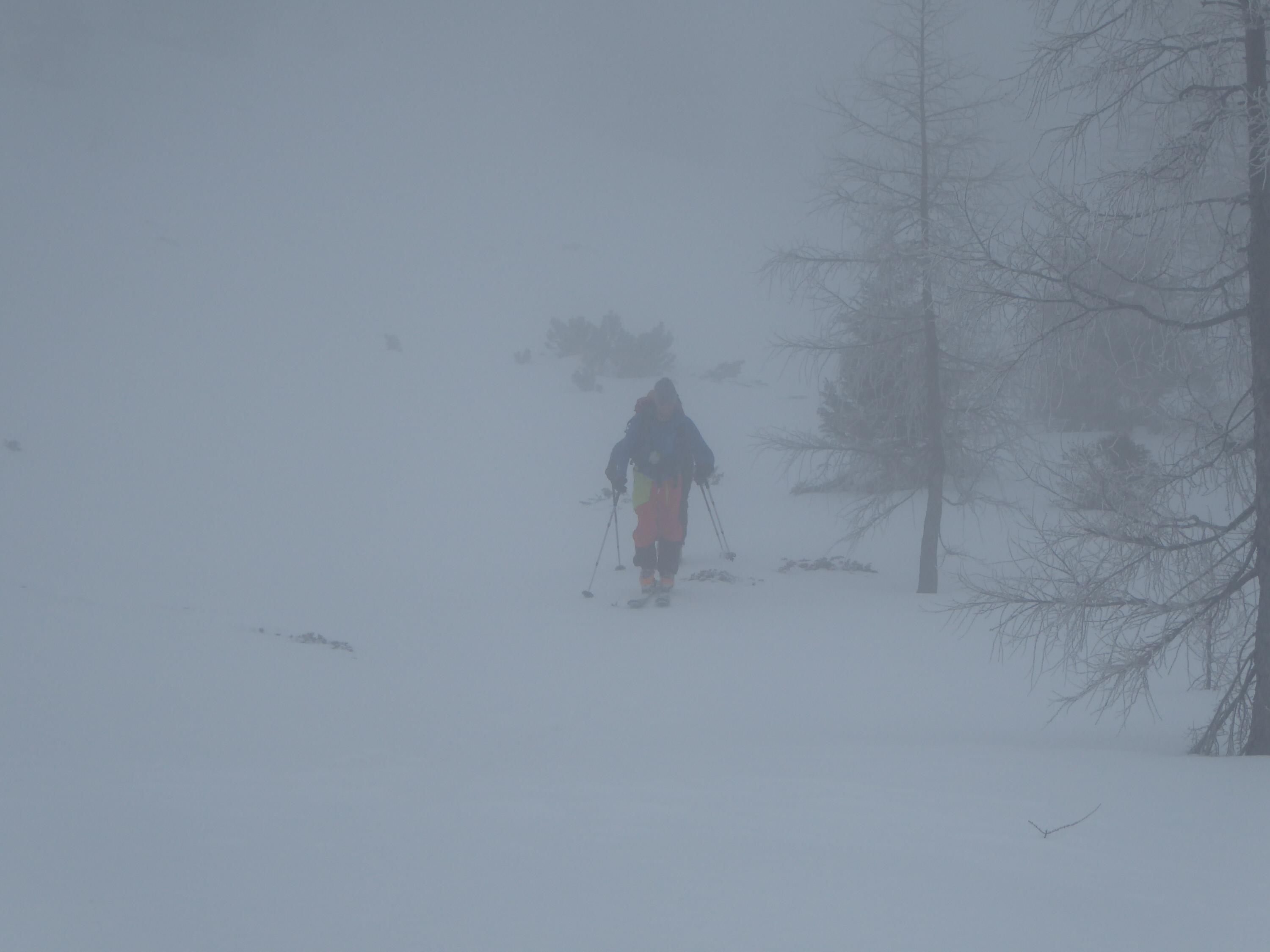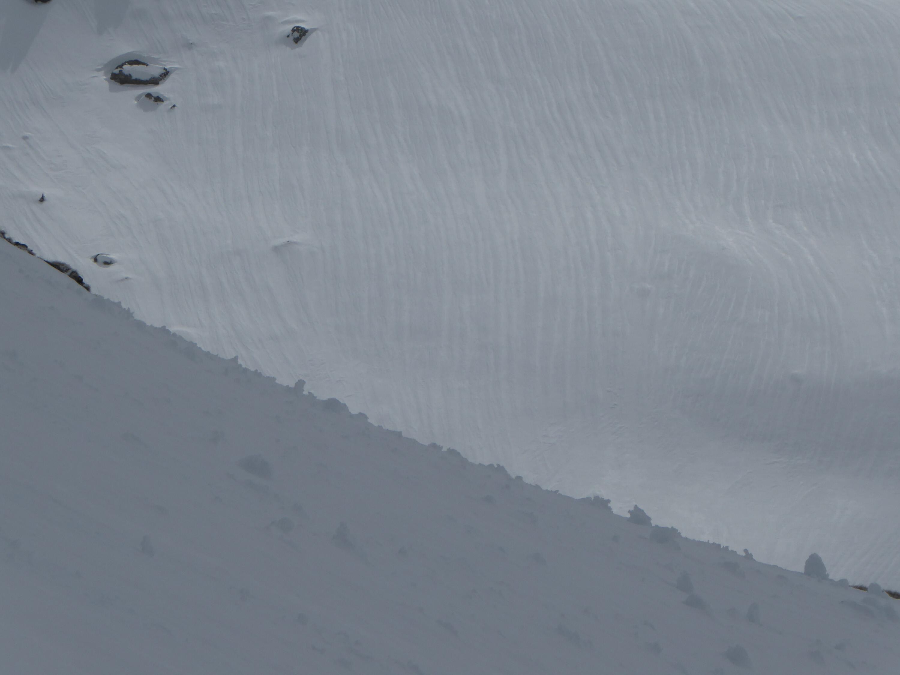 Abwechslungsreiche Tour über mehrere Karstufen im Talschluss des Rantentals; auf Skiern vom Ausgangspunkt (Abzweigung Preber- /Rantental) zum Gipfel und wieder zurück; durch den Regen und die nachfolgende Abkühlung ist der Harschdeckel stellweise pickelhart und spiegelglatt; Harscheisen waren daher für die steileren Passagen jedenfalls angezeigt; mit dem glatten Harschdeckel geht der Triebschnee keine Bindung ein (zumindest nicht vor der nächsten Erwärmung), daher zahlreiche spontan abgegangene kleine Schneebretter aus dem Steilgelände