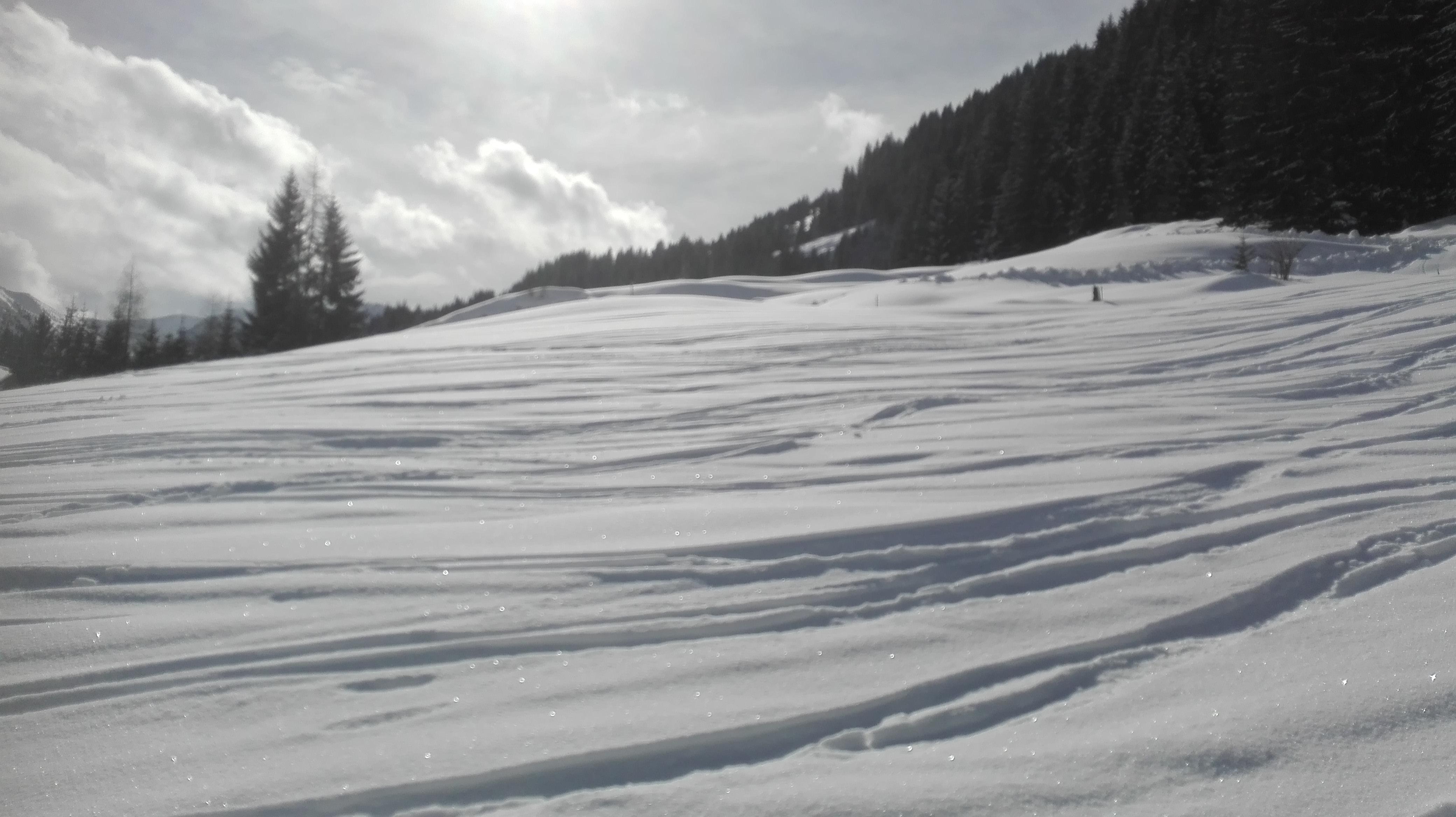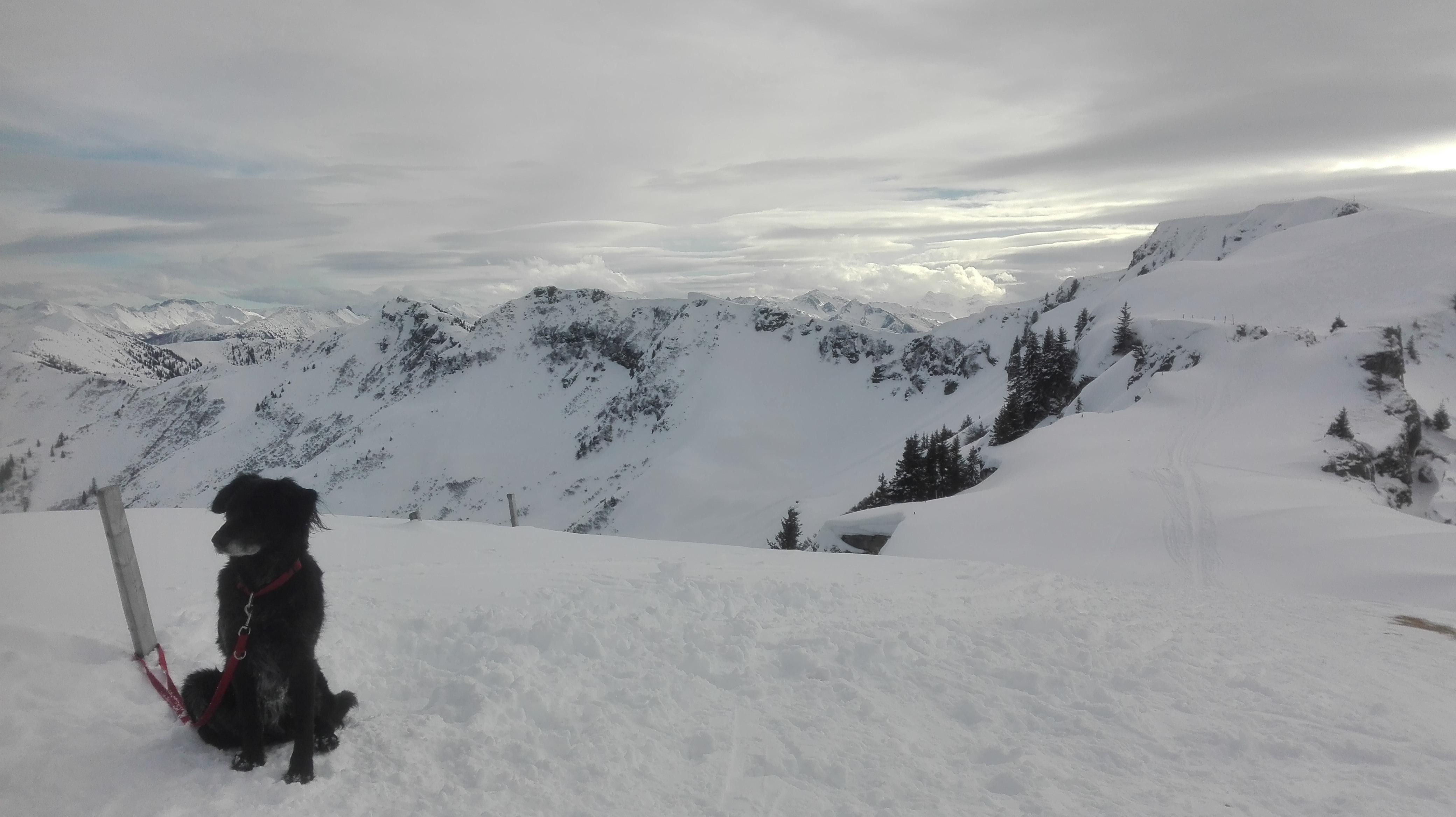 Abfahrt dann schon etwas anstrengender da ziemlich zerfurcht und teilweise Bruchharsch, aber es gab noch ein paar Stellen mit Pulverschnee. Für mich und Stella eine schöne Tour, wird sicher nicht das letzte mal gewesen sein.