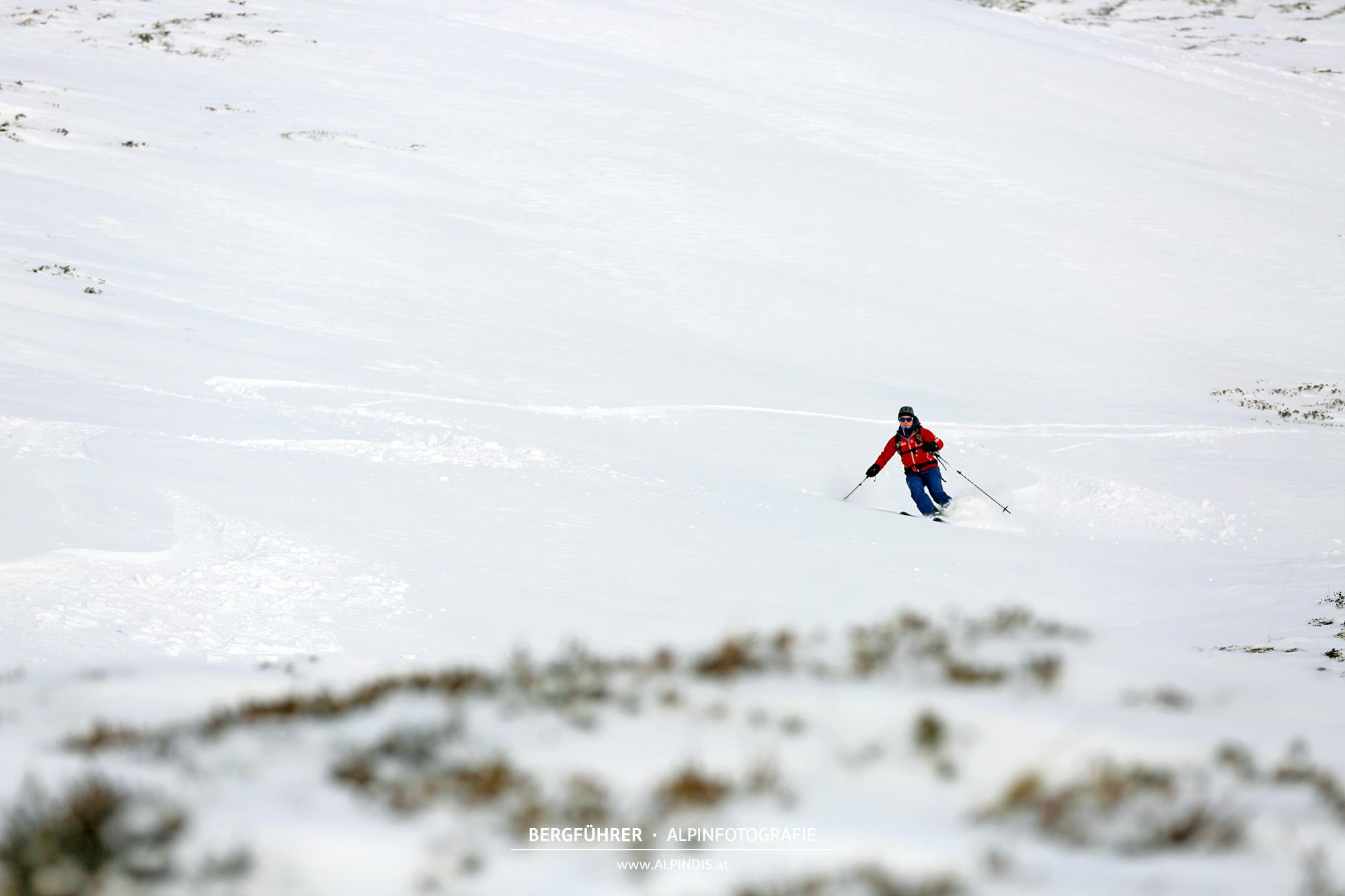 Die Grate sowie die Westseiten sind im Kammbereich abgeblasen, lediglich in den Rinnen und Mulden findet man ausreichend Schnee zum Fahren. Im Lee (Nord bis Südost) gute Schneelage - Pulver. Der letzte Neuschnee von vorgestern (ca. 5-10cm) wurde bis zur Waldgrenze hin verfrachtet und bindet gut mit der Schneedecke von letzter Woche. Problemstellen findet man vorwiegend im Altschnee (Nordsektor oberhalb von 2000m). Hier konnten wir gestern noch einige großflächige Setzungsgeräusche wahrnehmen.