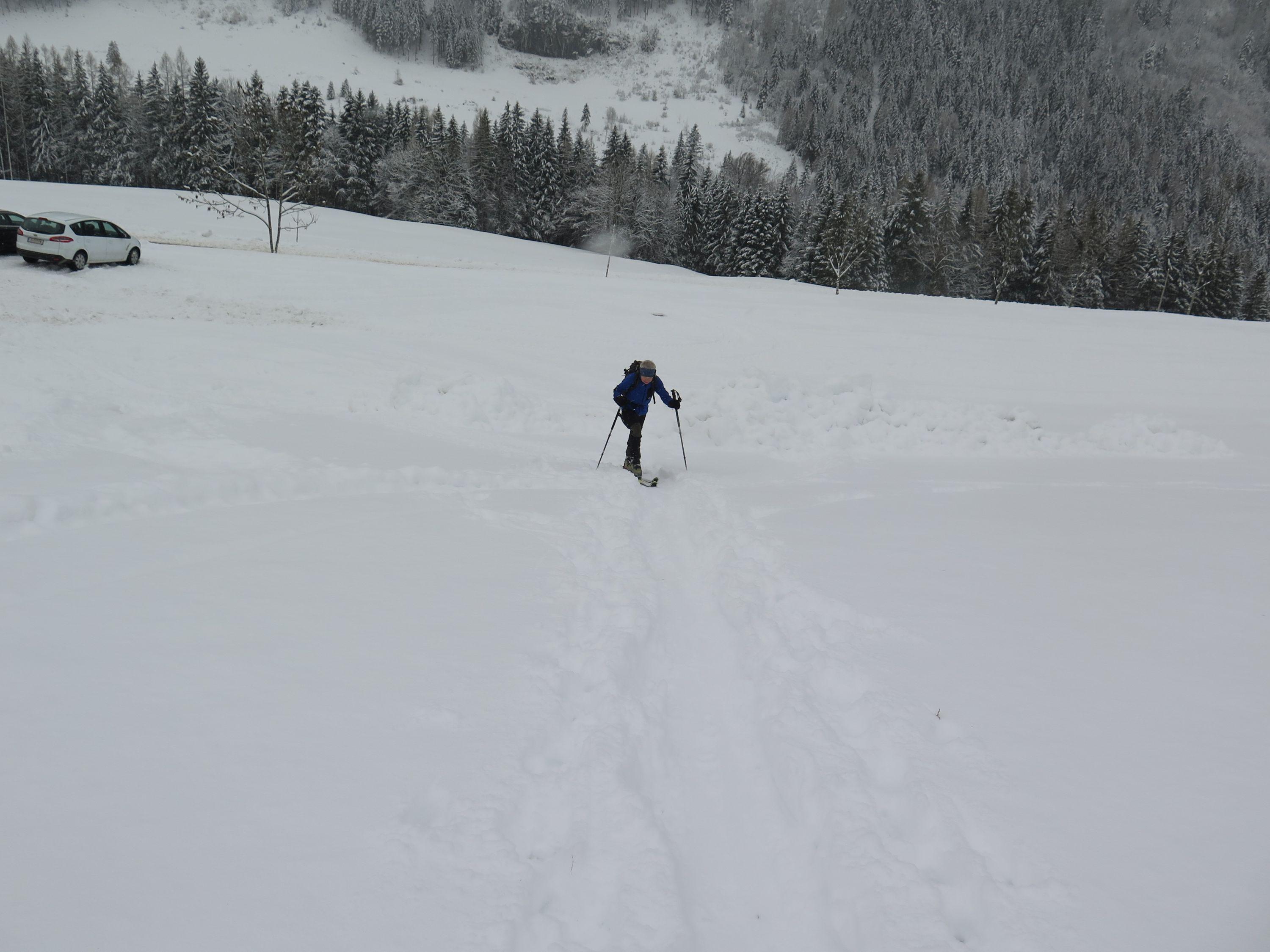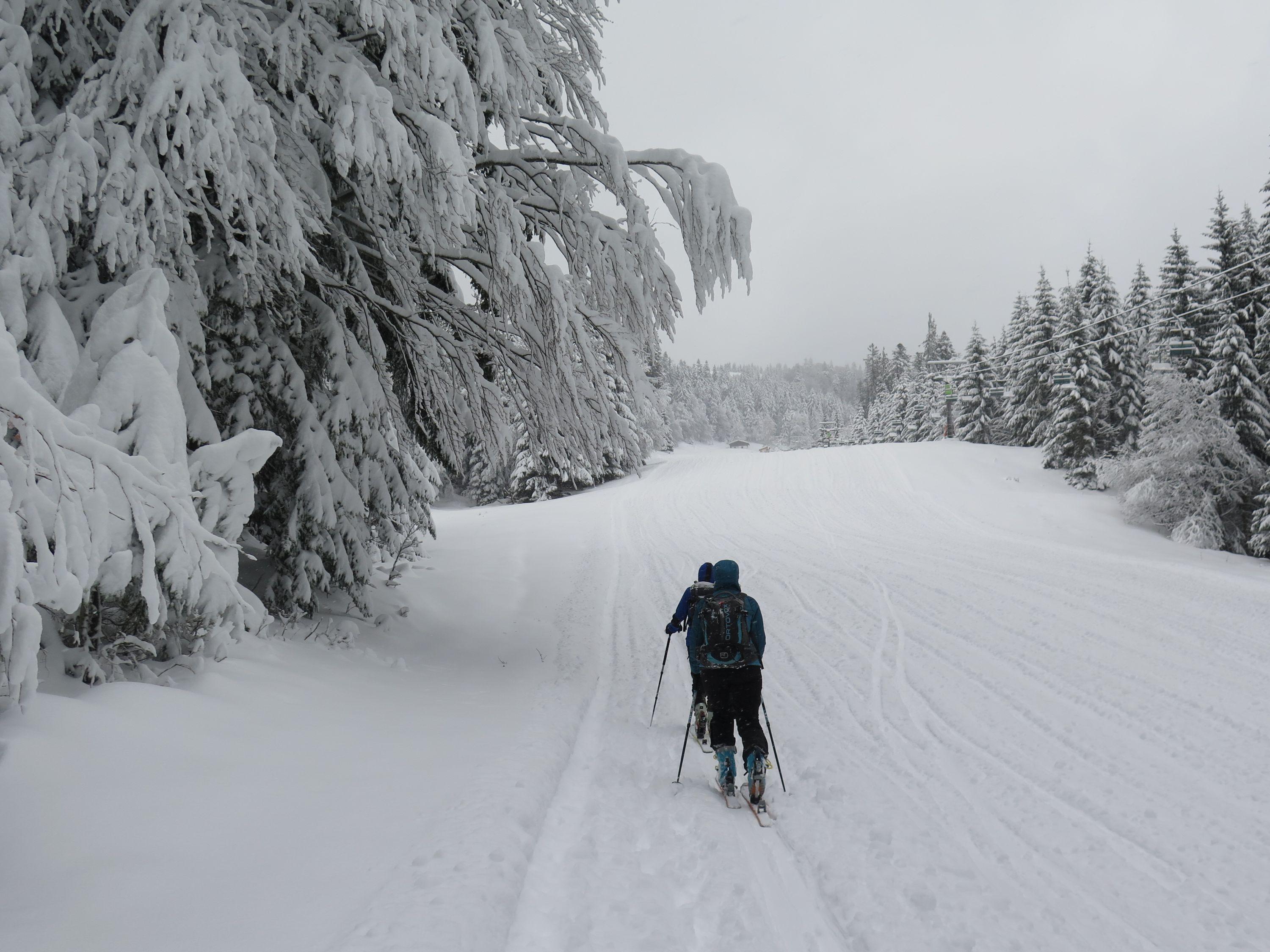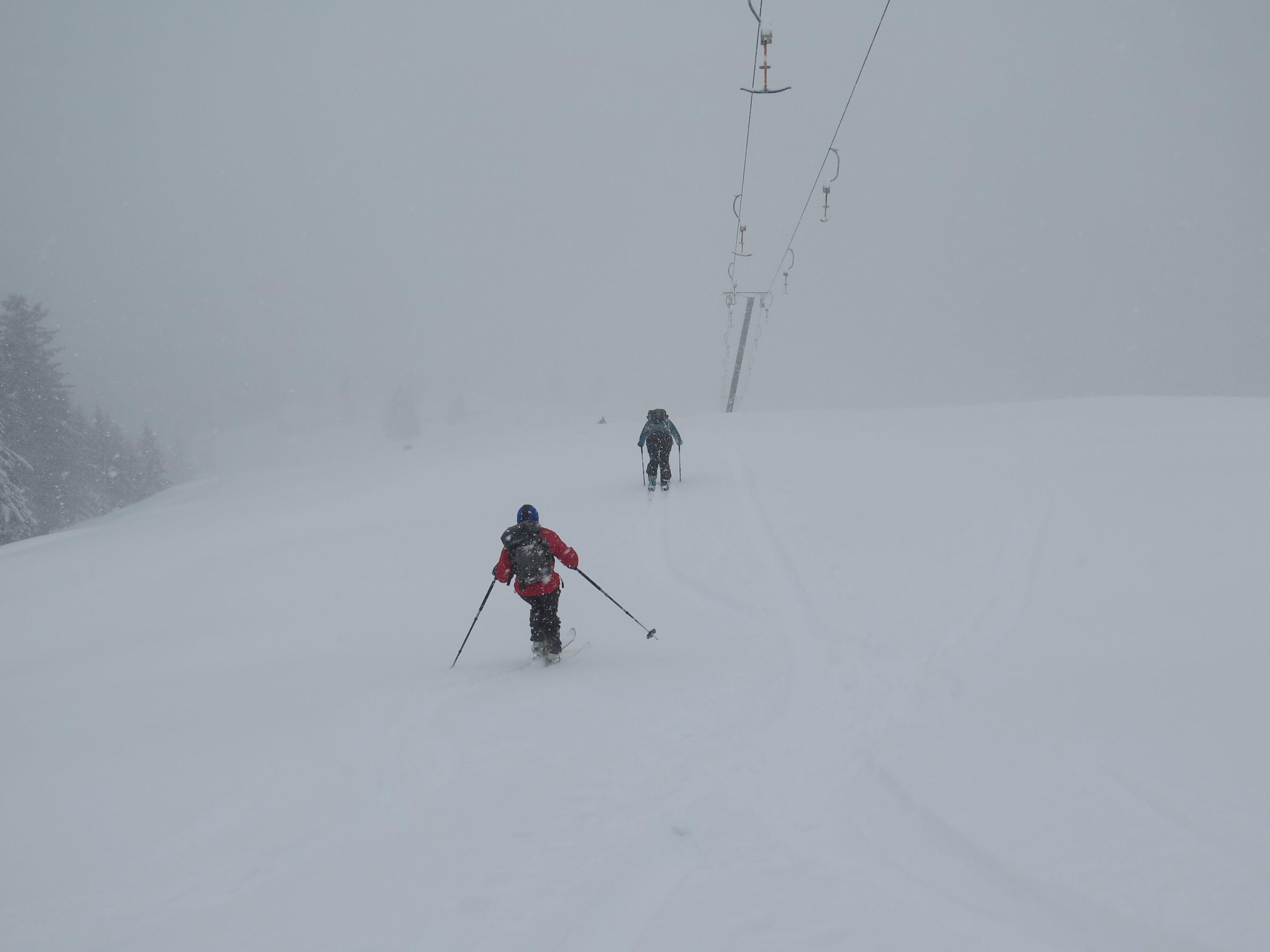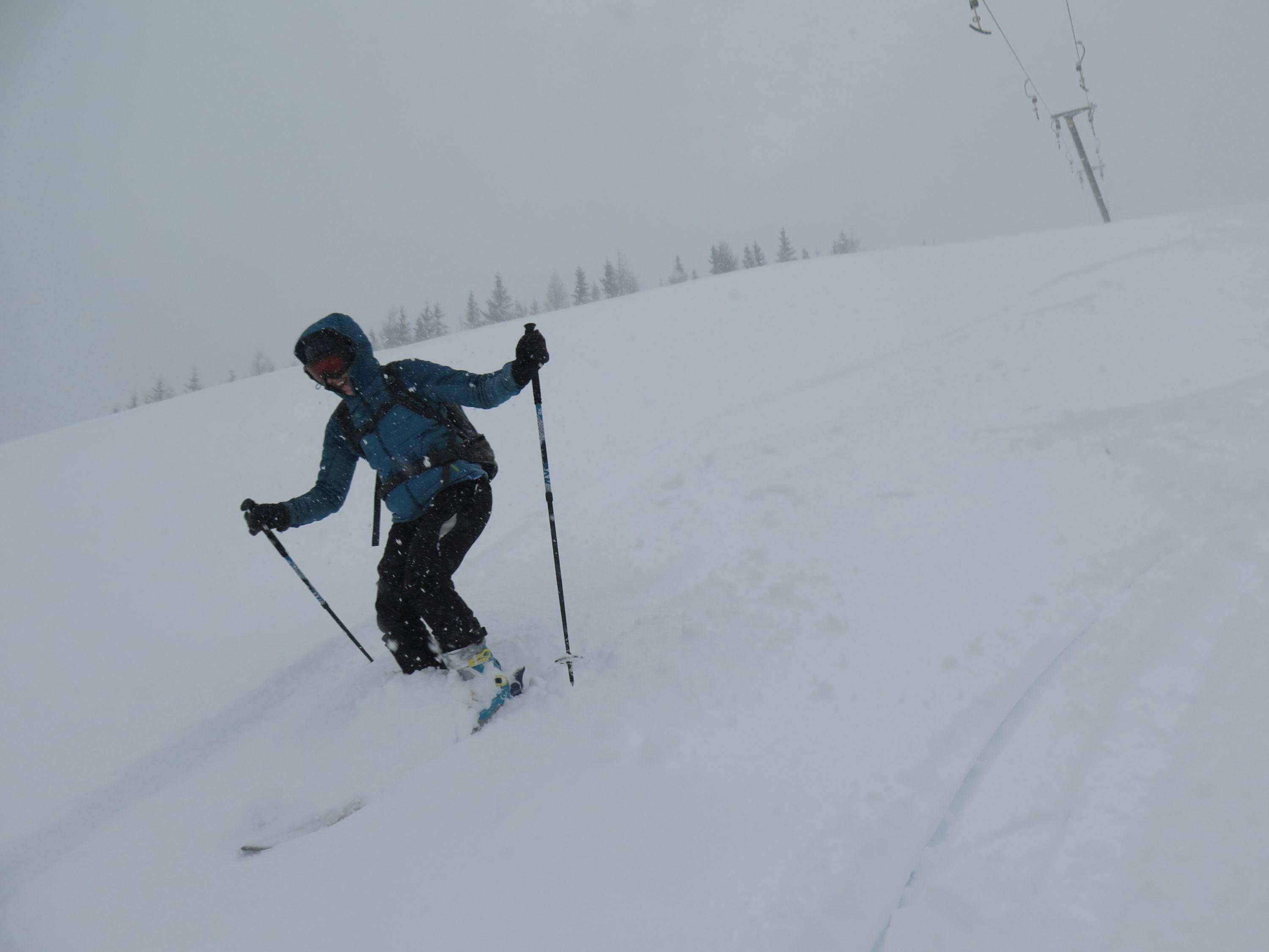 Endlich wieder Winter! Am Liftparkplatz ca 15cm Neuschnee bis zum Gipfel ansteigend ca 30cm. Wetter: lebhafter Wind, Nebel mit leichten Schneeschauern.