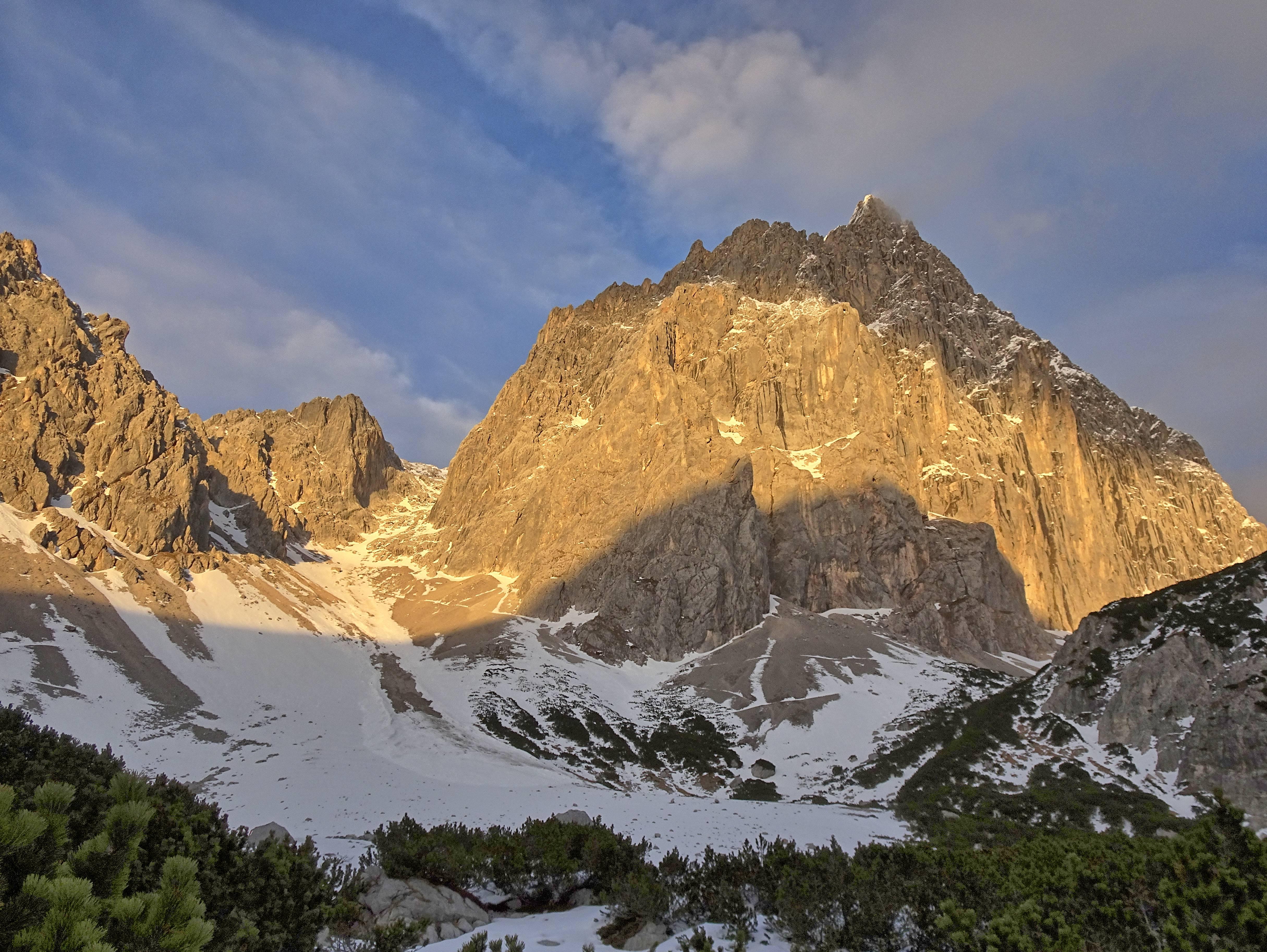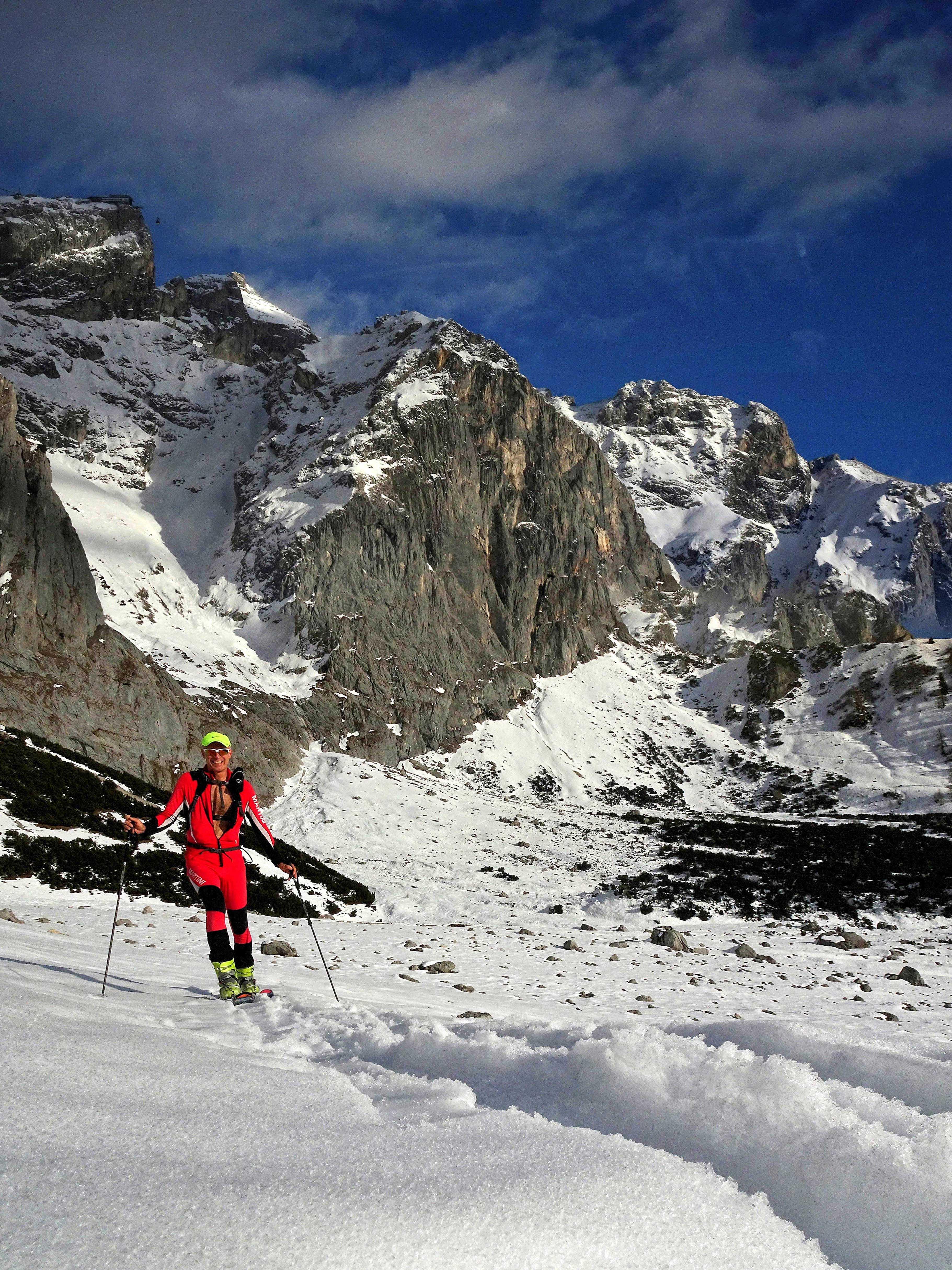 Kurze gemütliche Erkundungstour spätnachmittags beginnend ab Talstation Südwandbahn durchs Tor bis Bachlalm. Wenige Unterbrecher. Breite Schotterschi, Altfell.