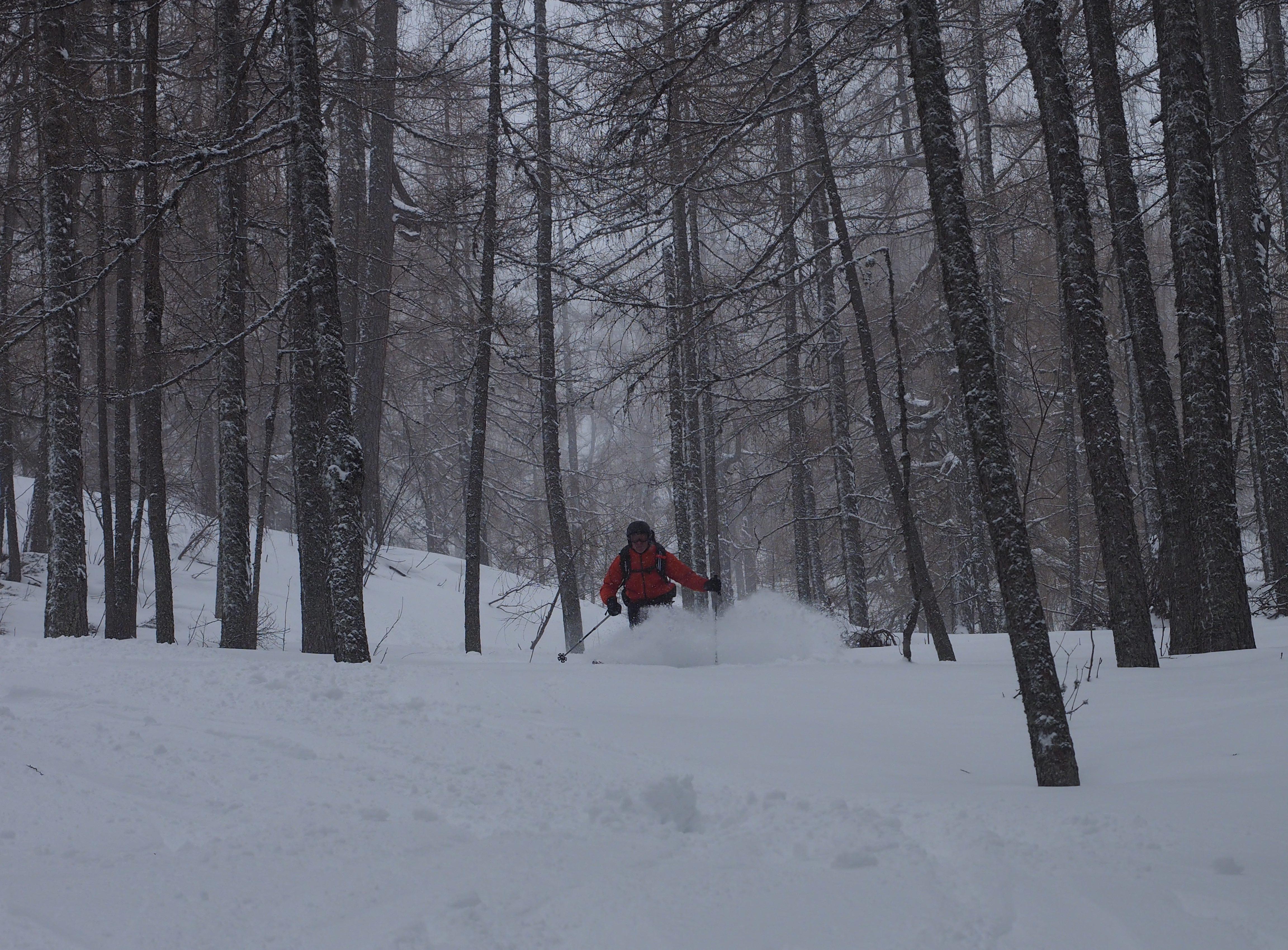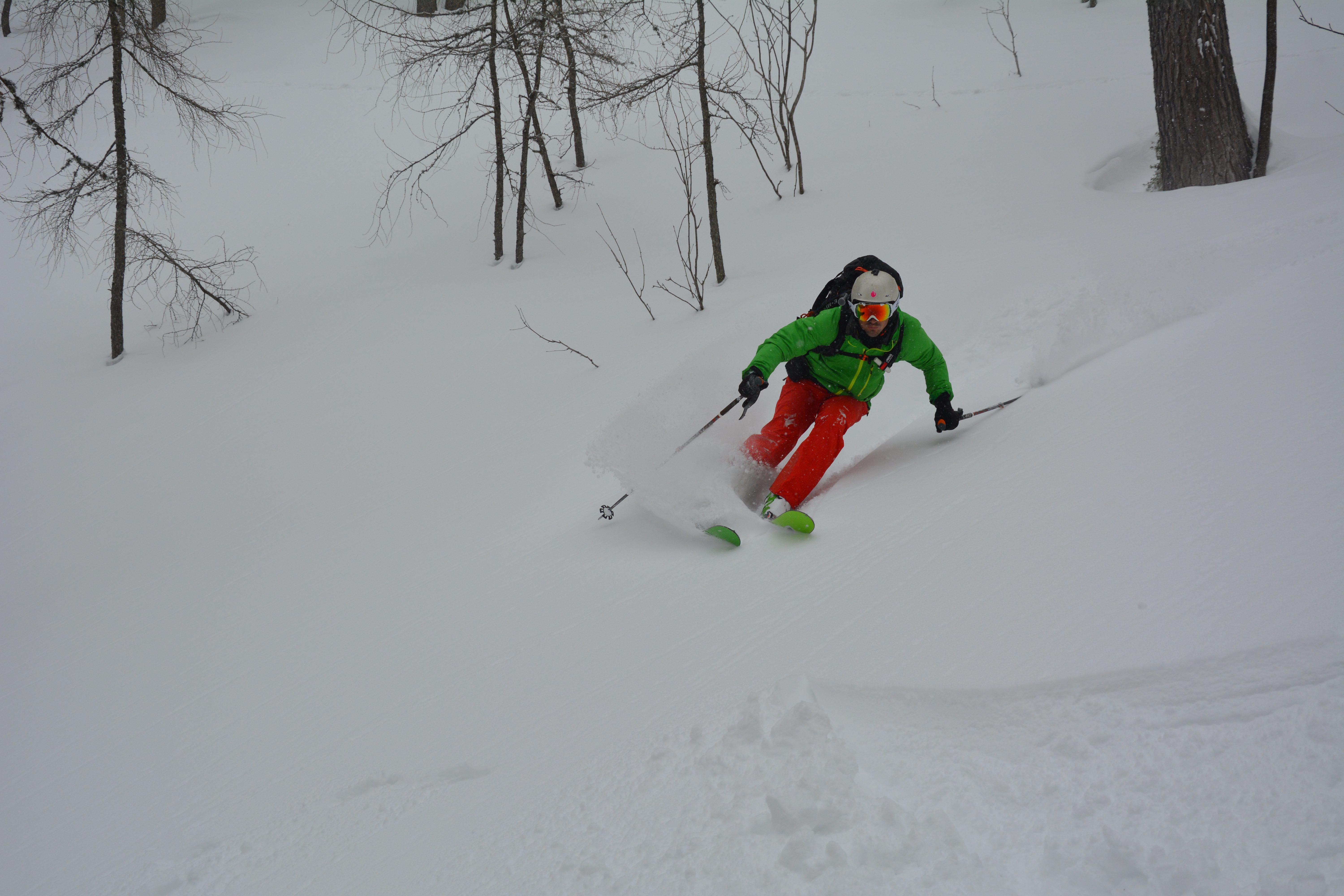 Schnee: gesetzter Pulver, kein Windeinfluss im Waldbereich, oberhalb im Kar stark ausgeblasen und hart, Rinne rauf zum Lagelsberg wär nicht vertretbar, schöner Abfahrtspaß bis ca. 1000 m, dann bereits pappig