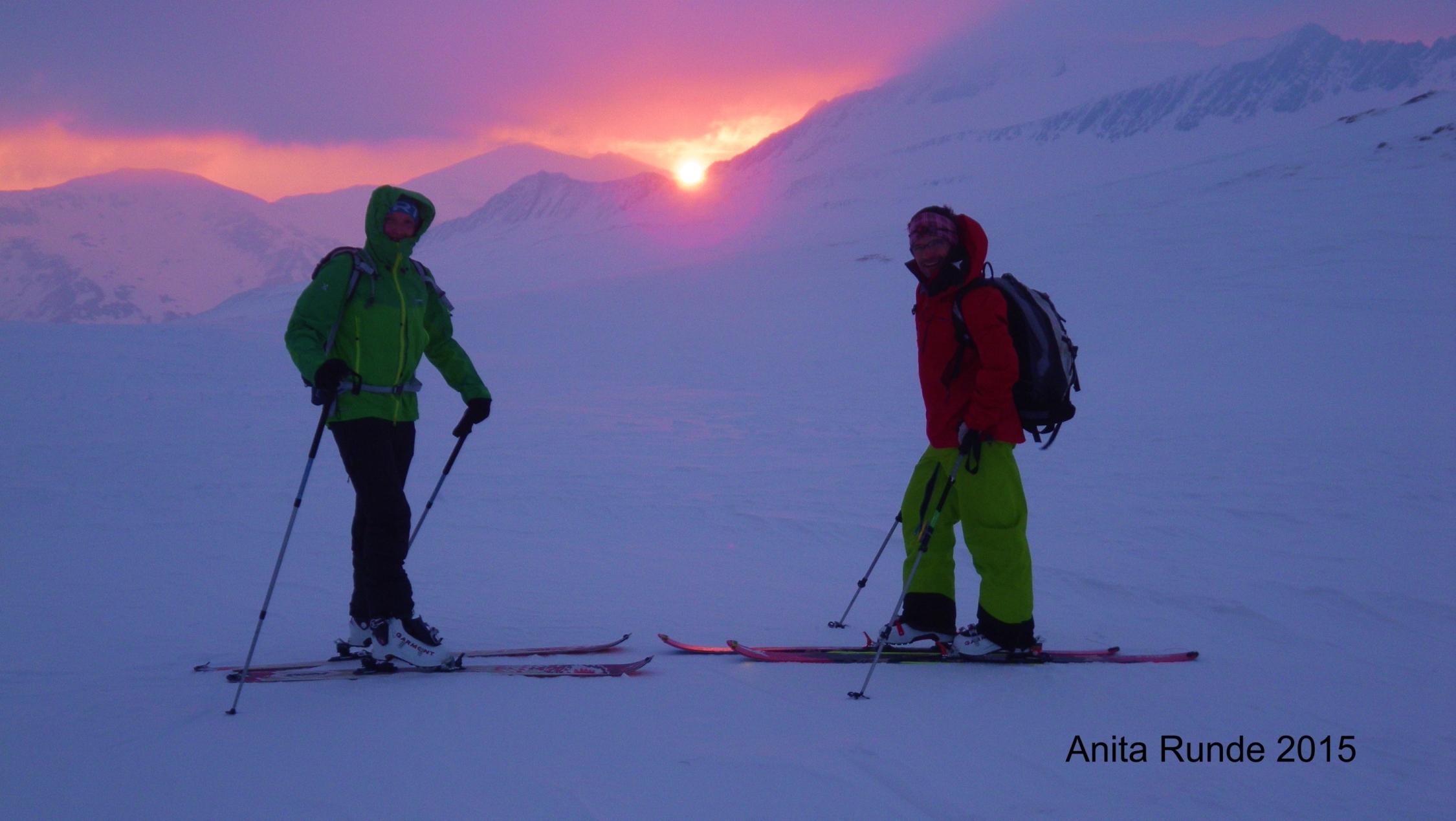 "Stockham-stockfinster" wars beim Weggehen....... perfektes Timing am Murtörl: gerade als wir unsere Köpfe über die Scharte strecken, streckt auch die Sonne ihre knallrote Scheibe über den Horizont .... partiell verschwindet sie dann hinterm Mond, als wir teils auf Harsch, teils im Firn vom Weinschnabel abfahren .... nur mit 20% strahlt die Sonne uns bei der Jause (Jägersteighütte) entgegen, daher eher frisch ..... dafür unterstützt sie die Schweißproduktion mit 100% als wir durchs Kleinelendtal (wie passend der Name :)) aufsteigen .... wir versuchen viel Schwung auf den letzten Hügel mitzunehmen, laufen aber nicht Gefahr aufgrund von zu hohem Aufstiegstempo über den Keeskogel hinaus zu schießen :) .... weich zeichnend ist das Nachmittagslicht dann am Keeskogel ... und kühlschrankartig die Temperatur bei der nordseitigen Abfahrt ... "interessant" die Abfahrtsverhältnisse vom Kees (unguter Windharsch im oberen Bereich; feinster Bruchharsch weiter unten) .... wohlschmeckend der traditionelle Vogelbeer im Aschaustüberl.