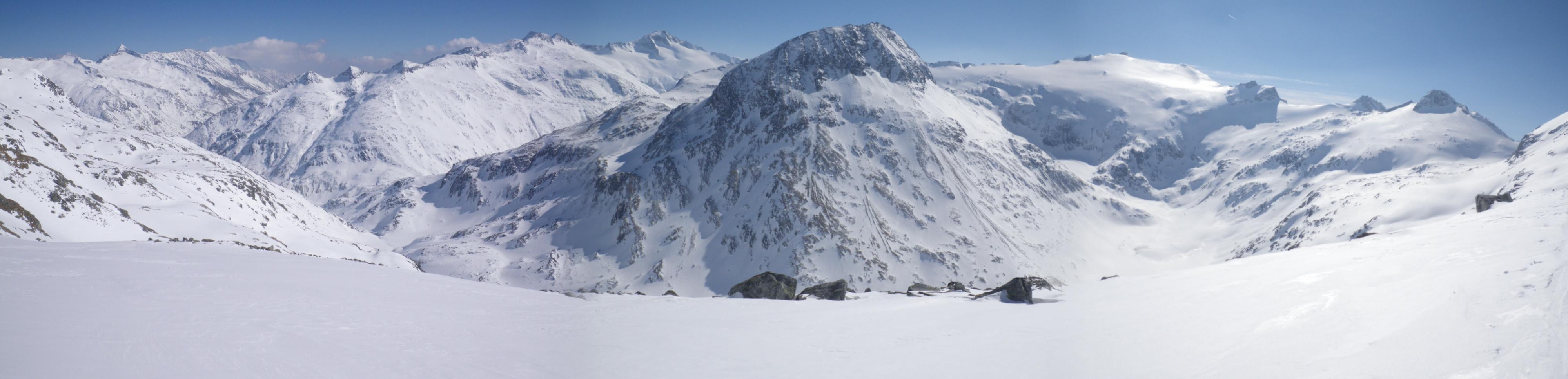 Landschaftlich kamen wir vom Murtörl bis zum Keeskogel aus dem Staunen nicht heraus! Schön wäre es auch zum Murtörl hinauf, aber die Hirnbirn leuchtet ja nur ein paar Meter. Schön wäre es auch vom Keeskogel herunter ... aber da galt unsere ganze Konzentration den Skispitzen, die ständig versuchten wilde Haken zu schlagen.