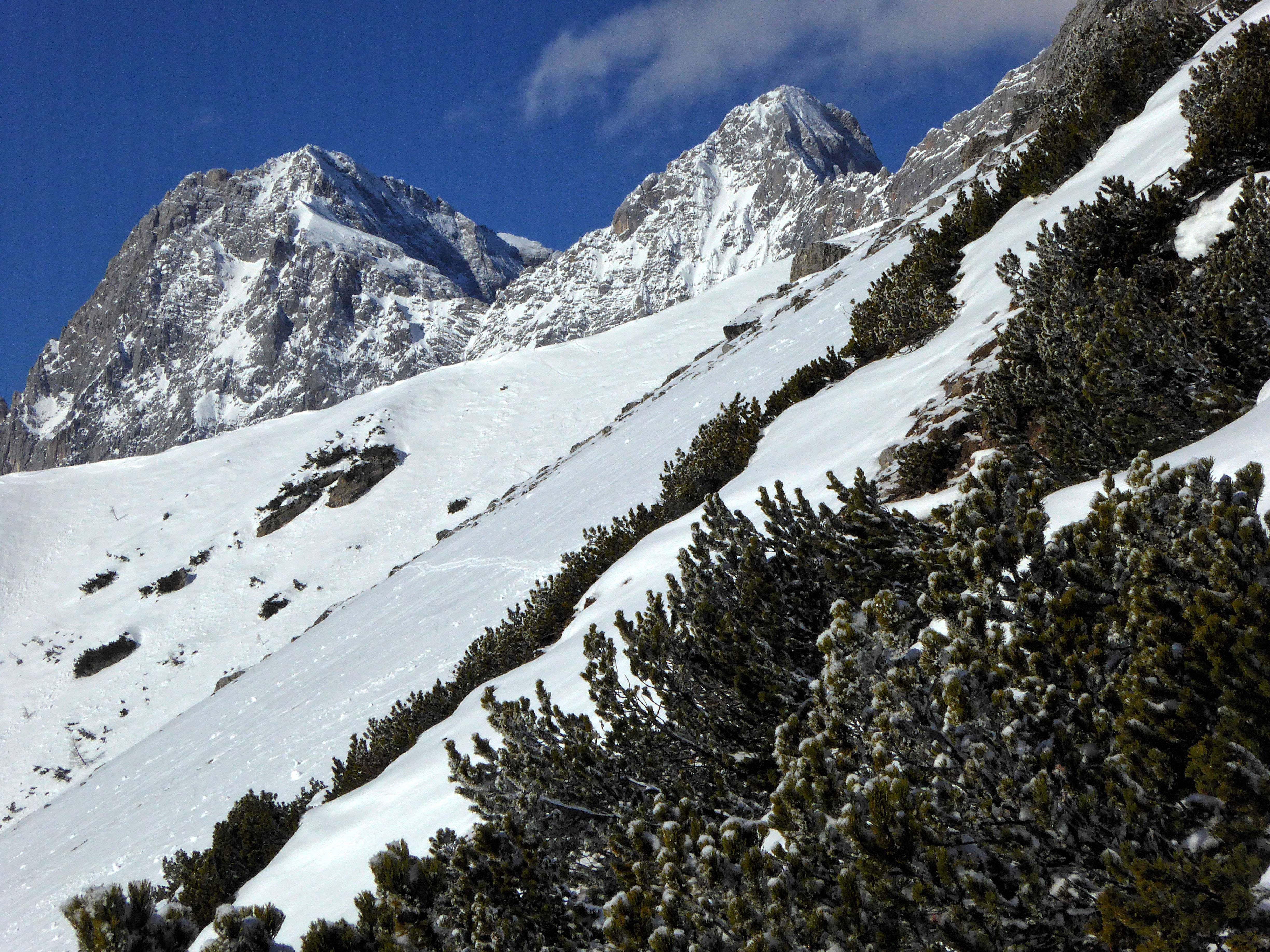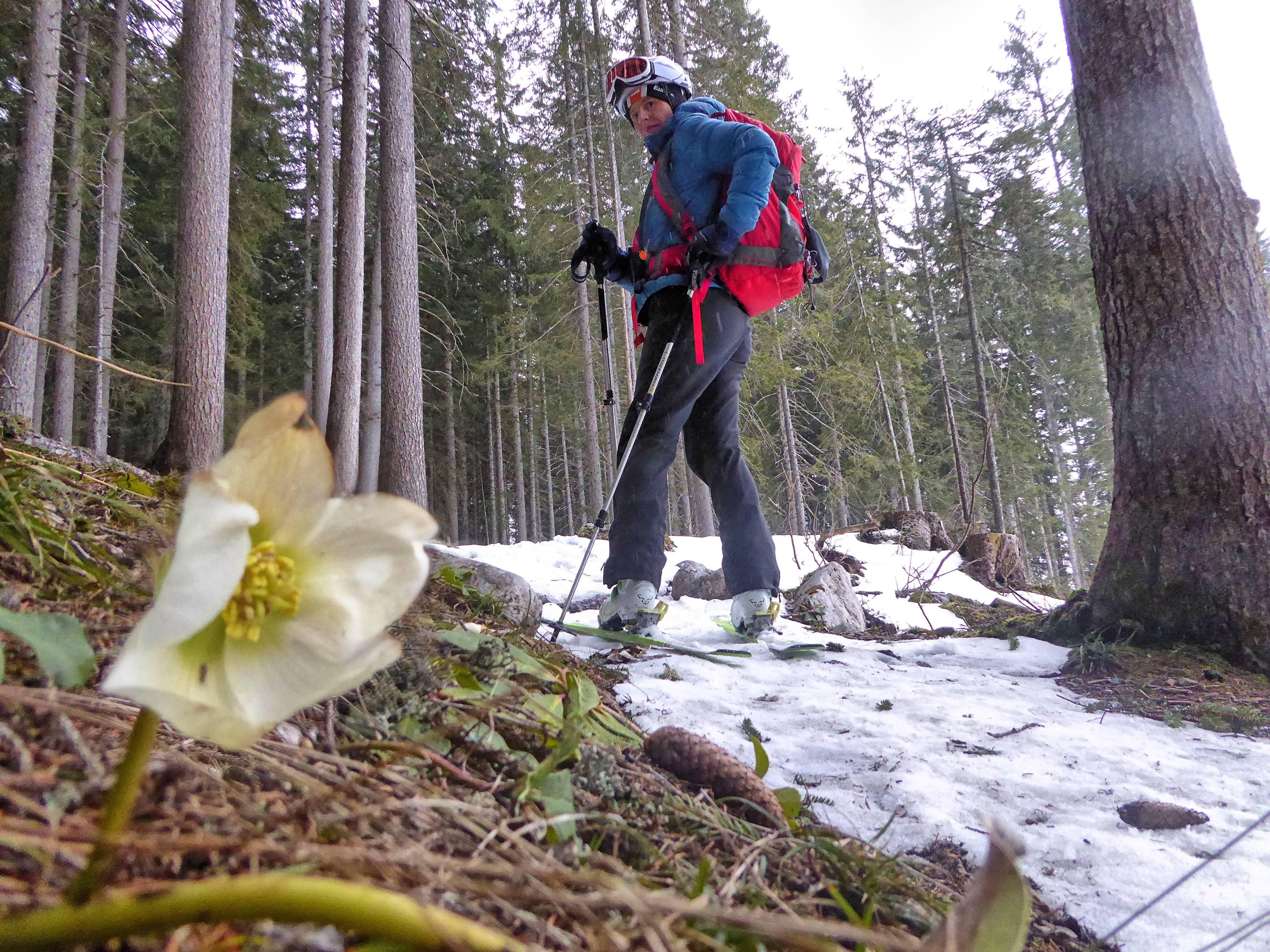 Sichere Frühjahrsverhältnisse bei pistenartigen harten Bedingungen. Ledeglich die alten Spuren störten bei der Abfahrt, aber da konnten wir auf unverspurtes Gelände ausweichen. Im Wald weich.