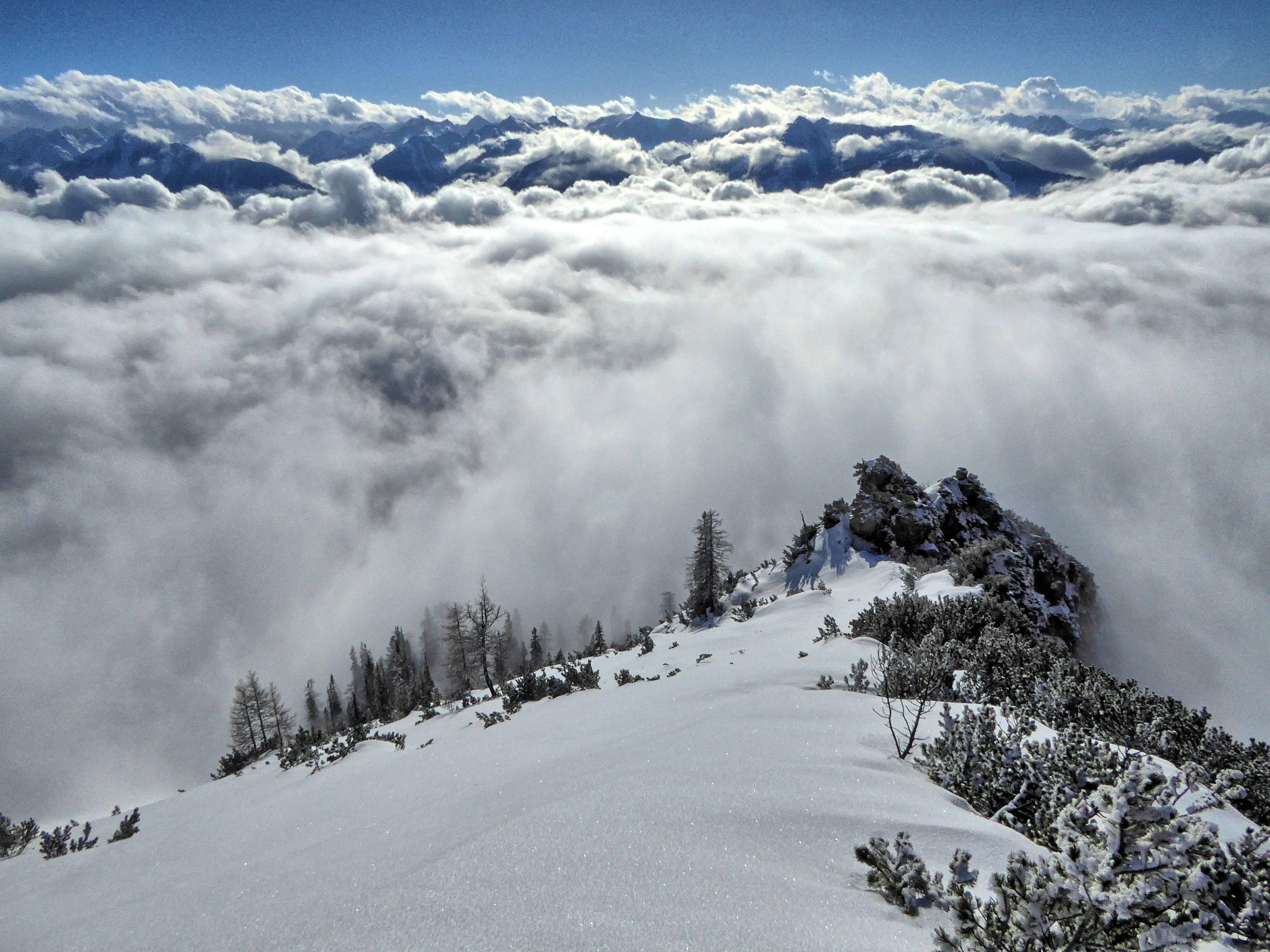 Waren heute die einzigen weit und breit. Das Wetter hat dann auch bald wie prognostiziert umgeschlagen: Nebel, Schneefall.