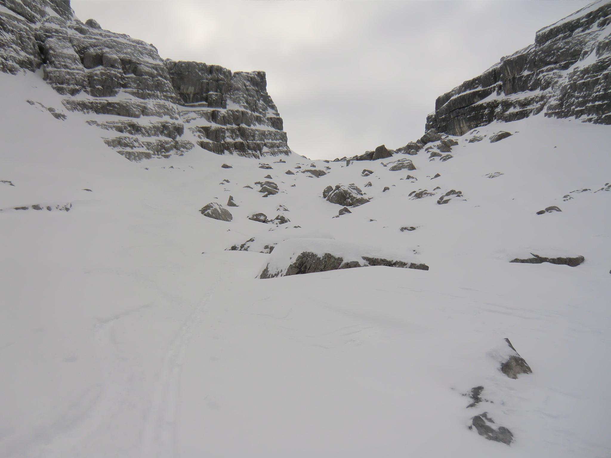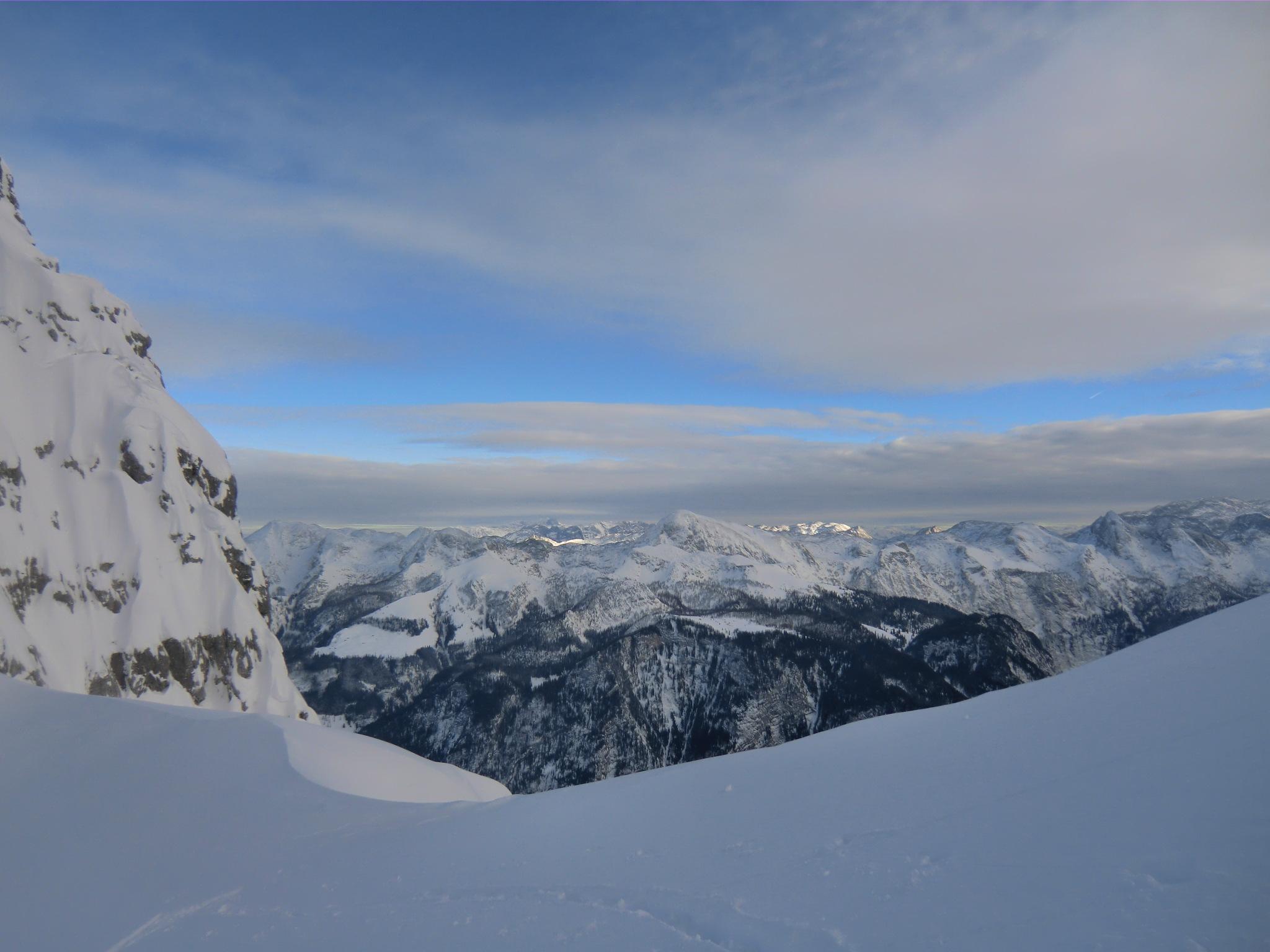 Danach mit Ausnahme dem Pitschenberg ab dem Postalmgebiet sehr einsame Tour, jedoch bis auf den Gipfelgrat zum Egelseehörndl nicht unverspurt. Dort ostseitig kammnah deutlich sichtbarer Triebschnee teilweise auf Eisplatten. Manche Einfahrtspuren waren schon sehr mutig.