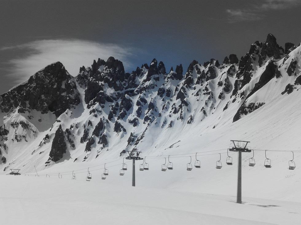 Am Morgen vorerst Aufstieg mit dem Ziel Marmolada Punta Rocca. Wir machen aber bald kehrt, denn es ist noch viel stürmischer als gestern. Nachdem ich den Abbruch erstmal verdauen mußte und ich jegliche Lust auf eine Tour verloren habe fahren wir nach Arabba. Dort auf 1.600m sind die Pisten noch in einem wirklich hervorragenden Zustand und daher packen wir die Ausrüstung wieder aus.