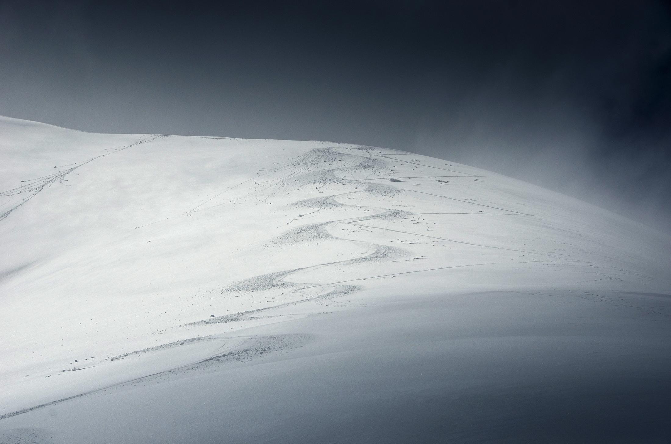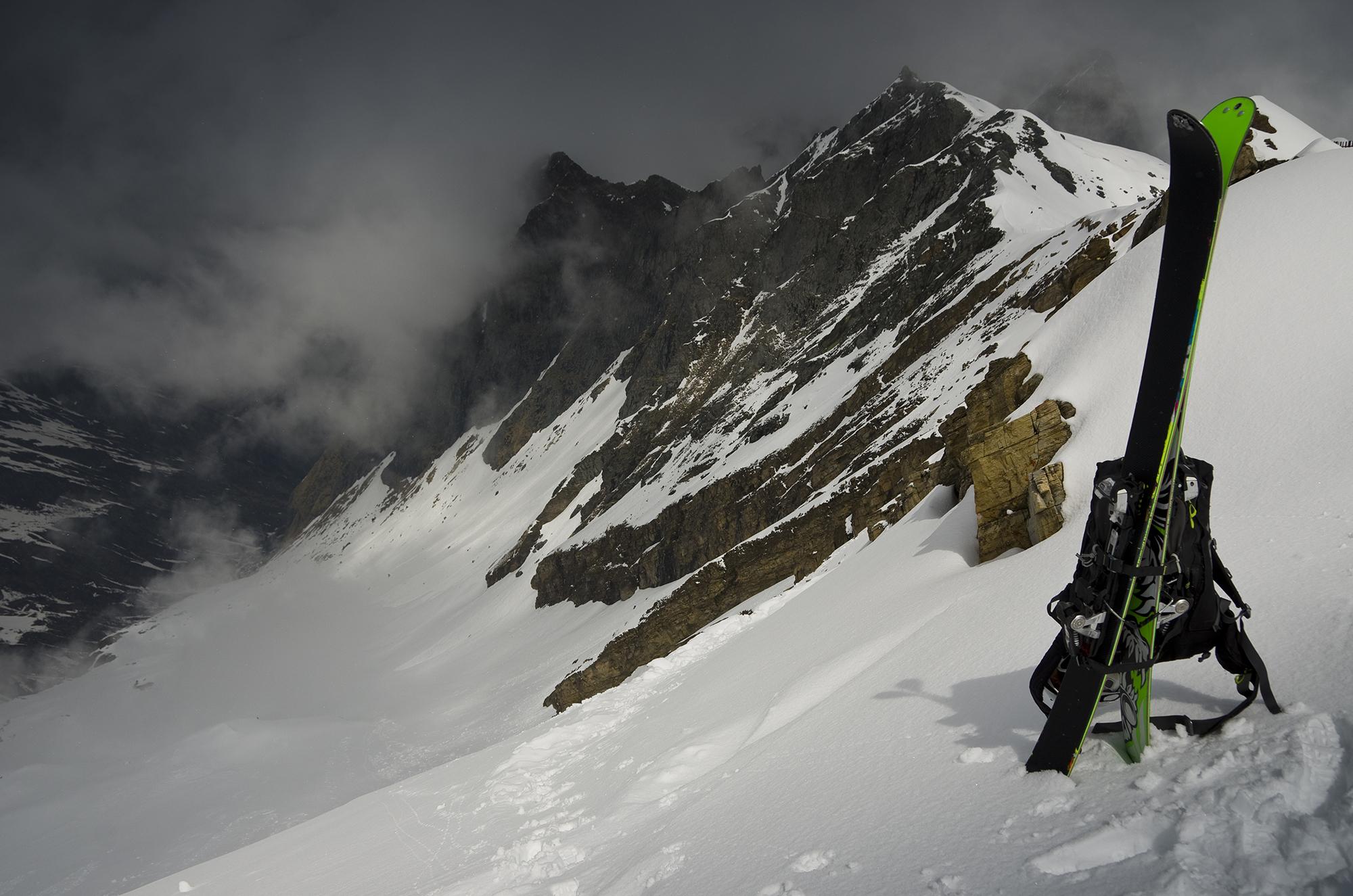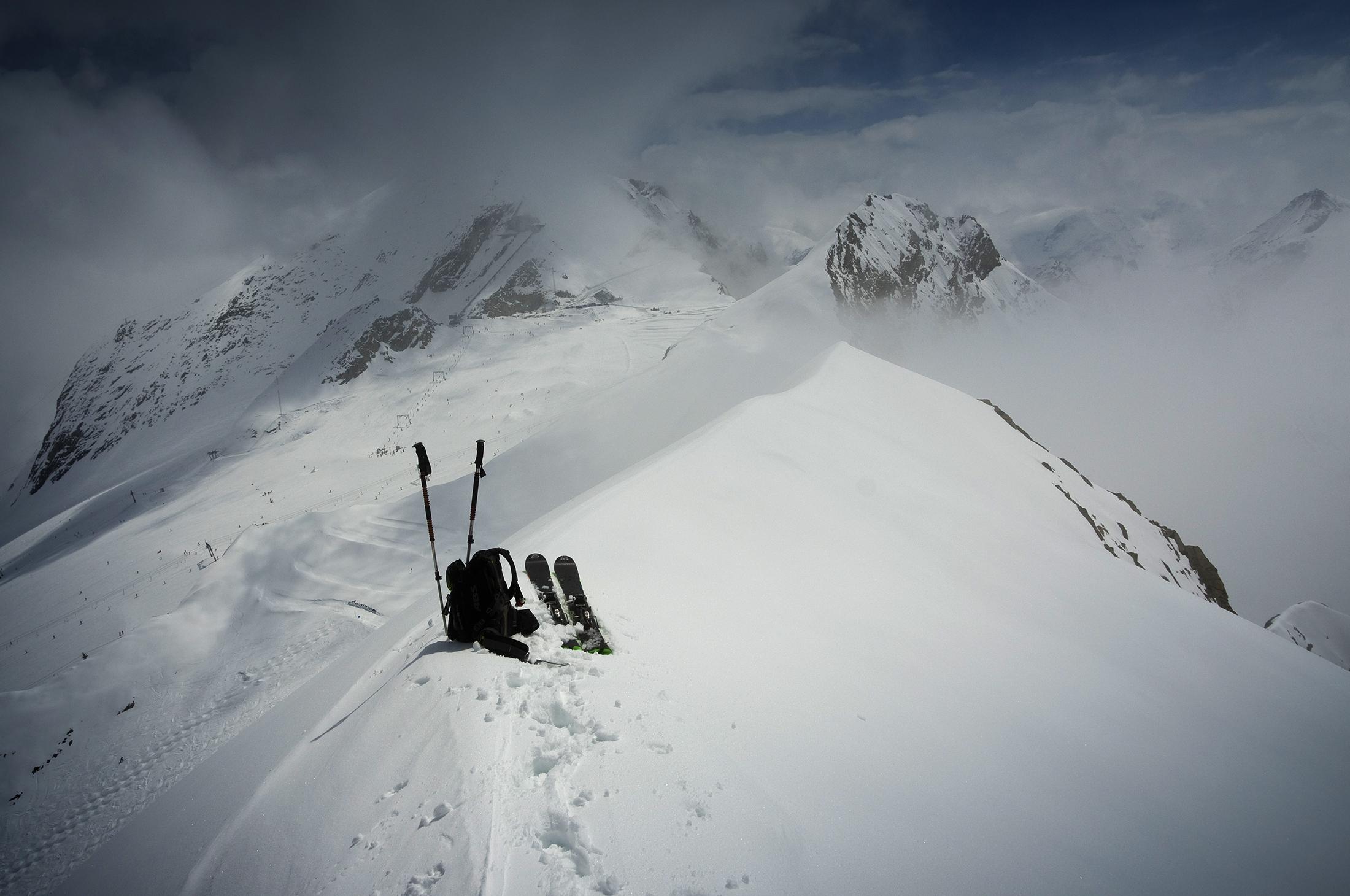 Nord-Abfahrt von der Schulter hinab ins Mühlbachtal. Dann (ziemlich mühsam, Ski am Rucksack) Wiederanstieg den Steilhang hinauf. Von der Schulter bis zum Gipfel konnte ich nochmal auffellen. Von dort dann Abfahrt zurück ins Pistengebiet Kitzsteinhorn. Es hat viel Schnee in die Steilhänge geklebt, sogar das Kitzsteinhorn wurde heute direkt vom Gipfelkreuz aus abgefahren. Der Schnee ist bis zum Schmiedinger-Gipfel feucht und die obersten Zentimeter rutschen auf einer Altschneeschicht weg.