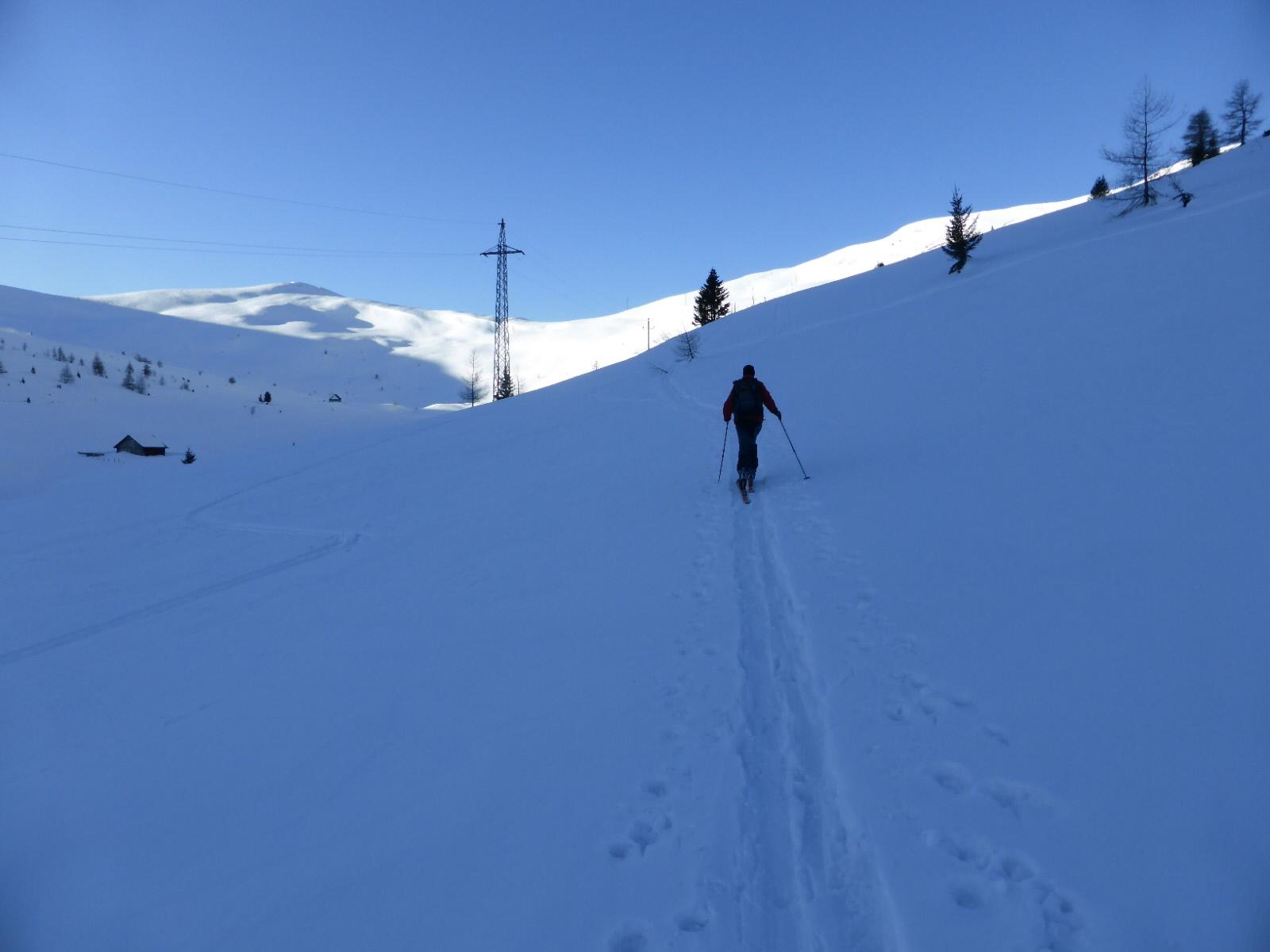 abfahrt wie anstieg in den kendelbrucker graben, dann talauswärts auf dem almweg(von schidoo gut befestigt) bis zur brücke über den mühlbach, wo eine almstrasse links auf die ochsenkaralm abzweigt. diese bis auf die alm folgend und anschliessend westwärts richtung bärennock,wobei man sich nahe am von diesem herabziehenden grat hält. kommt man auf den ersten flacheren gratteil vor dem bärennockgipfel ist die abfahrt zurück über die klölingalm auf die karneralm möglich.