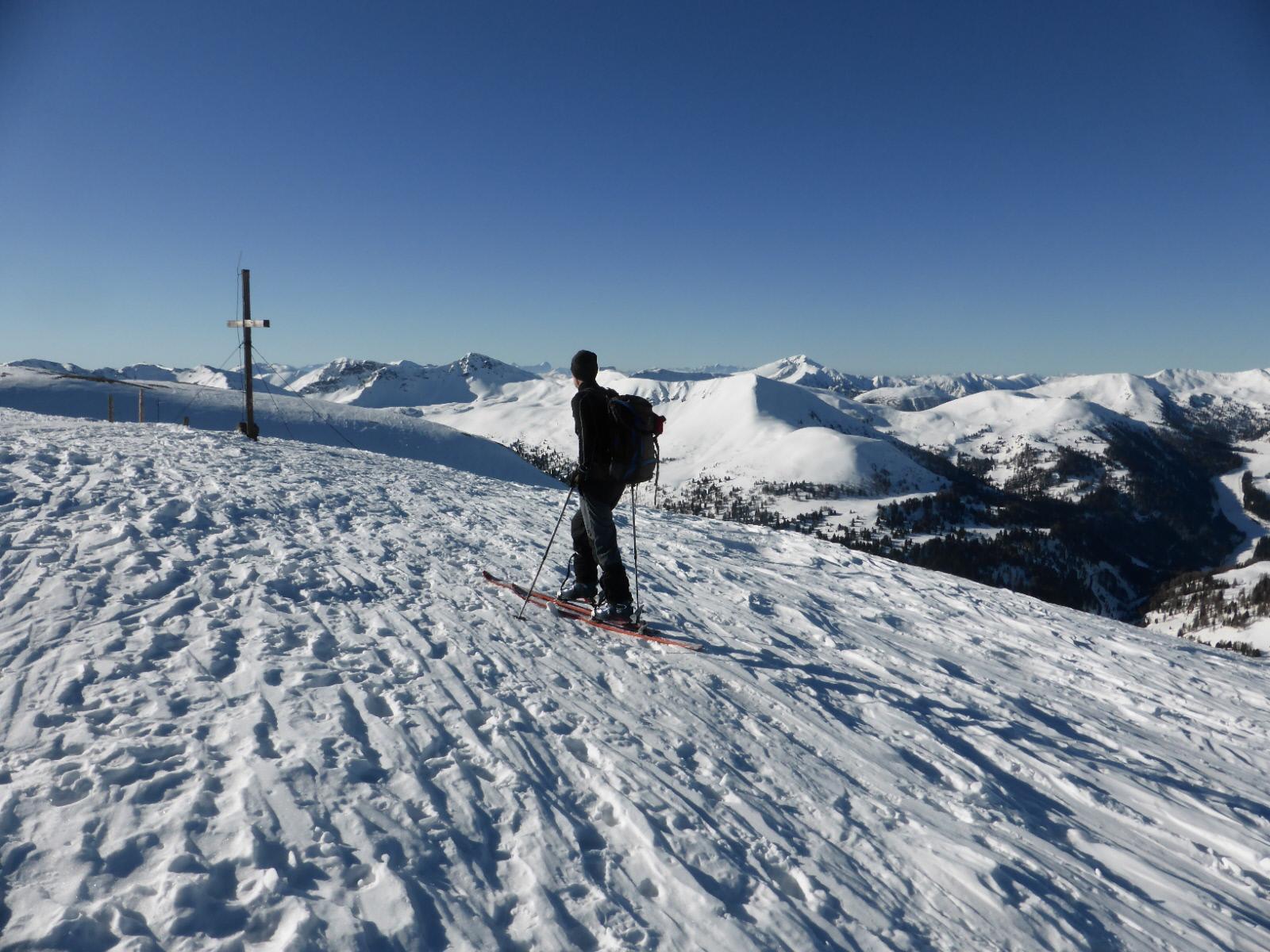 von der karneralm über klölingscharte zum schilchernock und ochsenriegel; abfahrt durch das kühkar zur premhütte.kann bei ungünstiger wahl im unteren teil-wald- mühsam sein. möglichst in abfahrtsrichtung links halten. aufstieg über steinerhütte und jagdhaus durch einen schönen schlag in den steinbachsattel und über den südhang des kilnprein auf den gipfel.