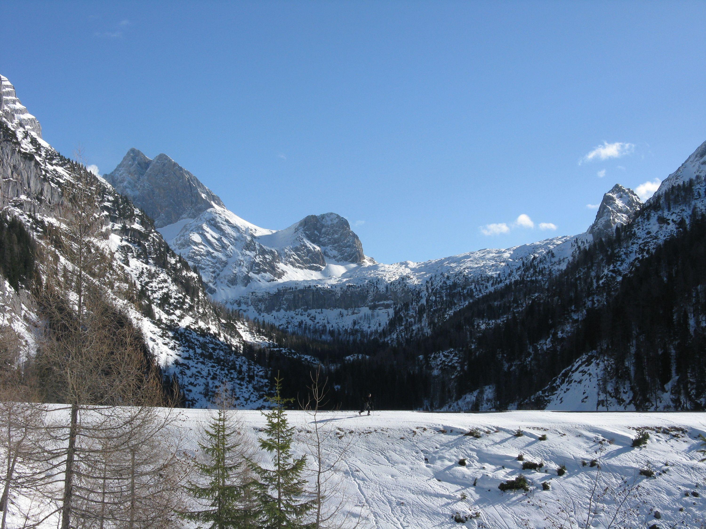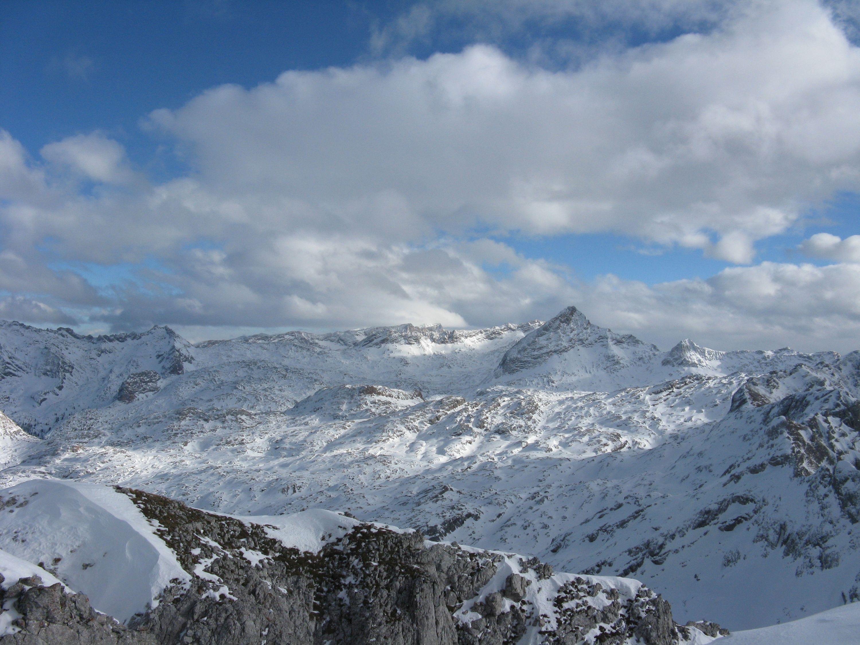 Steinernes Meer. Hirschbichlstraße bei derAuffahrt steilenweise noch eisig,durch den Föhn am Parkplatz schon milde Temperatur,Schnee auf der Straße bis zum Dießbachstausee schon recht feucht,ab dem Ostufer bis zur Hochfläche nur mehr leicht angefeuchtet,auf der Hochfläche Windgepreßt,Föhn macht sich erst im Gipfelbereich bemerkbar
