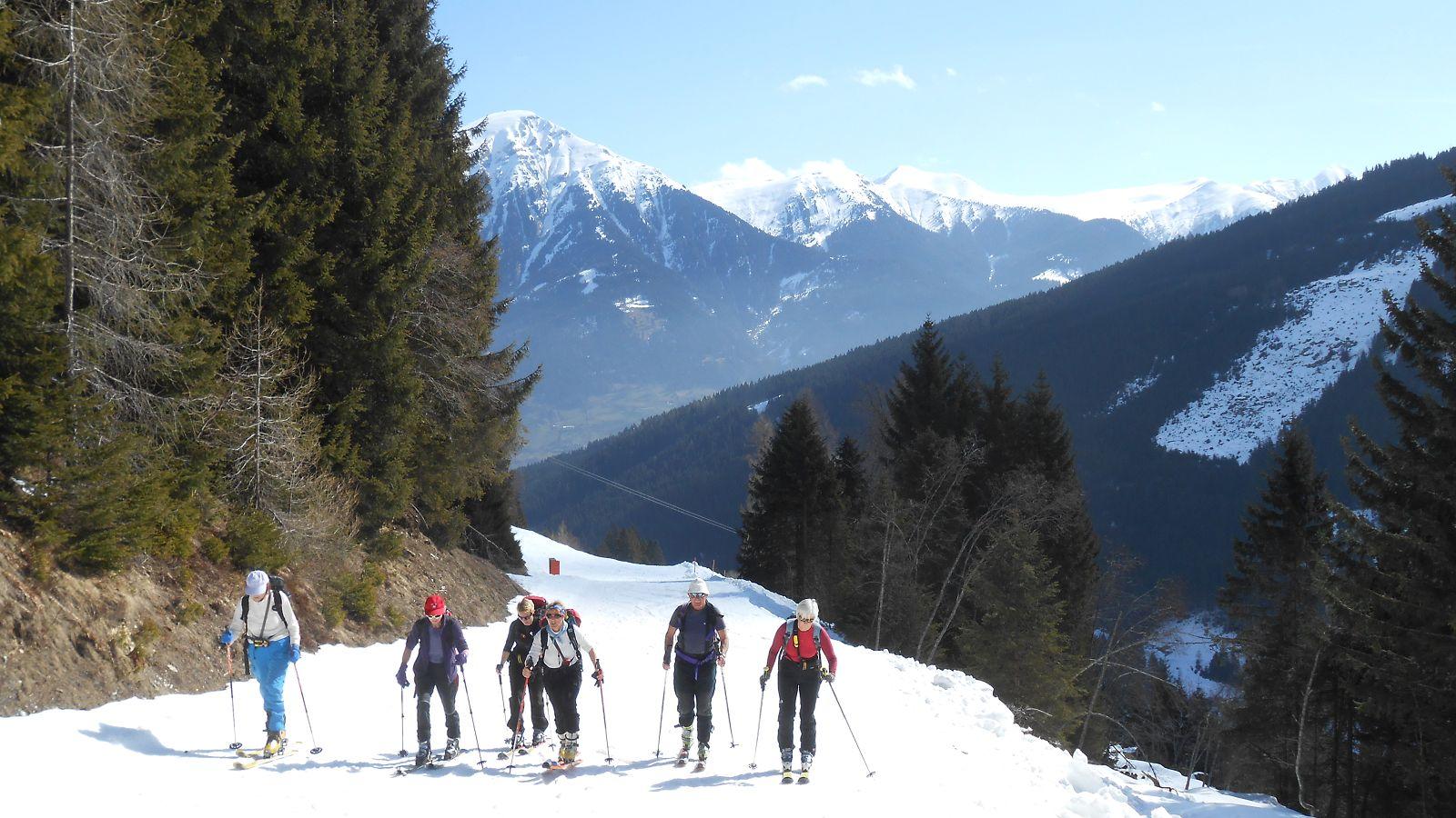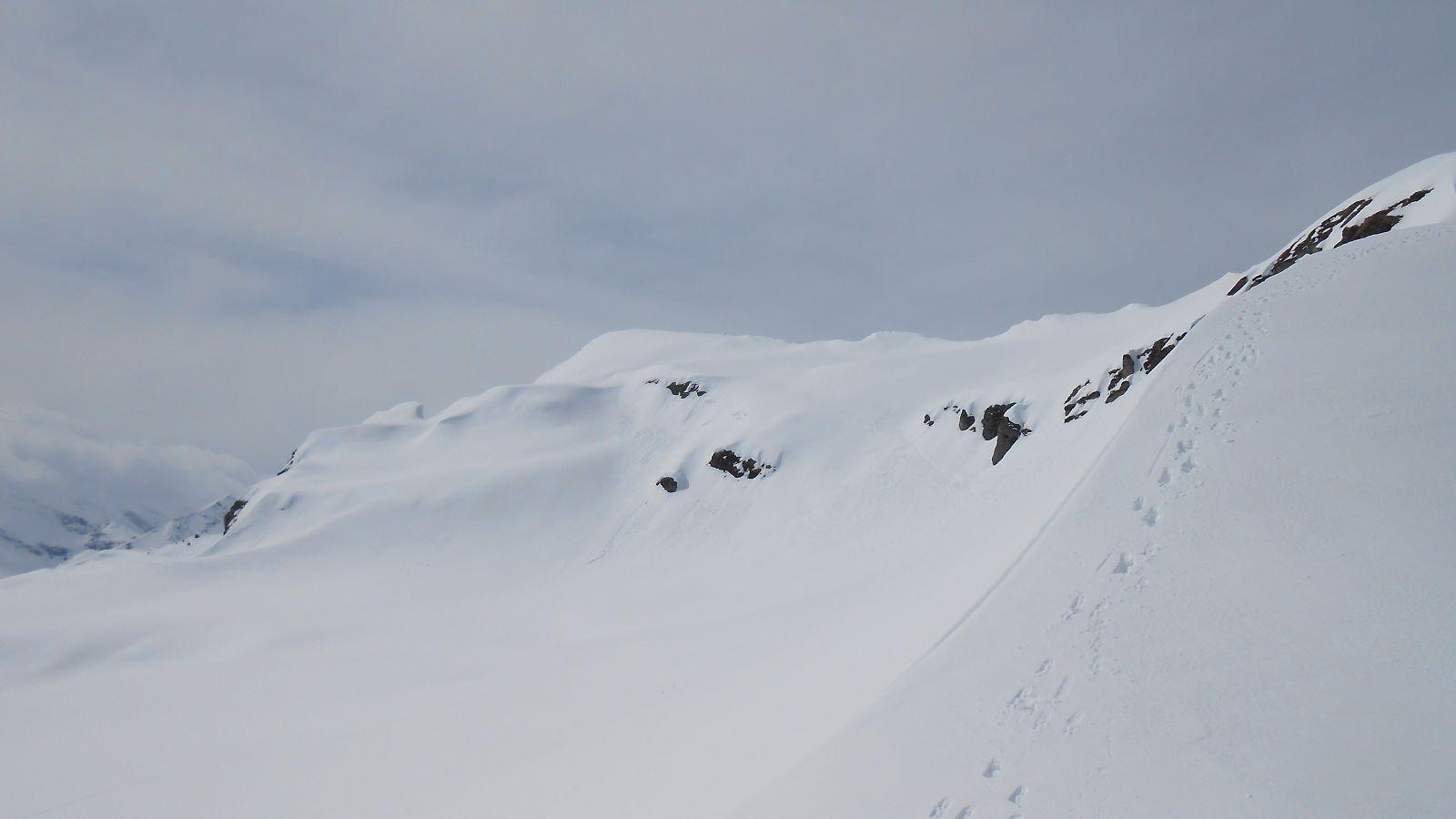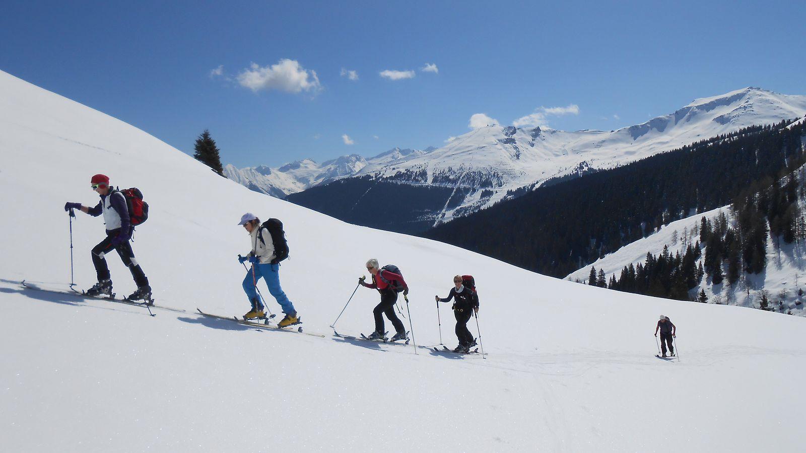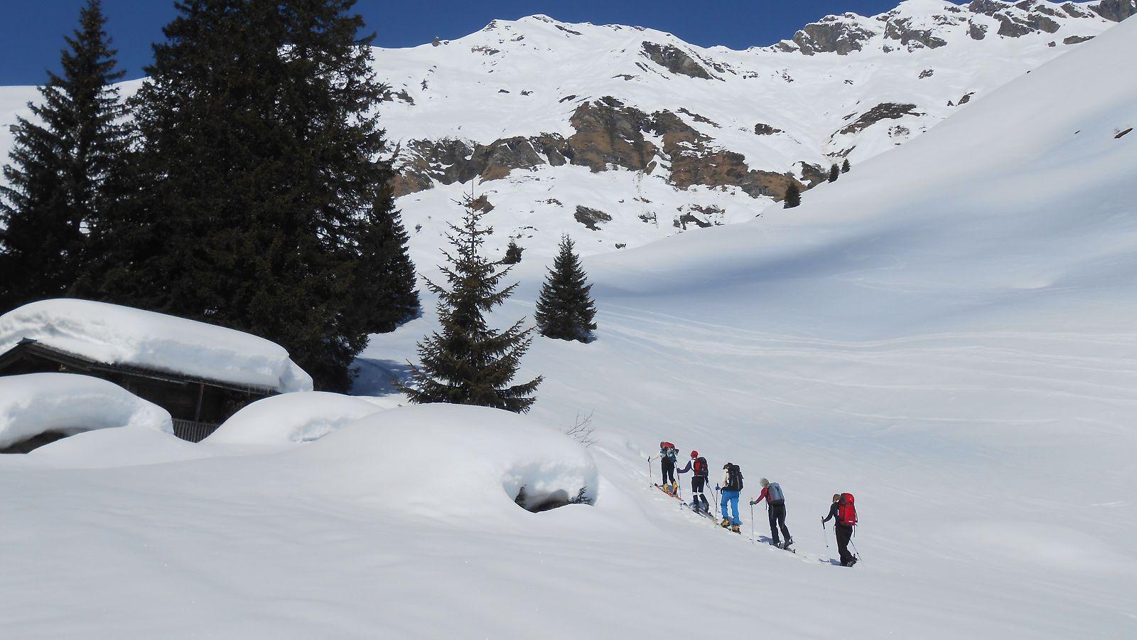 Anstieg vom Skizentrum Angertal zuerst 40 Minuten auf der Piste (Liftbetrieb Stubnerkogel - Schlossalm eingestellt!), dann flach ins Lafenbachtal. Erst nach 4 km rechts aufwärts die Südhänge Richtung Türchlwand. Beim Anstieg bester Firn, wir waren aber 2 Stunden zu spät dran. Abfahrt erst um 13.20 Uhr, mehr Sulz wie Firn, aber --noch-- ungefährlich. Zuerst beinahe wolkenlos, bei der Abfahrt jedoch recht diffuses Licht. Tour der Wochentagsgruppe des ÖAV Salzburg, Ziel stellte Zenzi zum Glück um, Nordhänge und eine Tour weiter im Westen (von dort kamen die Wolken) wären sicher keine gute Wahl gewesen. Siehe auch >>hier<<