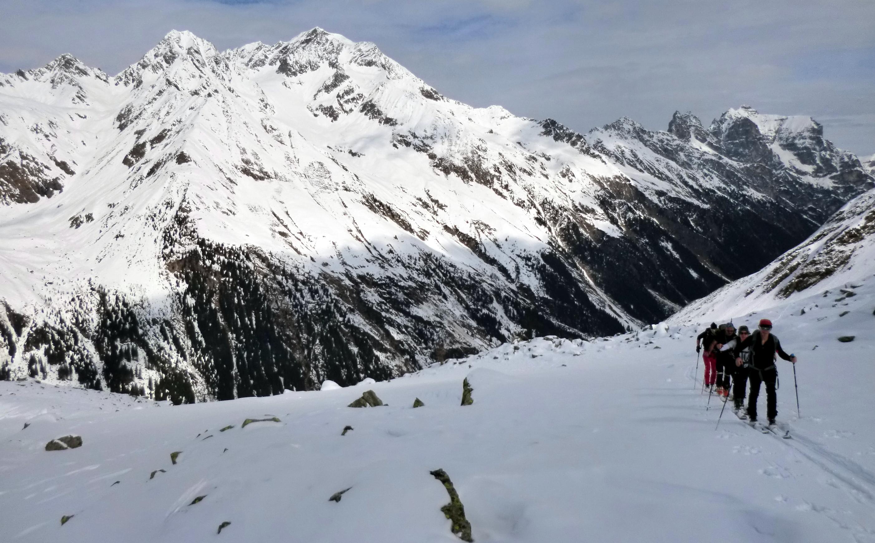 Alljährliche Vier-Tages-Tour des DAV Reichenhall. Heuer gings vom 23. bis 26.03 in die Brennerberge mit Quartier in Innerpflersch. Aufgrund der wechselhaften Wetterlage war das Gebiet der Brennerberge eine glückliche Wahl, da wir unsere Touren meteorologisch planen, d.h. zwischen Alpensüd- bzw. Alpennordseite wechseln konnten.