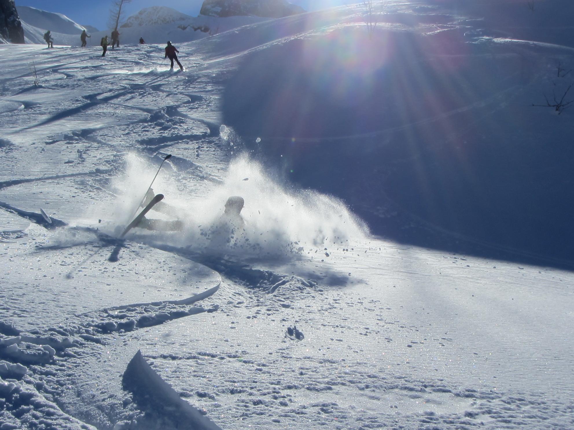 Der Bericht nur als Ergänzung mit einer Fotoserie unter dem Titel „Pulver trifft auf Windharsch“. Es konnte ein seltenes Ereignis beobachtet werden. Der portalbekannte N.Z. (auch als Teisenbergkönig bekannt) lieferte einen seiner seltenen Stürze, und das vor laufender Kamera, die 40 Bilder aus der Sturzserie können beim Kameramann angefordert werden ;-).