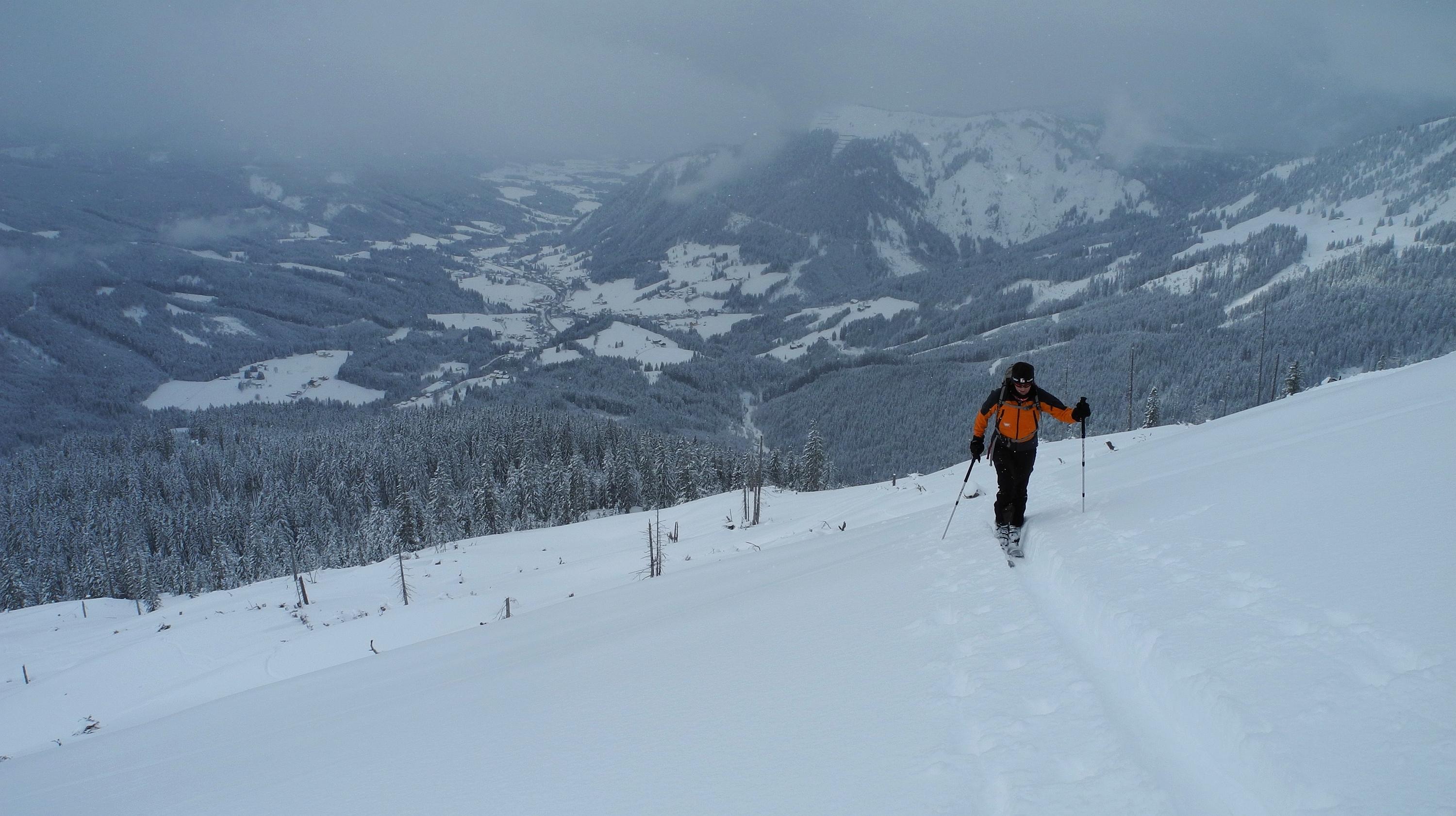 Aufstieg vom Pass Gschütt. Abfahrt westseitig (etwa Richtung Weiglhofalm)