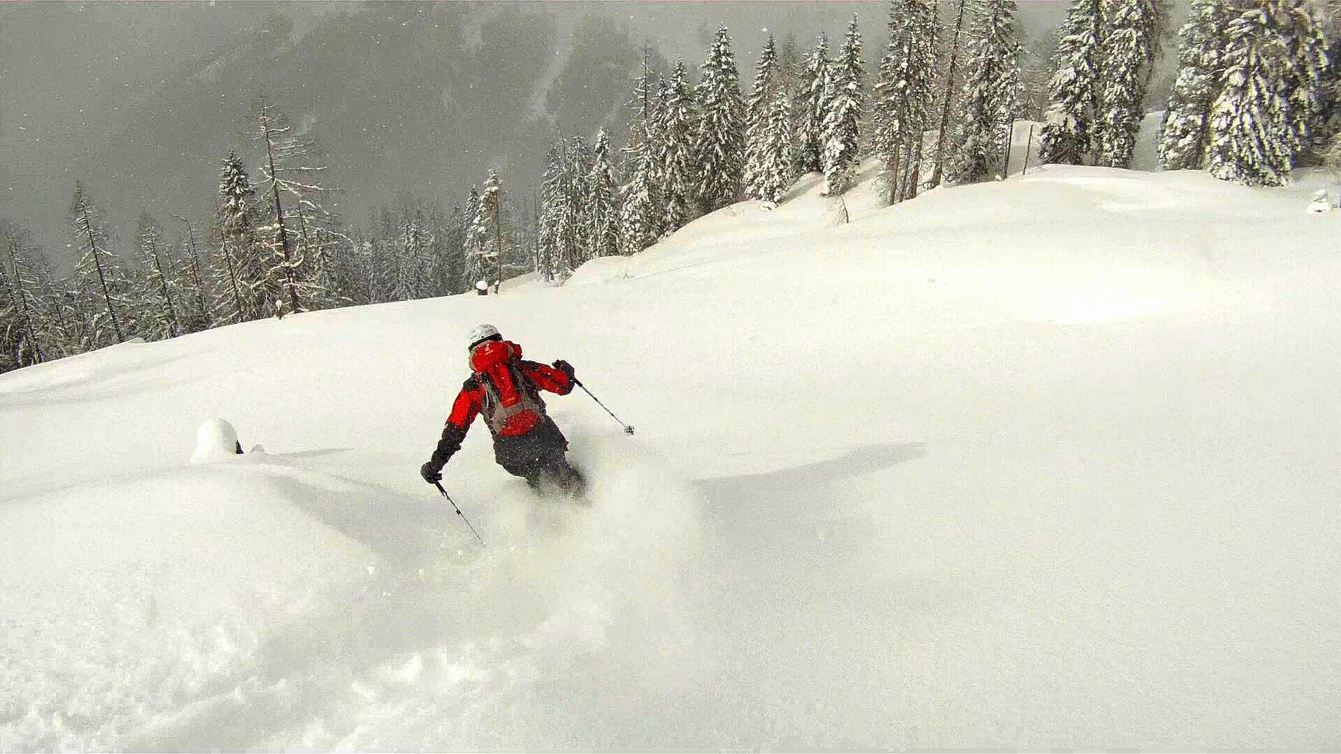 Sehr wechselnde Bedingungen (Sonnenschein und gleich darauf extrem starker Schneefall).