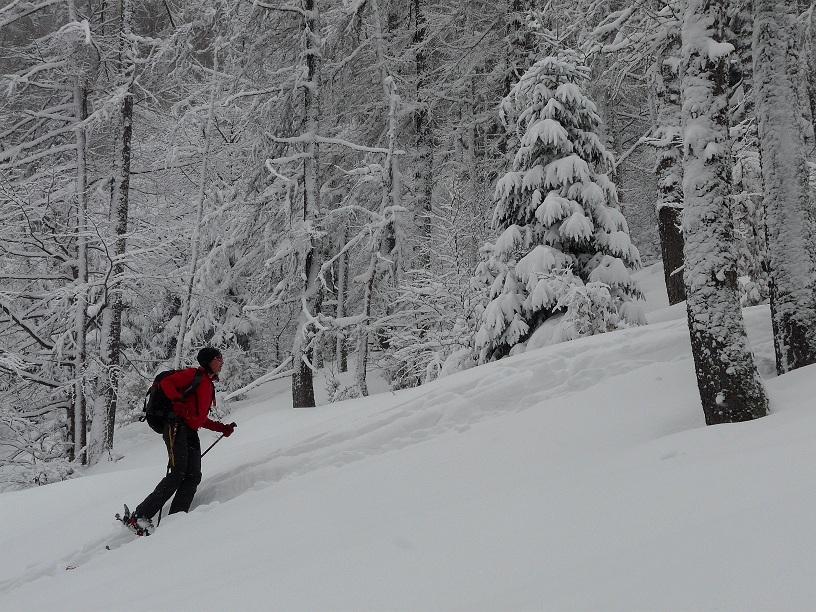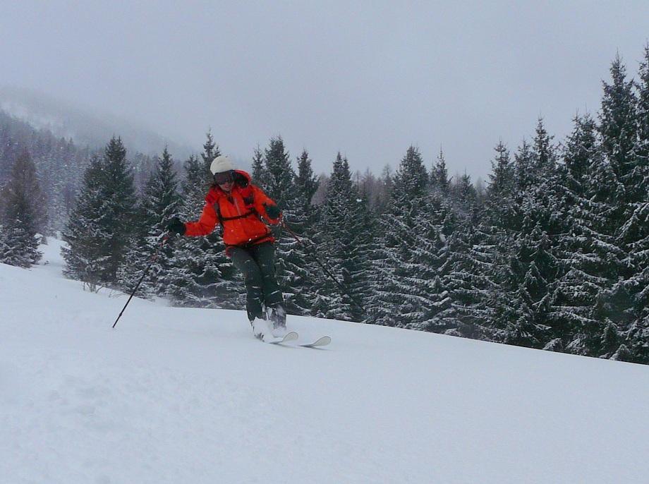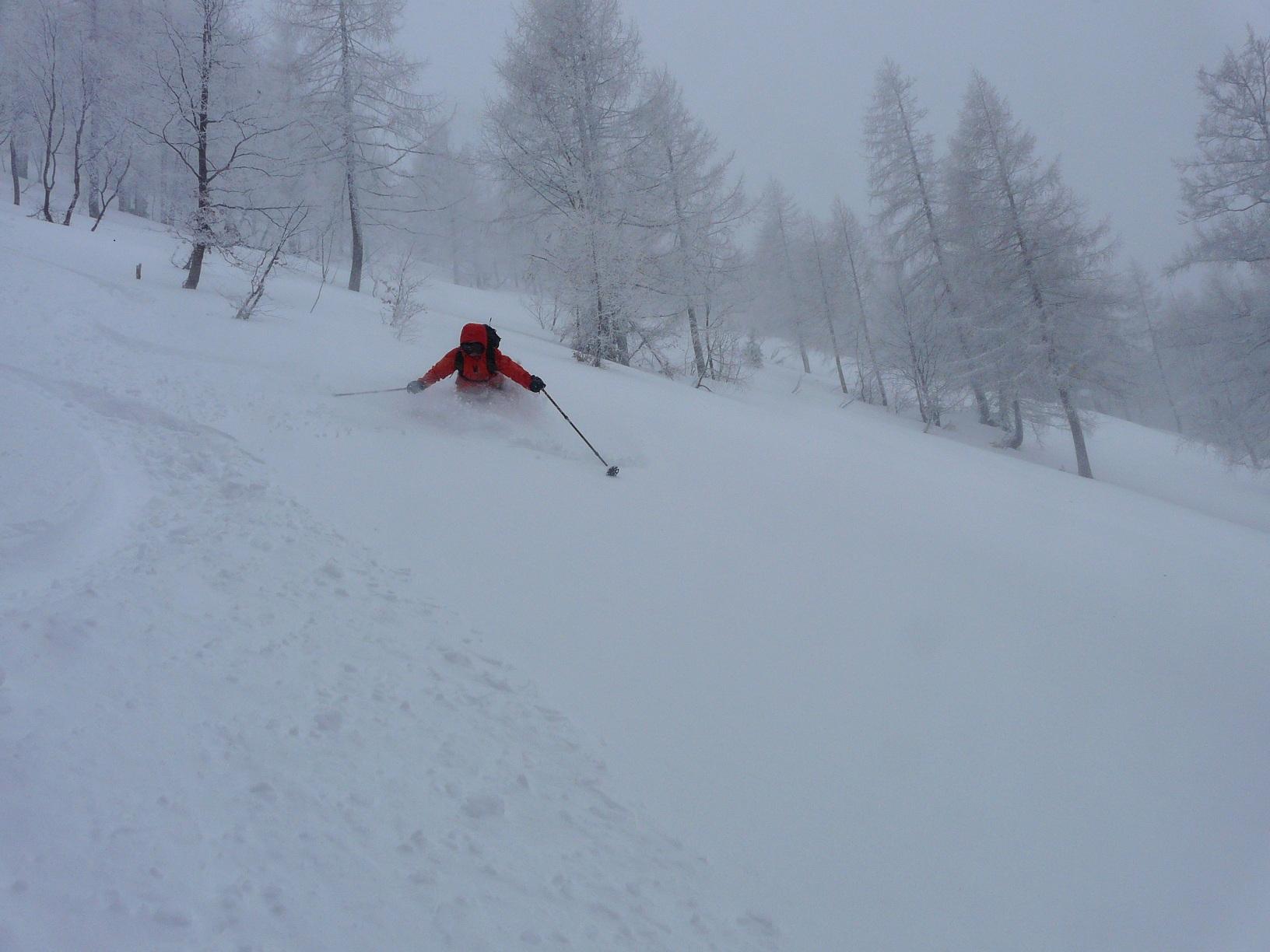 ca. 30 cm trockener Pulver, stellenweise sogar mehr, kaum haben wir den Wald verlassen empfängt uns