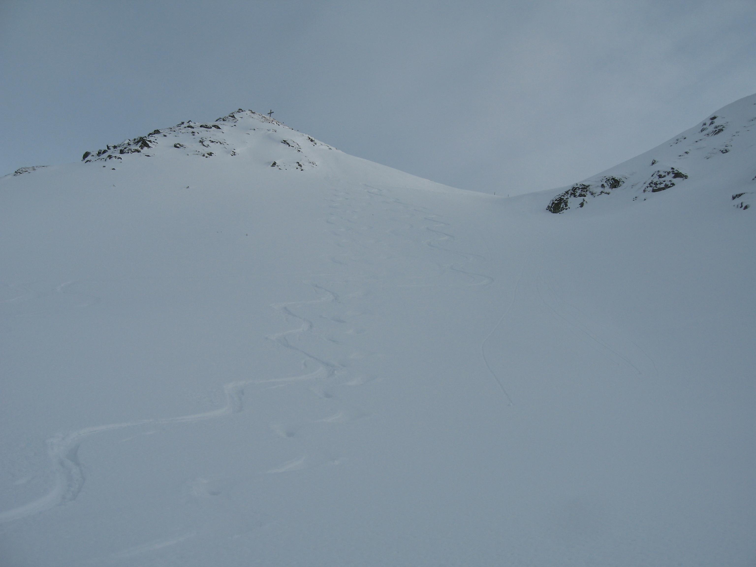 heute war der kuhkaser in den kitzbühlern dran. schnee: alte harschdeckelschicht mit 10 cm pulverauflage im oberen bereich. war noch einigermaßen gut zu fahren, im unteren bereich war die "piste" schon gut eingefahren u auch der schnee wurde immer schlechter u schwieriger zu befahren. sehr wenig leute heute unterwegs. hab am gipfel den nordhang gewählt, keinerlei anzeichen von schneebrett, war ja auch kaltgenug die letzten tagen u kaum neuschnee.