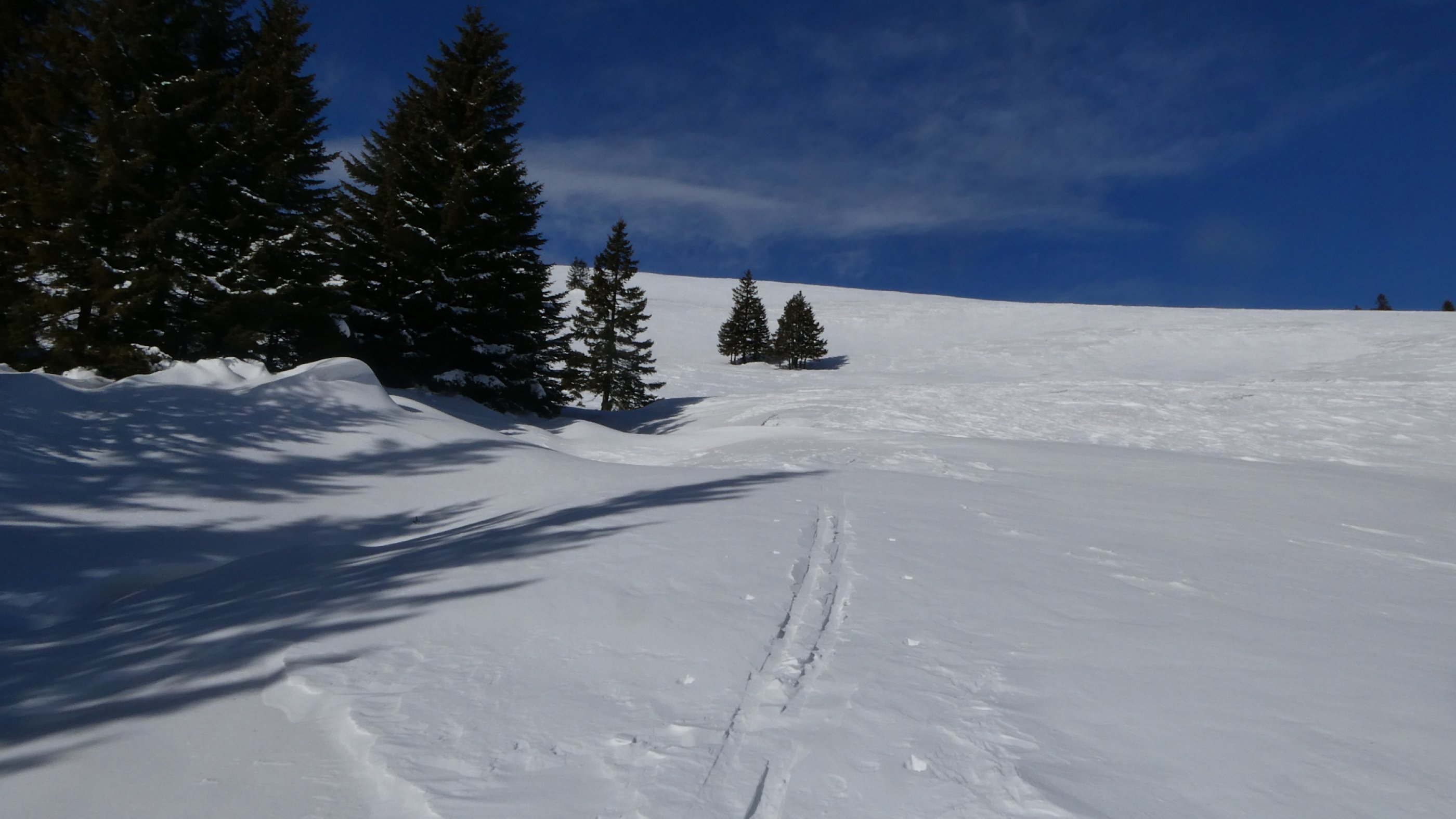 Derzeit keine Lawinengefahr. Gute Abfahrtsbedingungen bis zum Parkplatz. Ich wählte die Route, die mich an der Talstation des Schleppliftes vorbeiführte. Dort ist ein Stacheldraht zu übersteigen. Im Hohlweg zum Parkplatz war heute noch ausreichend Schnee vorhanden. Weiter Fotos auf: https://www.facebook.com/perma...