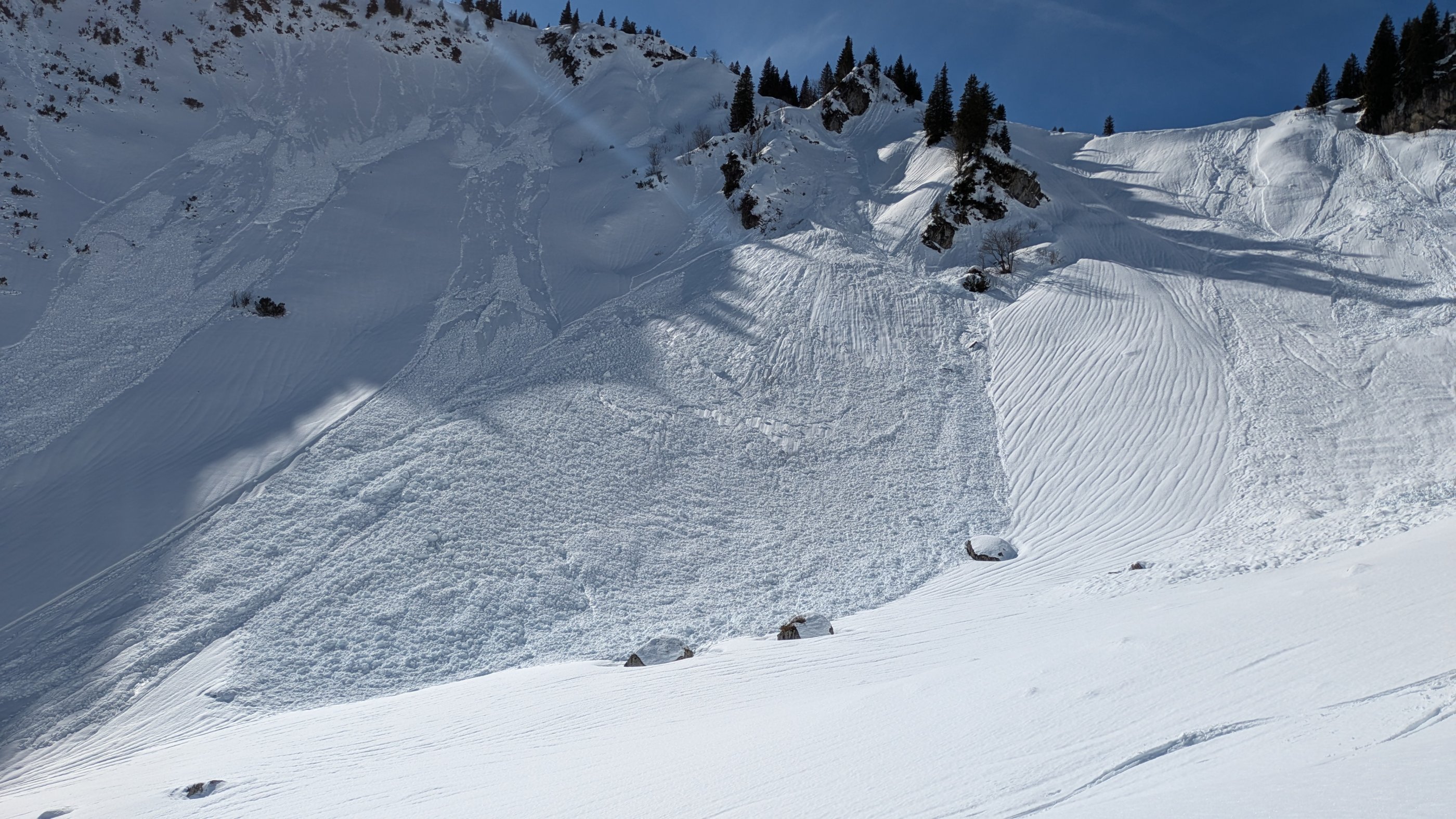 Keine Lawinen, Risse, Geräusche beobachtet. Der Schnee scheint bereits gut mit der Unterlage verbunden zu sein.