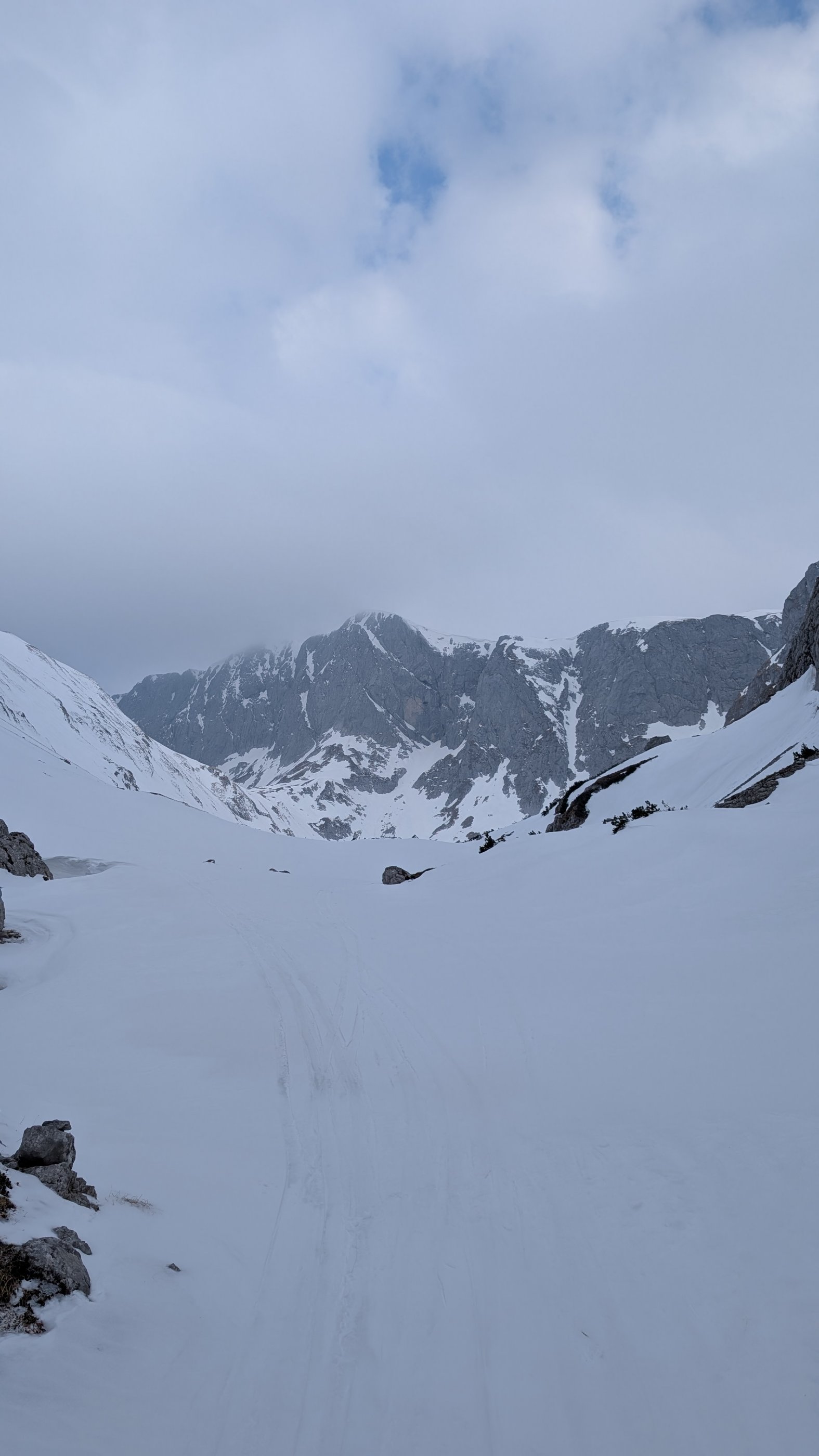 Schnee heute am Vormittag sehr eisig, Harscheisen im Aufstieg notwendig (vor allem ab der oberen Dullwitz). Abfahrt gut möglich.