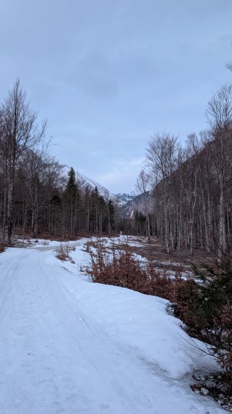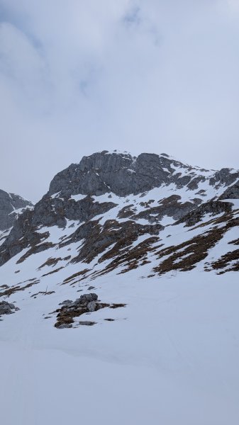 Vom Parkplatz weg ein paar Meter Ski tragen, dann fast durchgehend ausreichend Schnee bis zum Gipfel.