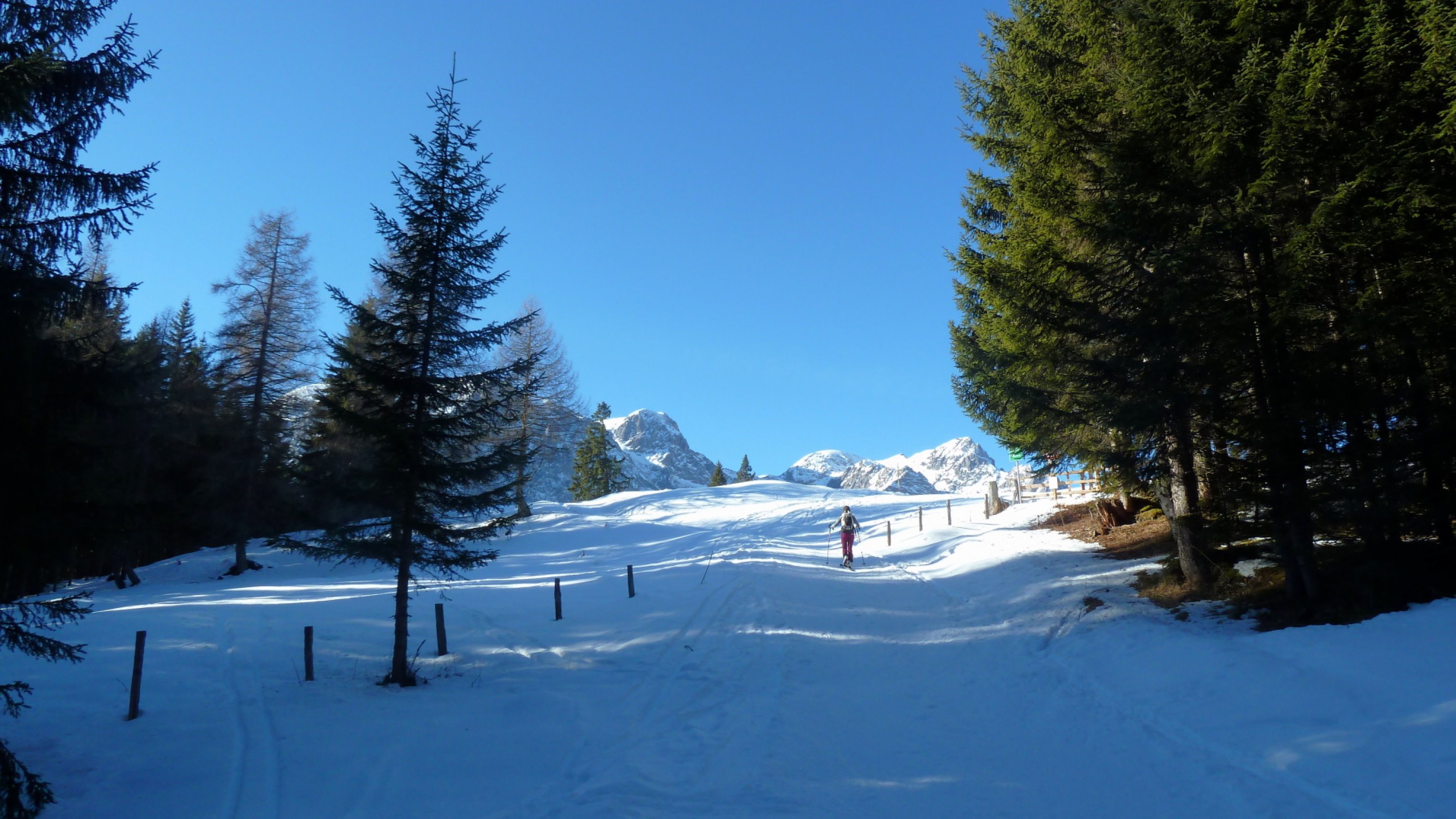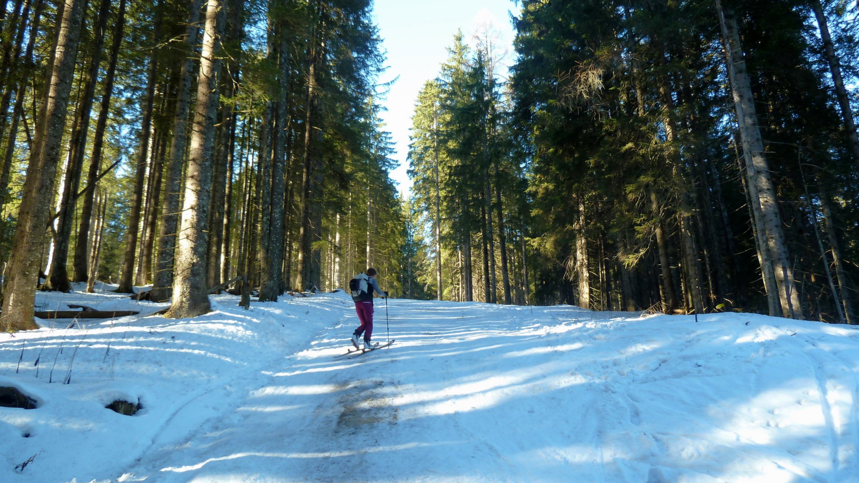 Der vorgestrigen Tourenbeschreibung von Leonhard ist nicht viel hinzuzufügen. Die zwölf Schneeflocken (angekündigt waren Zentimeter) von gestern haben keinen Unterschied gemacht, die eisigen und aperen Stellen auf der gewalzten Piste im Wald sind nicht weniger geworden, uns ist das Umfahren nicht immer locker gelungen.