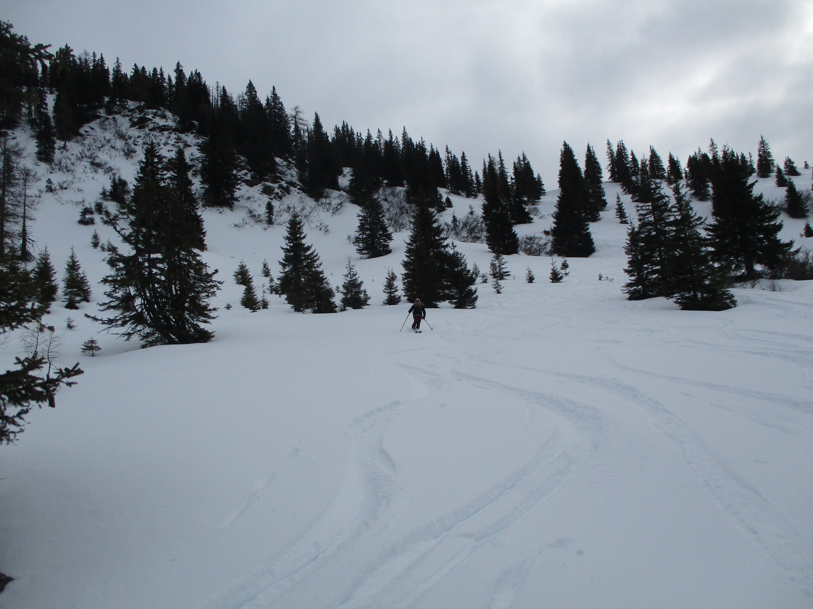 Keinerlei Lawinen zu sehen. Aufstieg vom Parkplatz mit Ski geht gut. Abfahrt vom Ebenstein tlw. am Sommerweg. Abfahrt von der Sonnschien bis zum Bründl problemlos, dann ist es ein kurzes Stück steinig, danach Abfahrt bis zum Parkplatz. Im Wald sind einige eisige Stellen. Russenstrasse schön zum fahren, perfekt präpariert vom Wirt der Sonnschienhütte. Das Polsterkar ist derzeit sicher lohnender als der Ebenstein. Sonnschienhütte von Donnerstag bis Sonntag geöffnet