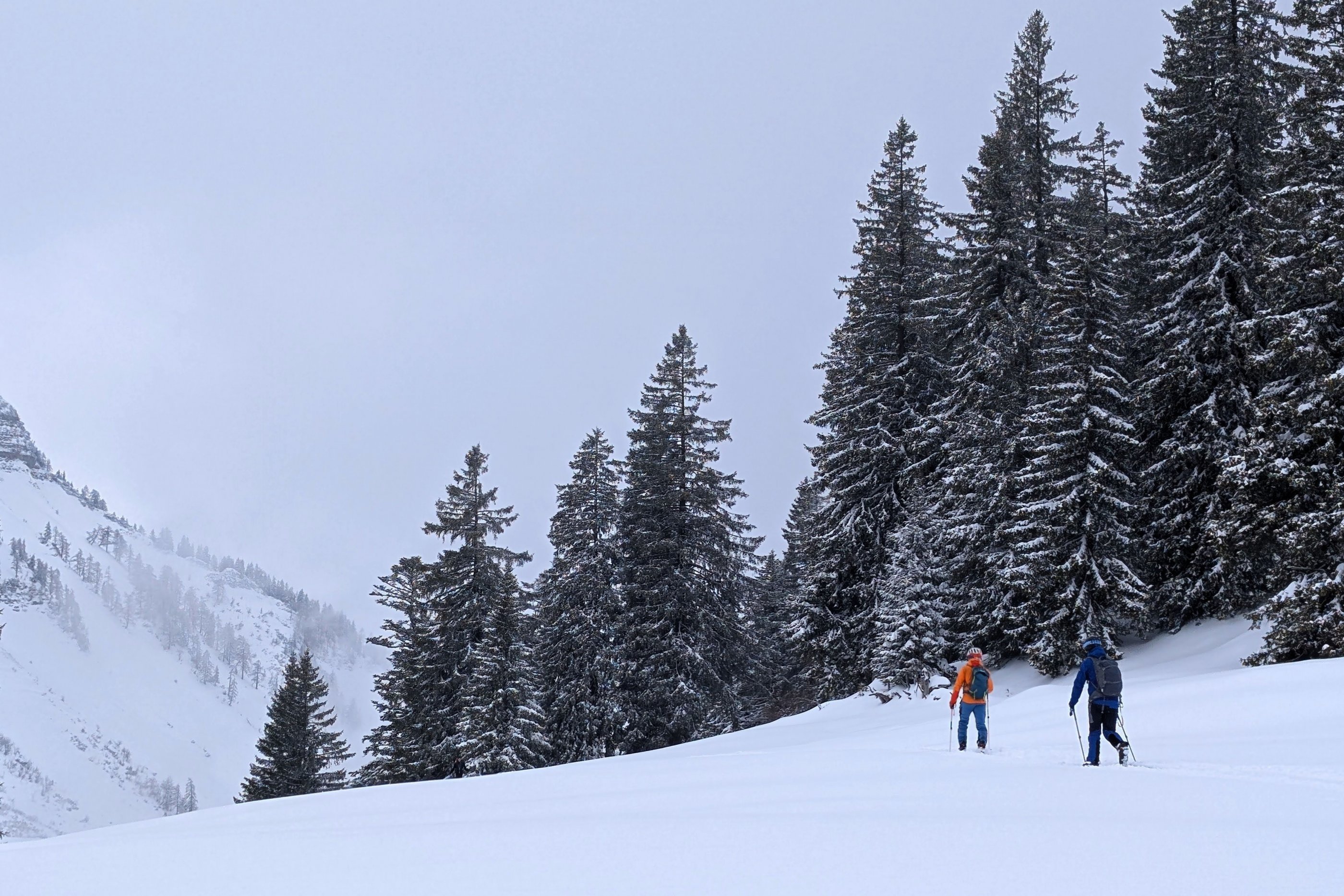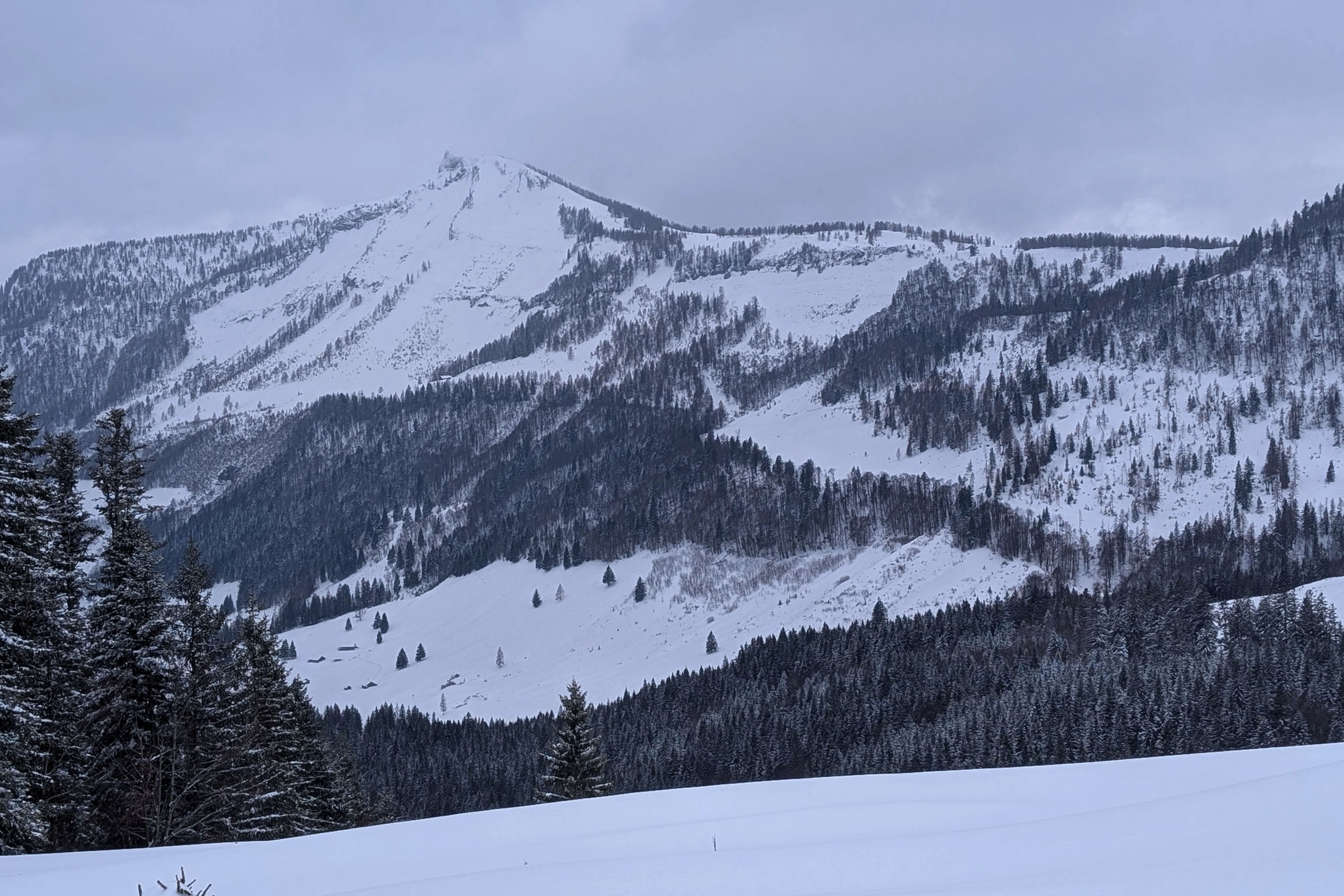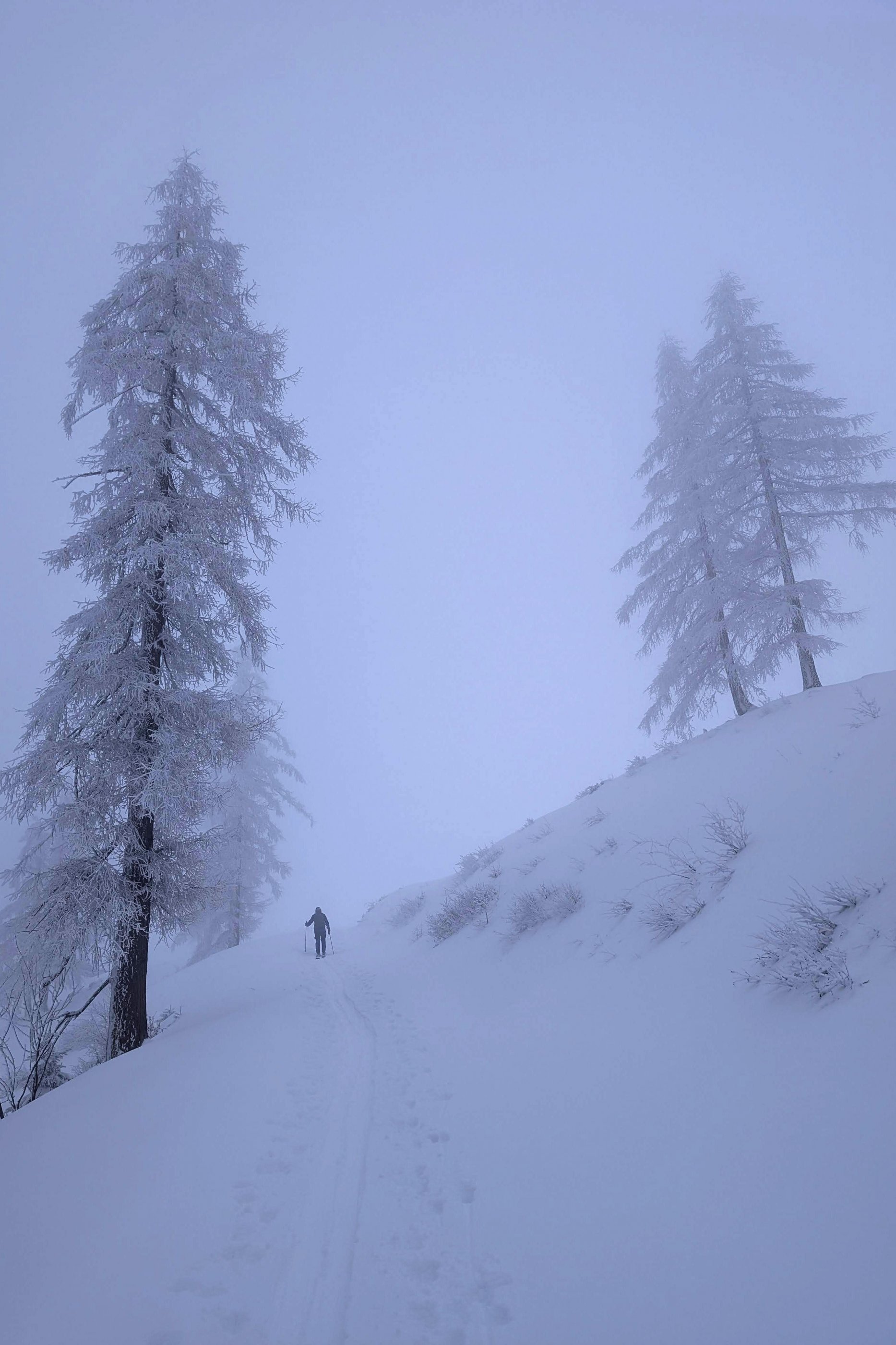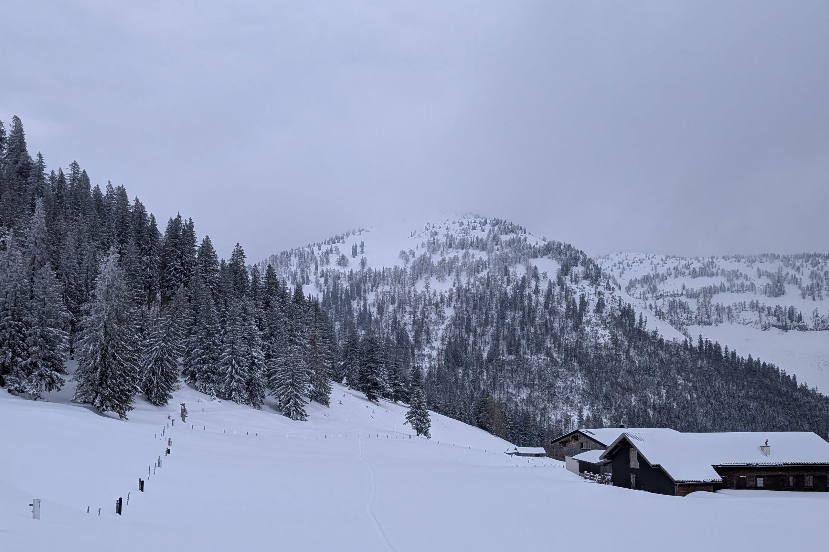 Der Aufstieg ist entspannt und ab der Genneralm wird die Sicht immer wieder schlecht. Im Wald zum Zinken rauf ist die Orientierung gut und ziemlich angenehm gespurt. Herzlichen Dank!