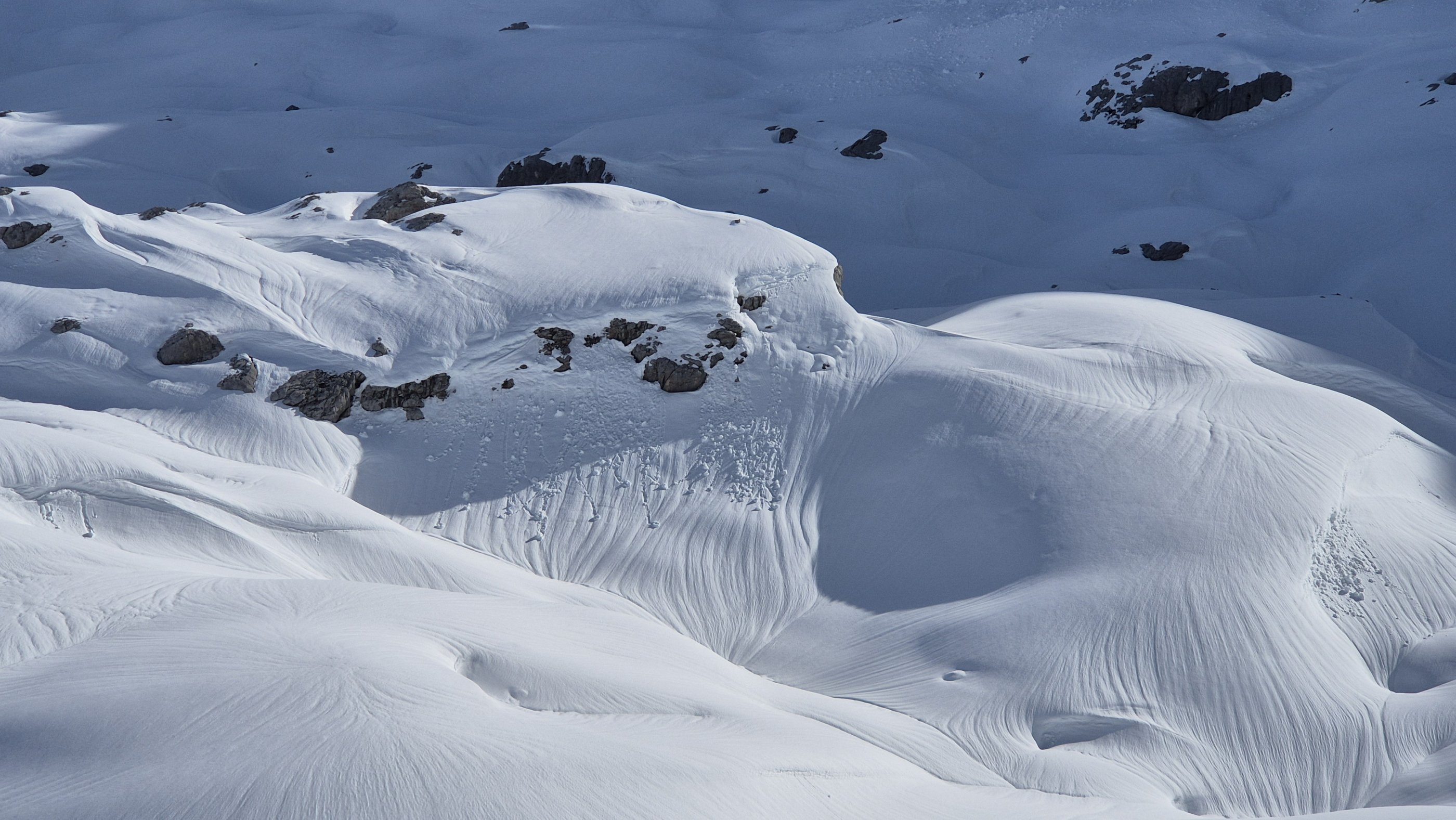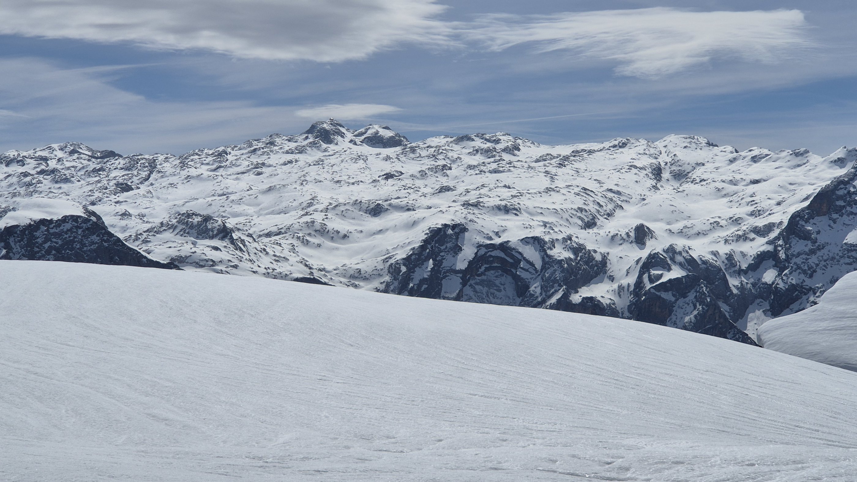 Vormittag hart und griffig, steilere Anstiege nur mit Steigeisen machbar. Nachmittag Firn und an seichten Stellen tiefer.