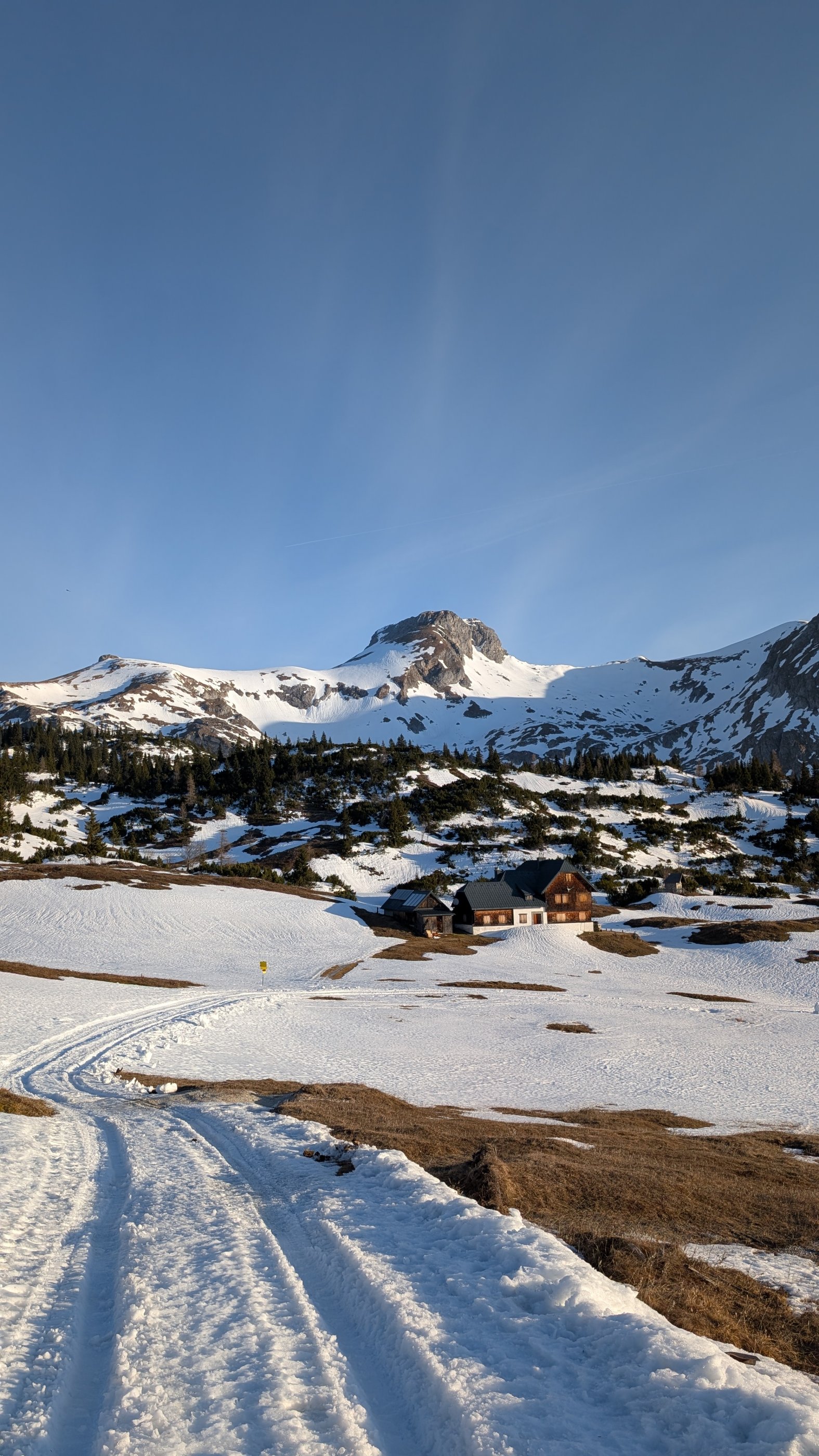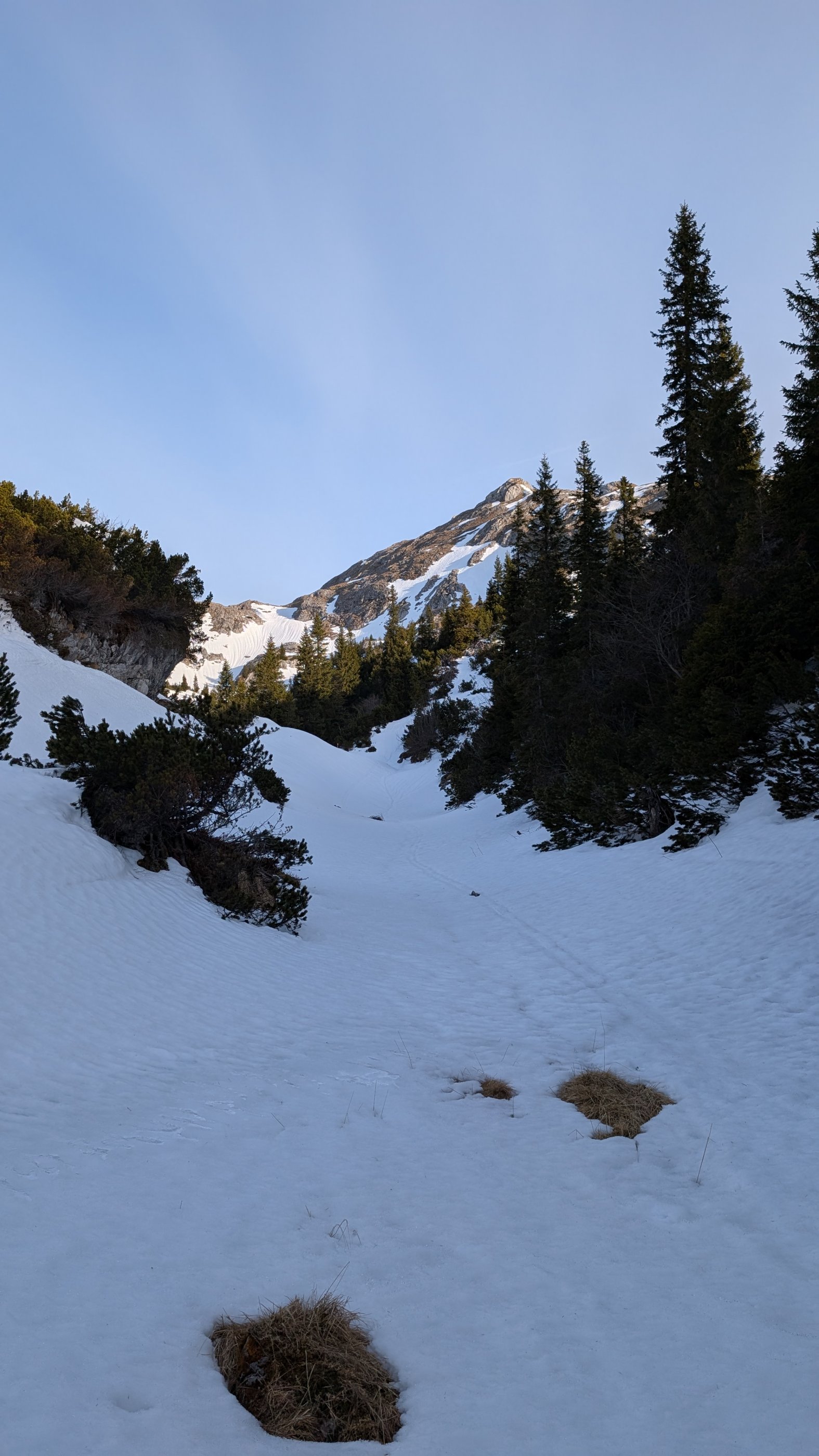 Ab Sonnschienalm bis kleinem Ebenstein annähernd durchgehende, feste Schneedecke (getestet bis 10:00 Uhr).