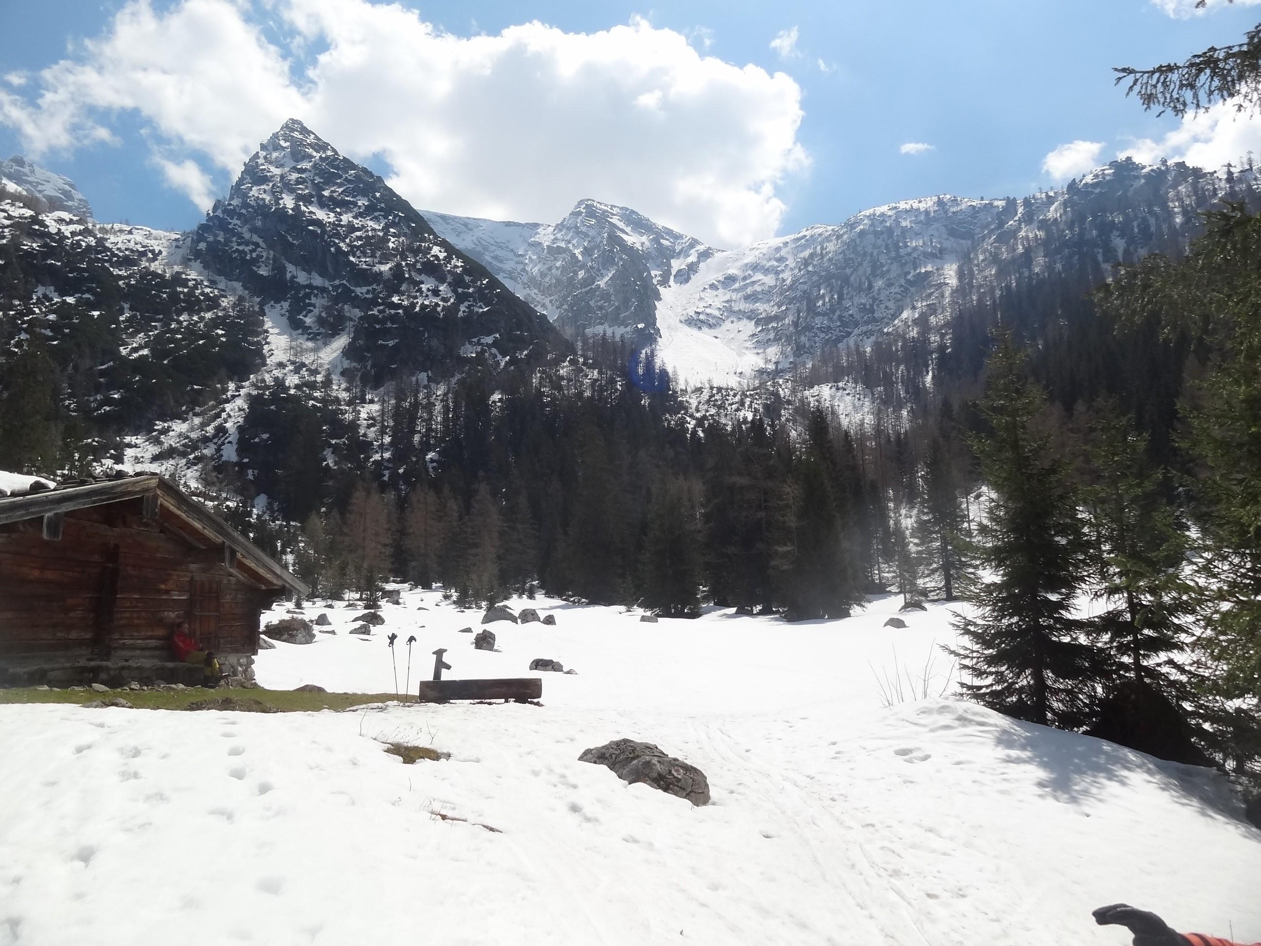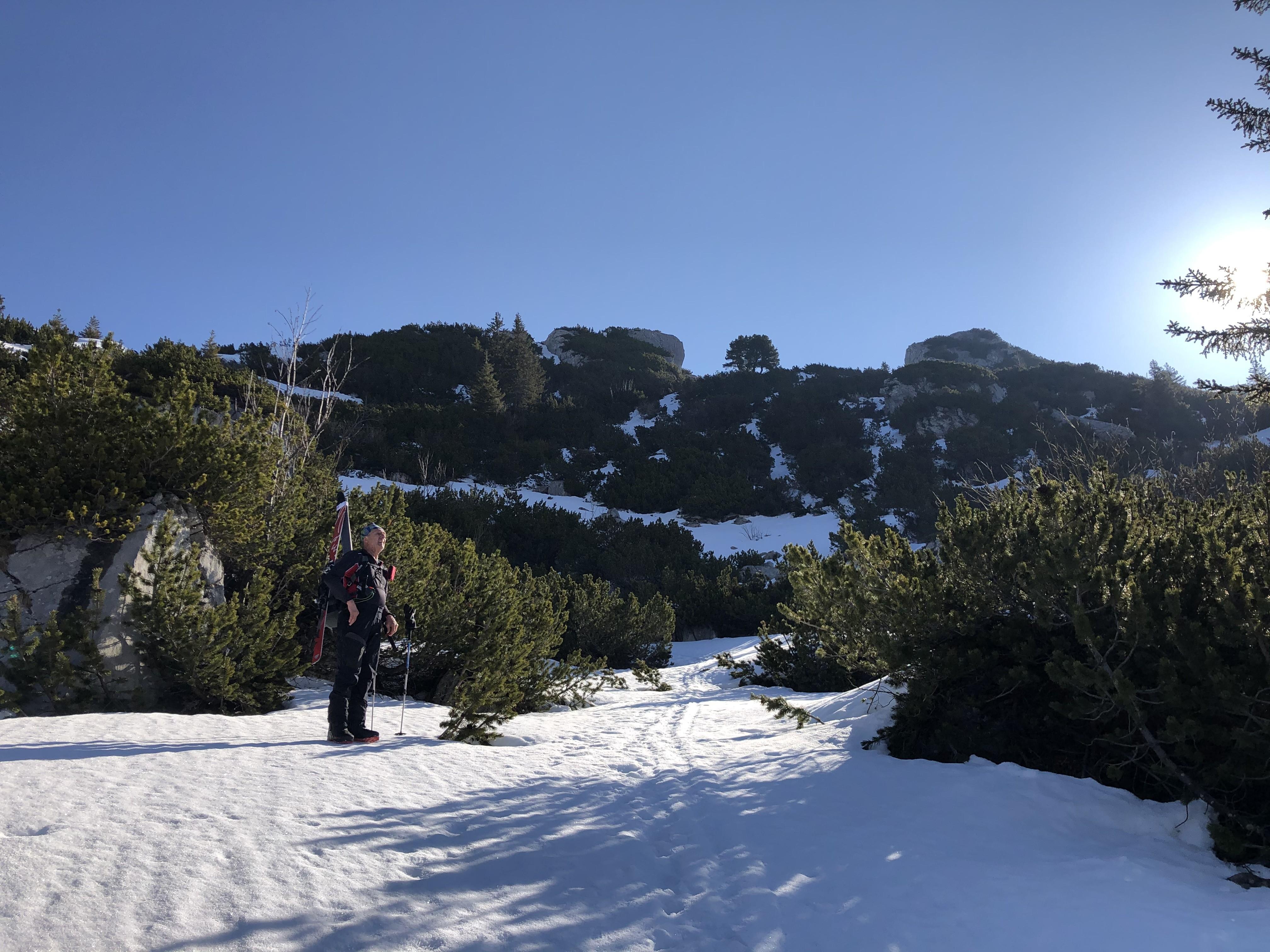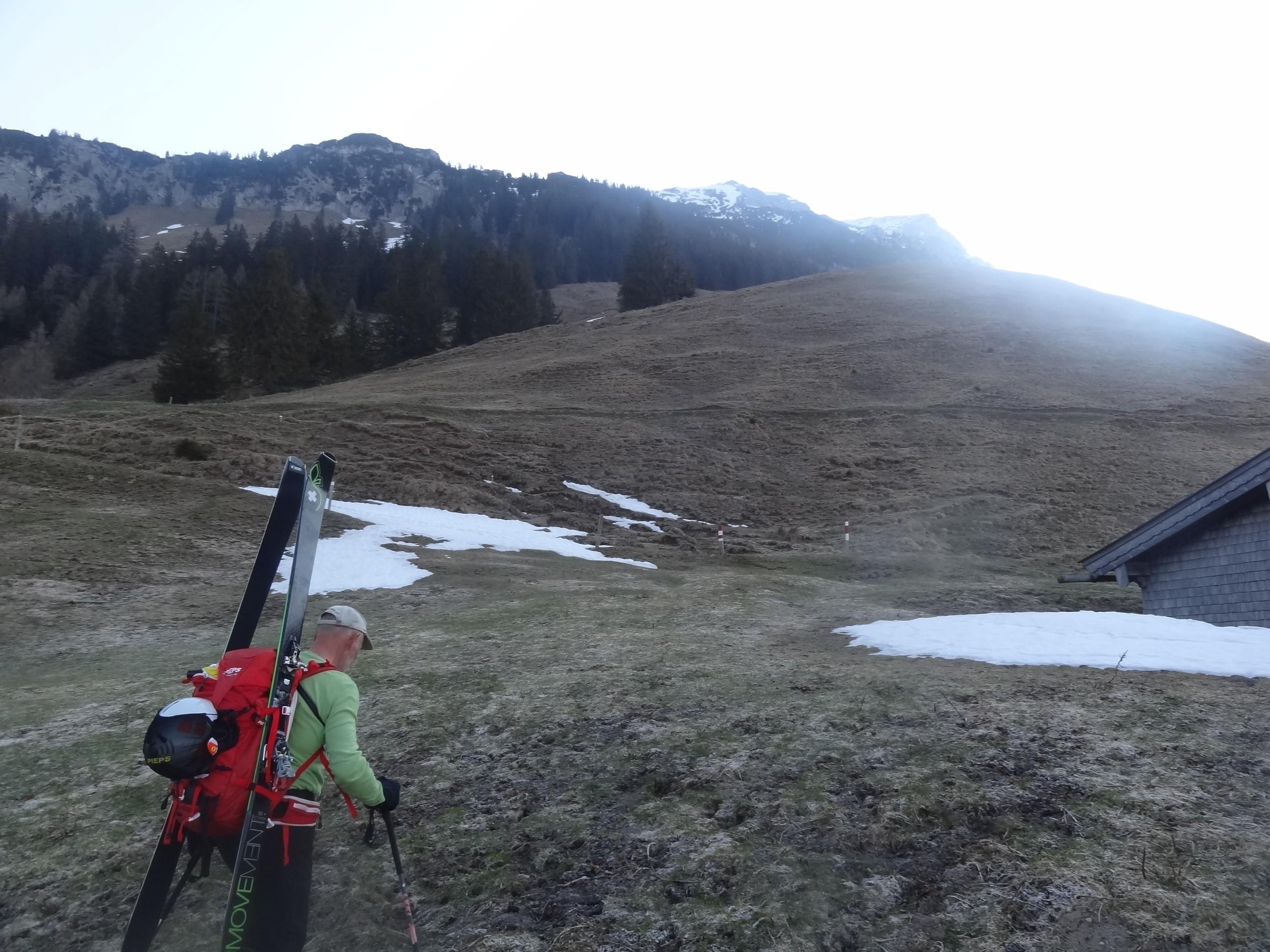 Die untersten Meter zur Mittereisalm versöhnten uns jedoch wieder mit schönem Firm. Ab da hieß es aber dann wieder, Schi am Rucksack bis zum Parkplatz.