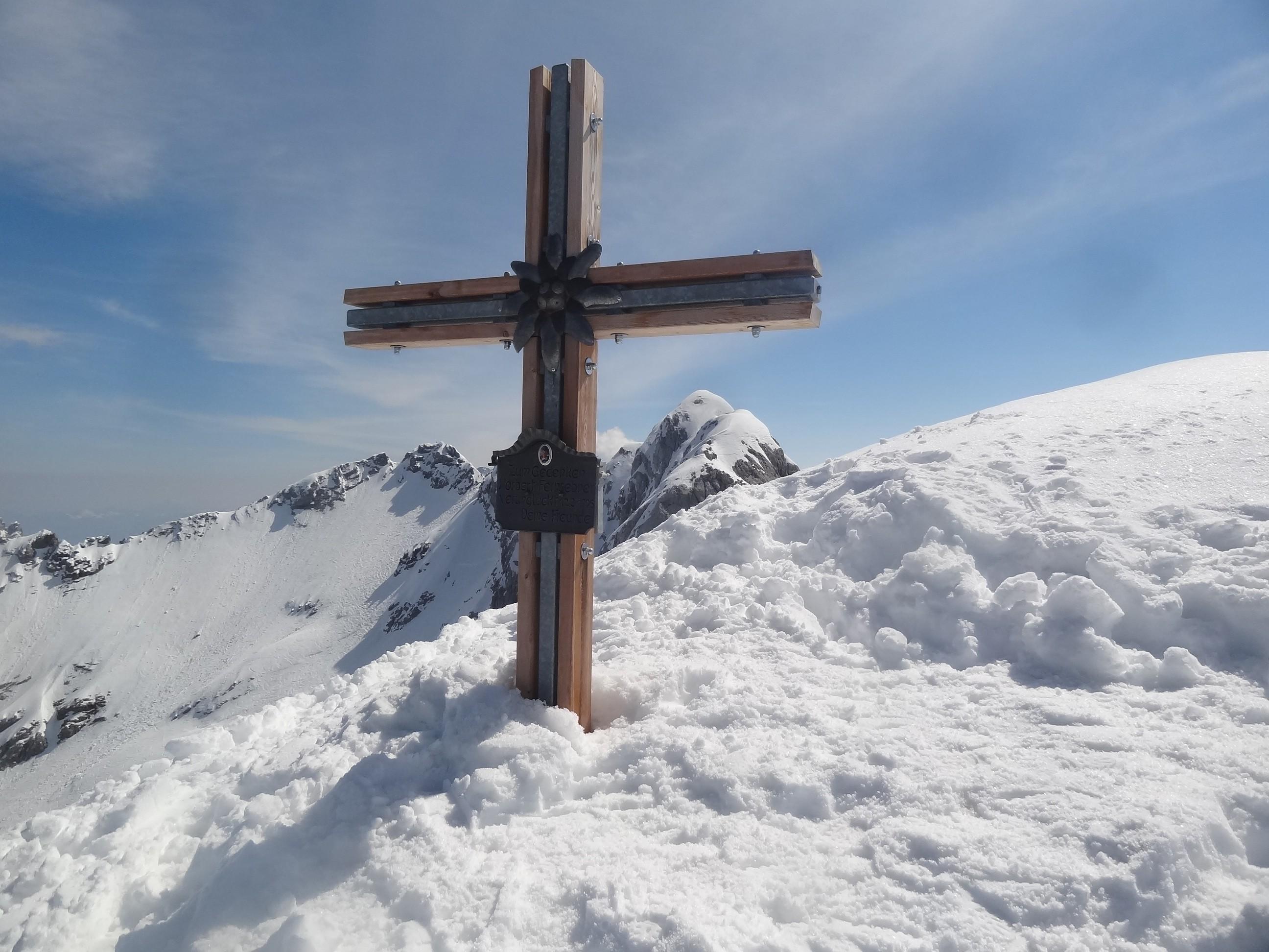 Gipfelkreuz mit Hocheisspitz, links