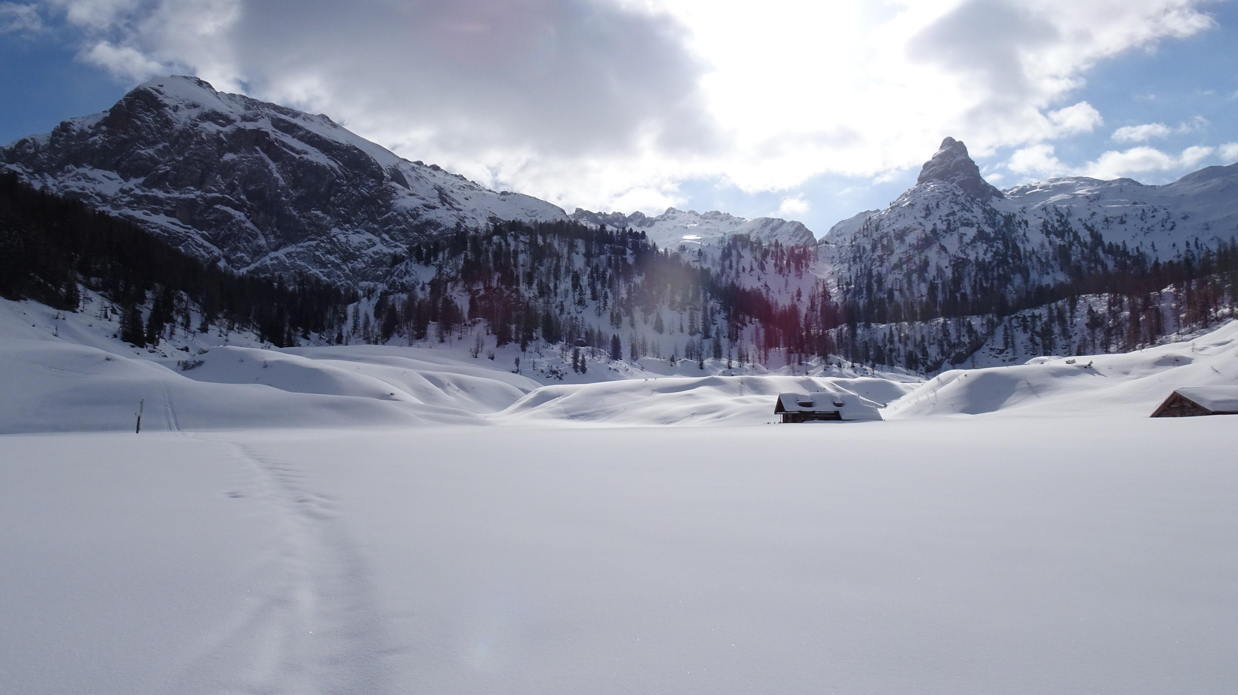 Wir gingen von Pürzelbach über die Kallbrunnalm und den Dießbachstausee zum Ingolstätterhaus. Von dort fuhren wir hinunter zum Funtensee. Dieser Kältepol machte seinem Namen alle Ehre: dort war es, obwohl windstill deutlich kälter als sonst auf der ganzen Tour.