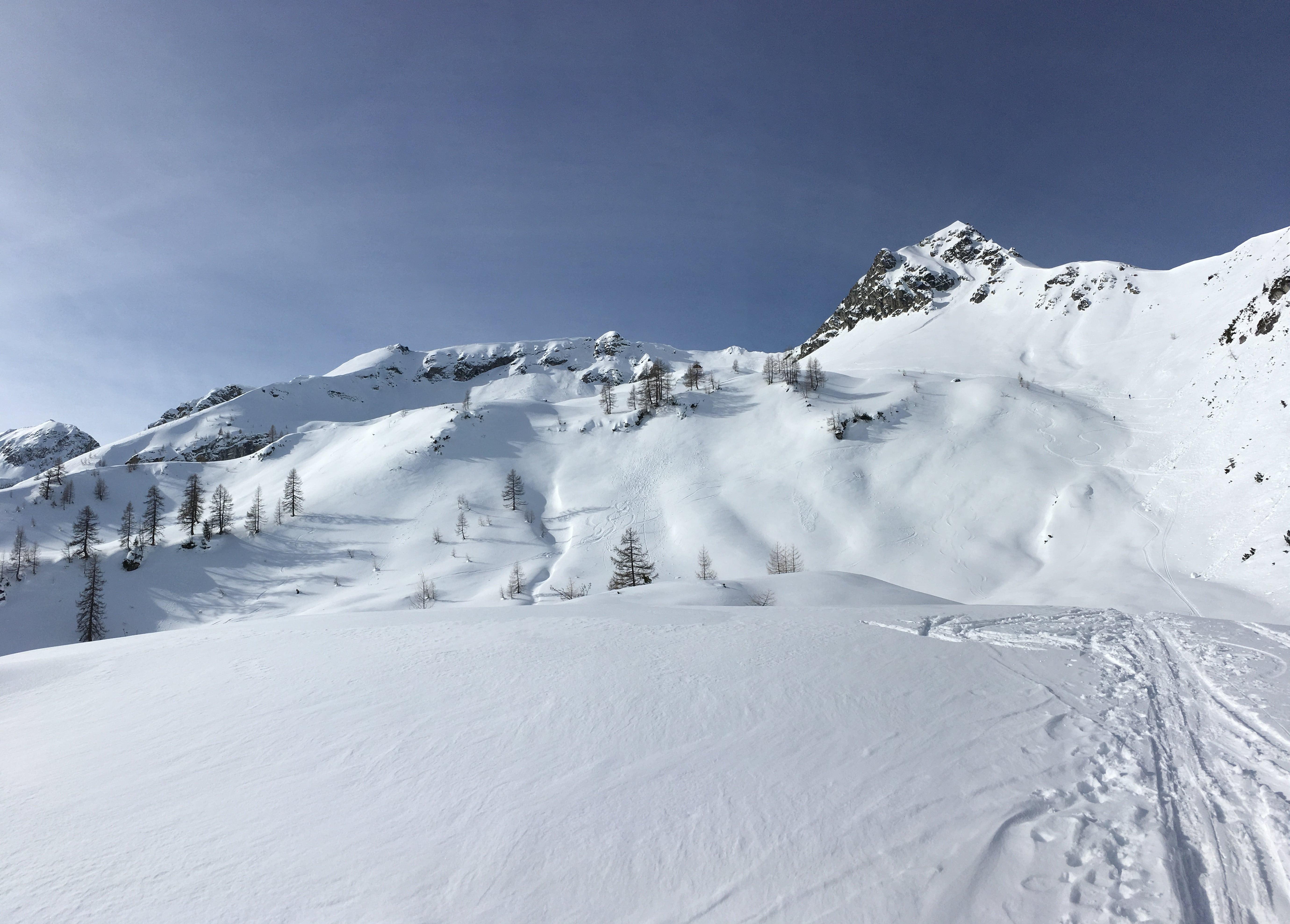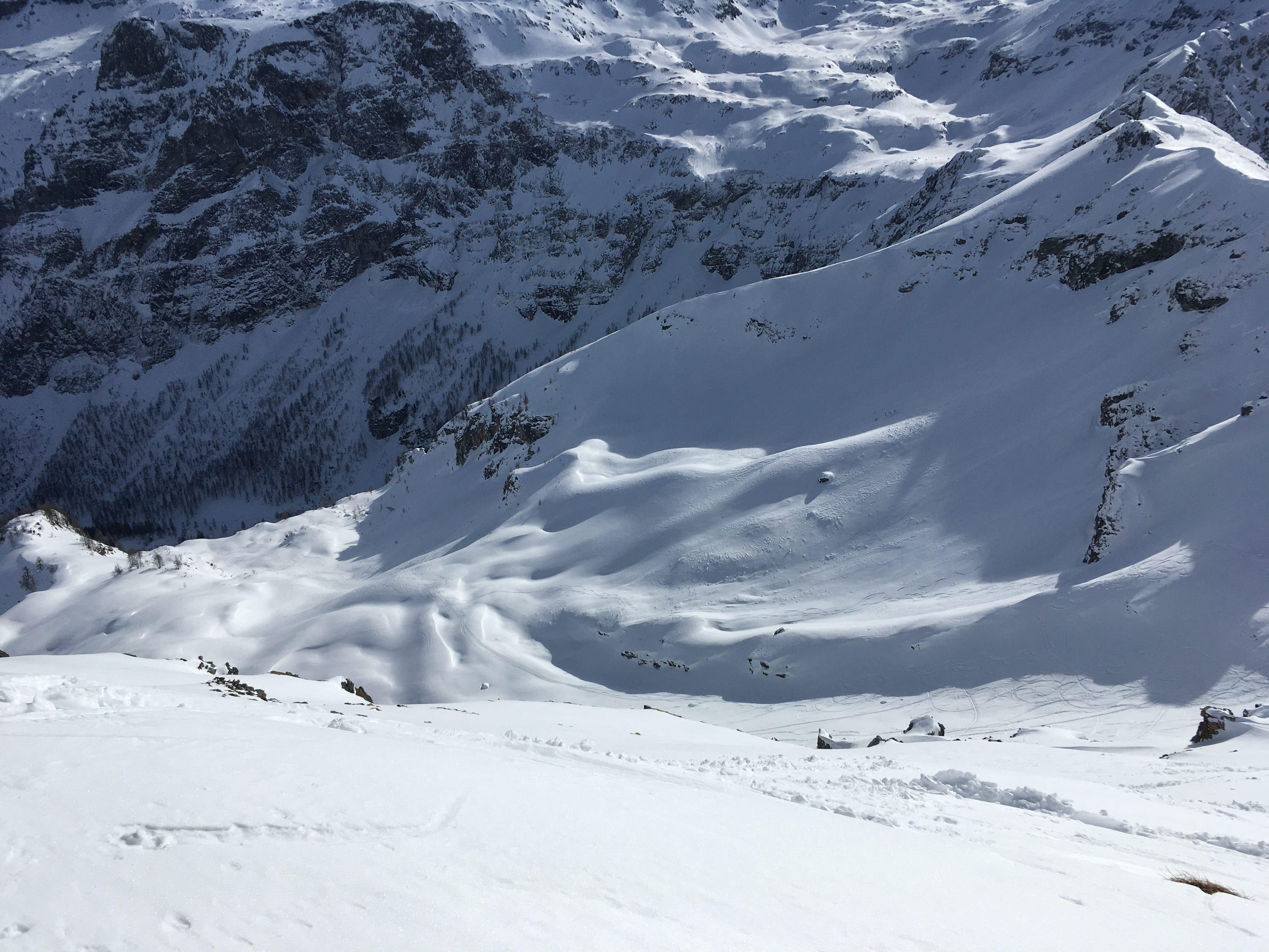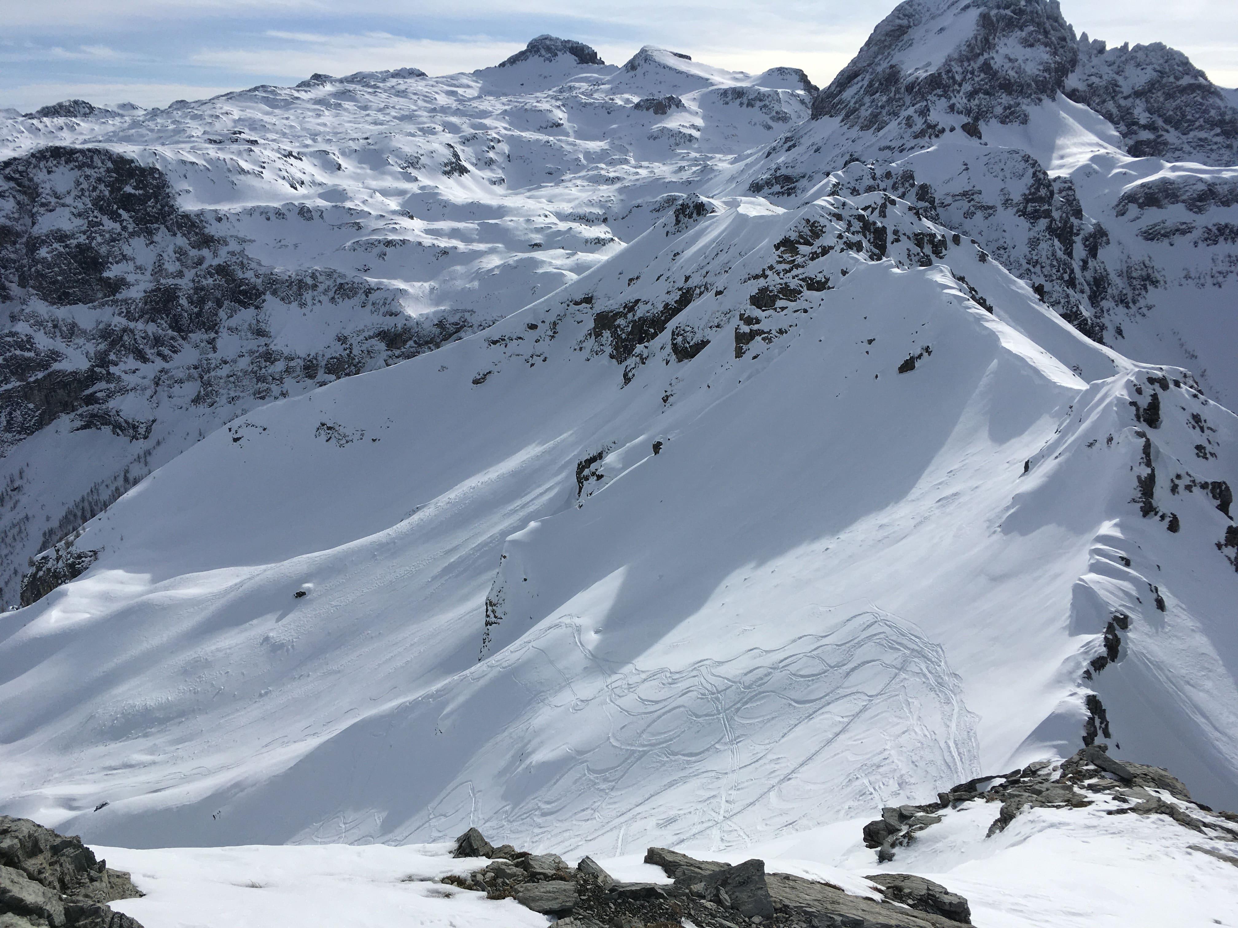 Außer ein paar kleineren Nassschneerutschen aus steilen Südlagen keine,