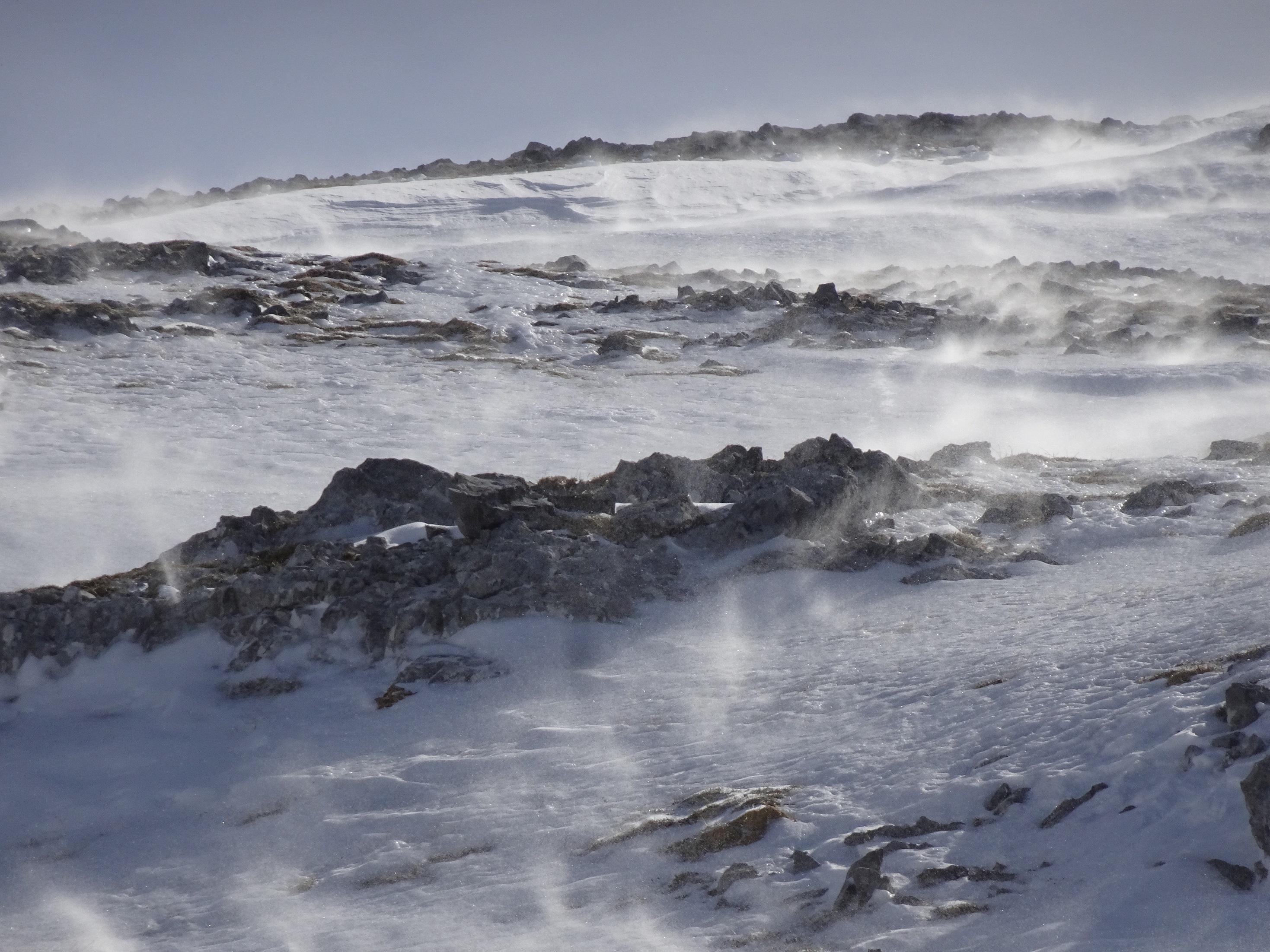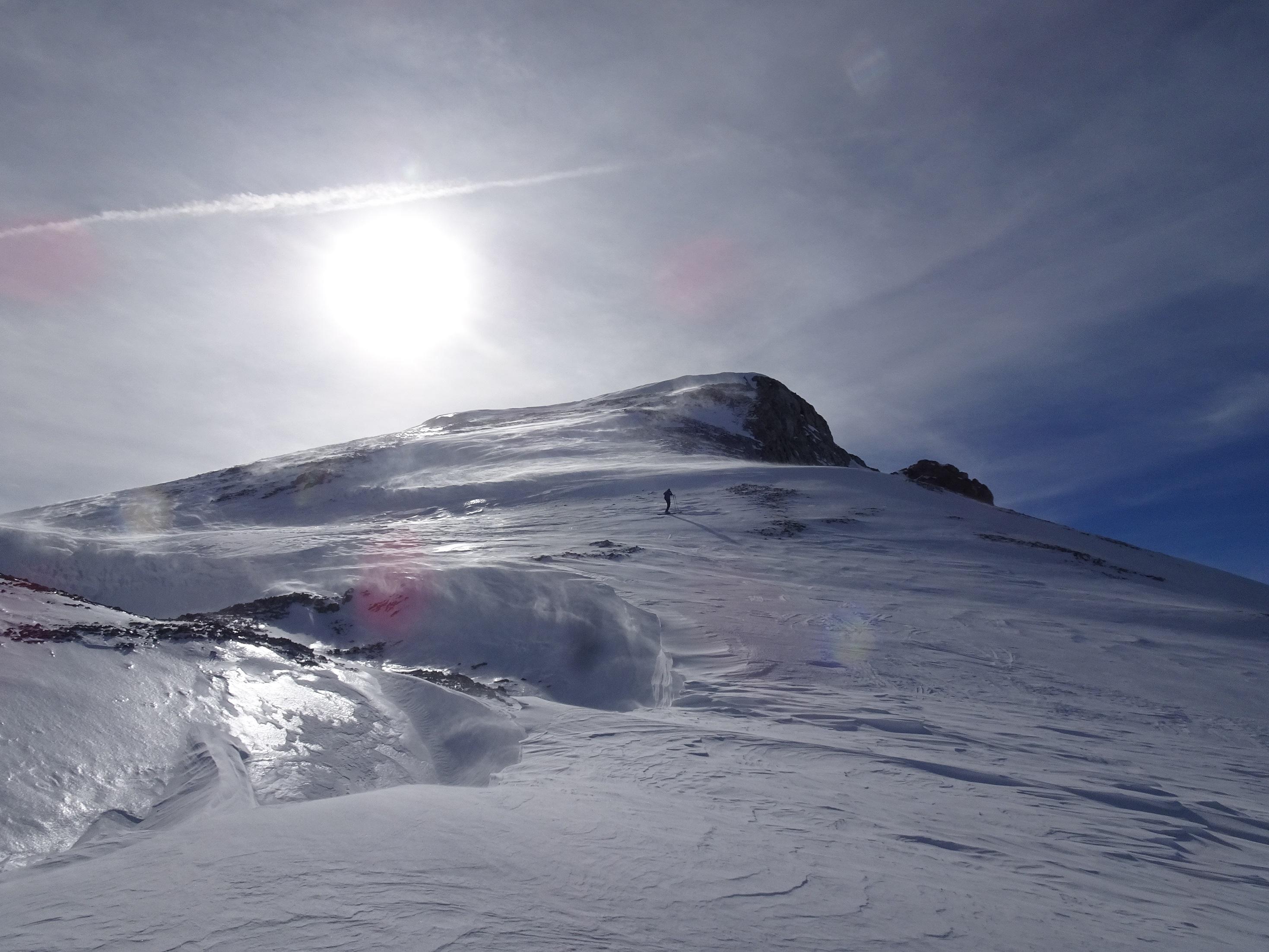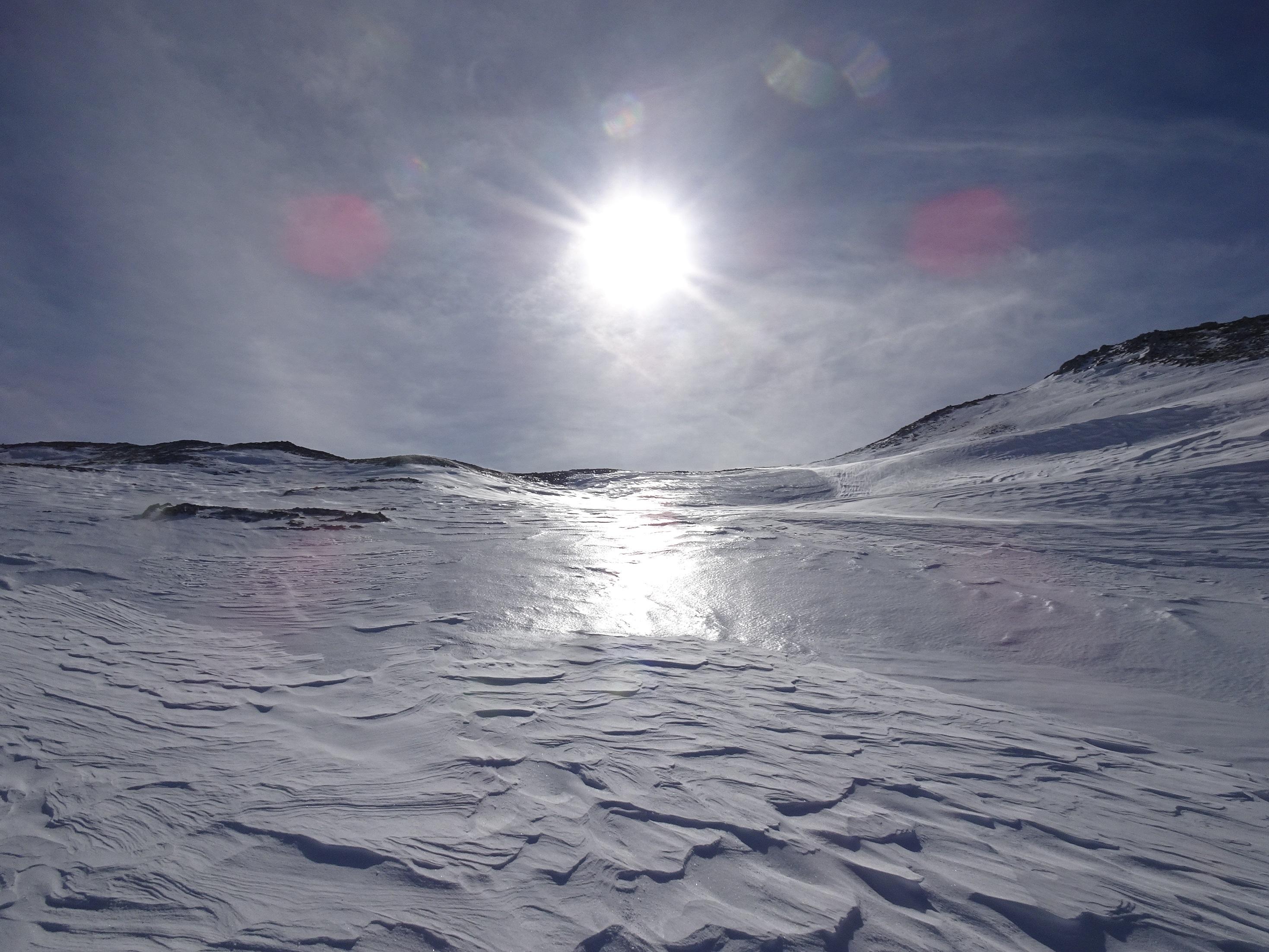 Wetter: schön aber windig. Wir konnten sehr gut beobachten wie der Schnee auch über weite Strecken geblasen wurde.