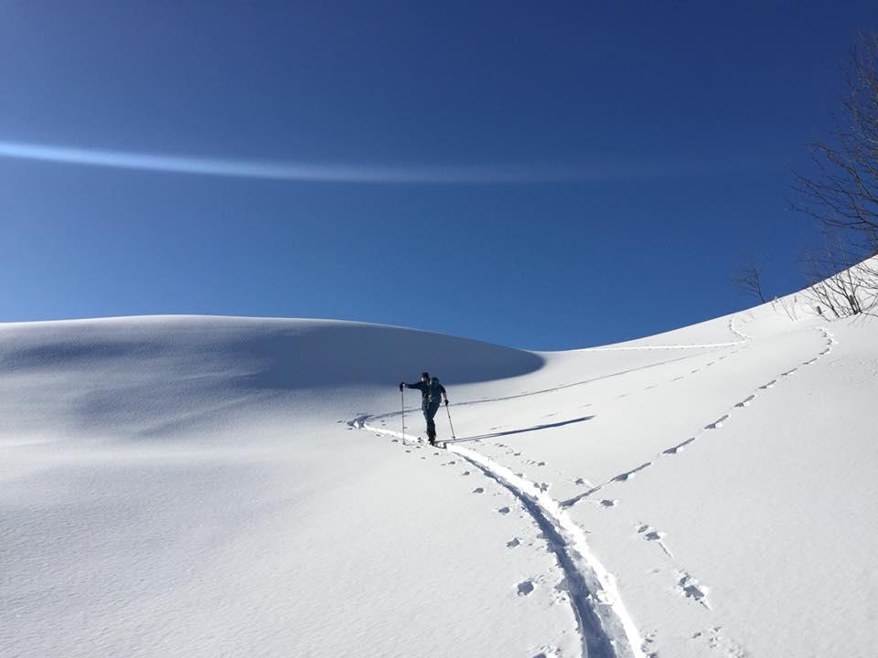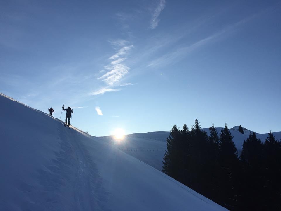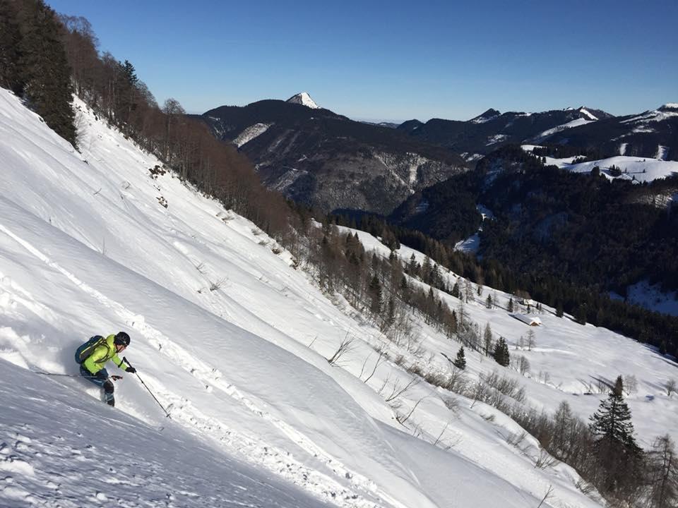 Verhältnisse: In der Sonne sehr warm. Nordseitig bester Pulver. In der sonnigen Ostseite wars auch noch pulvrig. Durchlass in der Regenspitz-Nord hart. Insgesamt sehr wenig Schnee in der Osterhorngruppe.