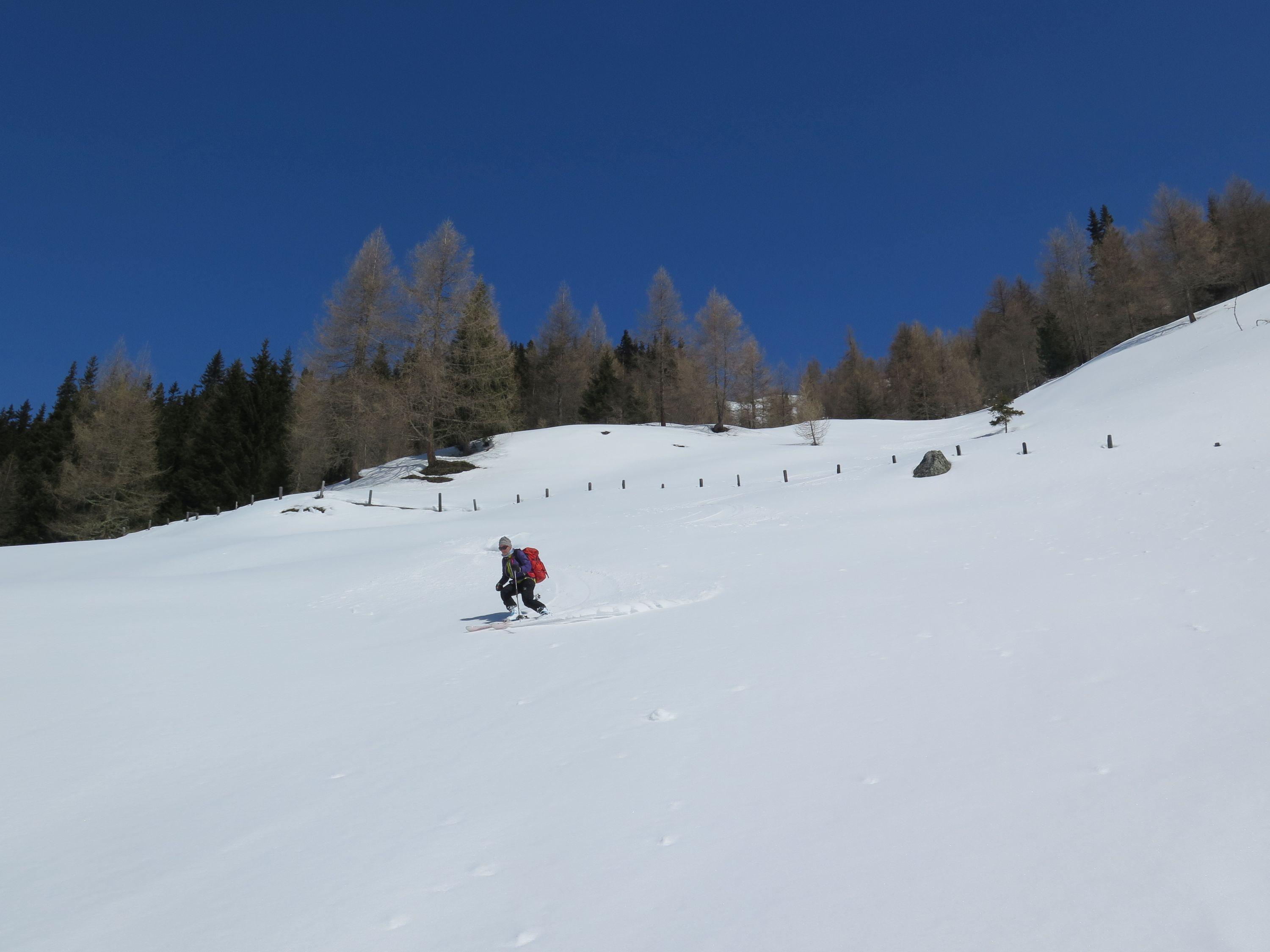 Ausgangspunkt ist der Parkplatz Landeckwald. Start vom Auto mit den Ski , man folgt der Forststraße bis zur Staudlachalm, die folgenden weiten, nicht allzu steilen SW-Hänge bieten herrliches Skitourengelände.