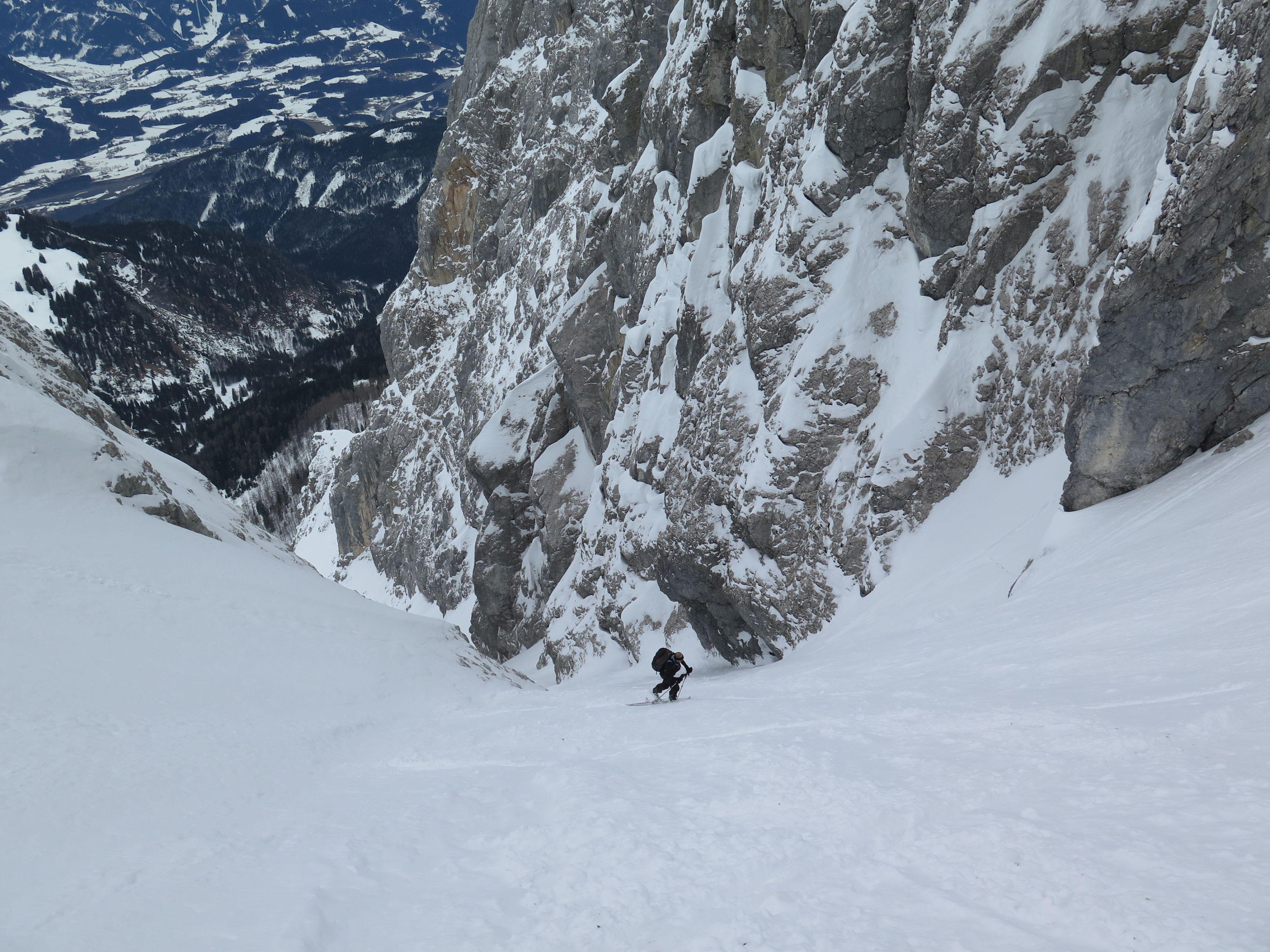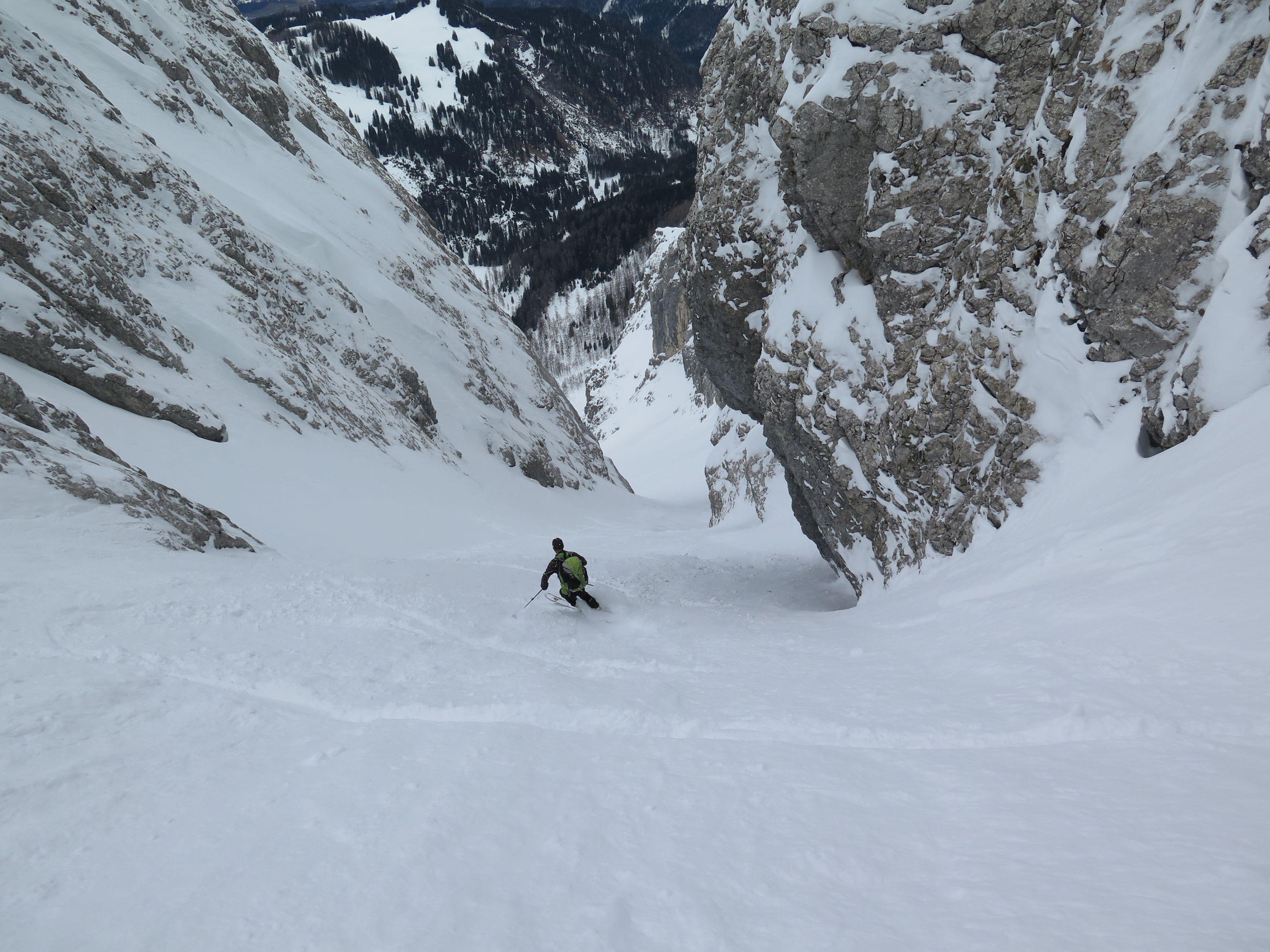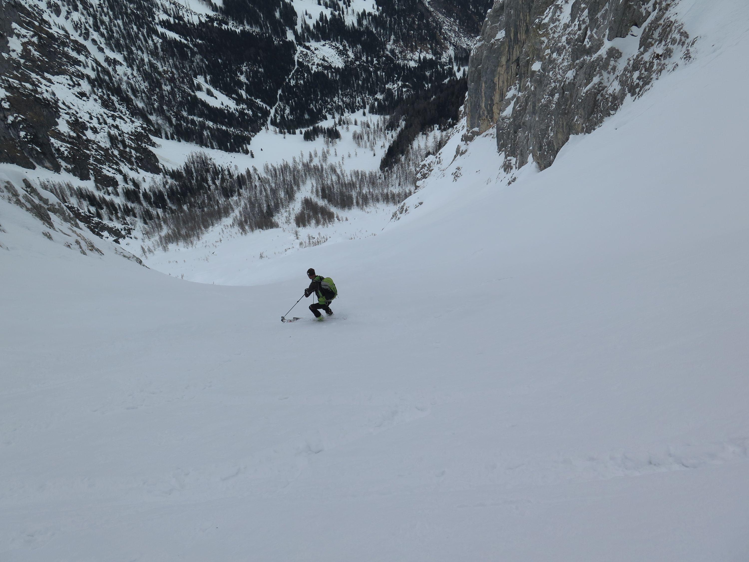 Hatten heute gute Verhältnisse, schöne Rinne mit ausreichend Platz für Schwünge .