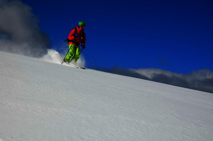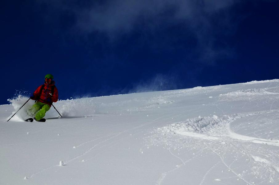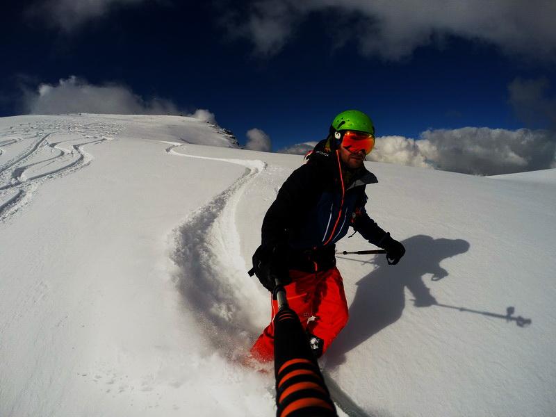 Bereits am Parkplatz wussten wir dass die Tourenplanung heute wieder einmal perfekt war. Der Schnee versprach bereits enlang des langen Talhatschers durch das Innferfeldtal einiges. Das Wetter war perfekt, kein Wind und geniale Ausblicke auf die bekannten Gipfel liessen unsere Vorfreude auf eine geniale Abfahrt steigen. Unsere Vorgänger hatten eine perfekte Spur angelegt und die Abfahrt war dann ein wahrer Pulvertraum. Lawinenaktivitäten konnten wir heute keine erkennen. Im gesamten Aufstieg fanden wir ca. 20.30 cm frischen Pulverschnee ohne jegliche Spannung auf einer bereits gut gesetzten Altschneedecke vor. Lediglich die letzten 100m bis zum Vermessungszeichen am Gipfel waren etwas abgeweht und nicht befahrbar.