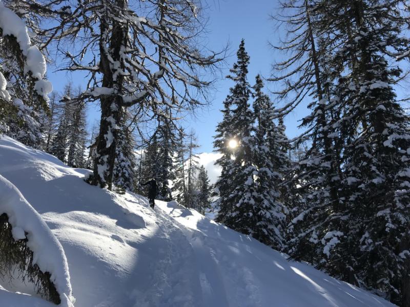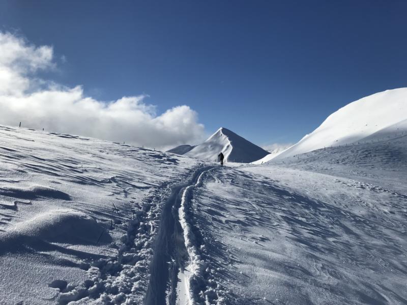 Heute bei traumhaften Bedingungen vom Parkplatz "Grund" im Ellmautal (Großarl) über die Filzmoosalm auf das Filzmooshörndl. Abfahrt zur Filzmoosalm, auffellen und Richtung Ost zum Nebeleck. Von dort Abfahrt und dann Aufstieg Richtung Loosbichl.