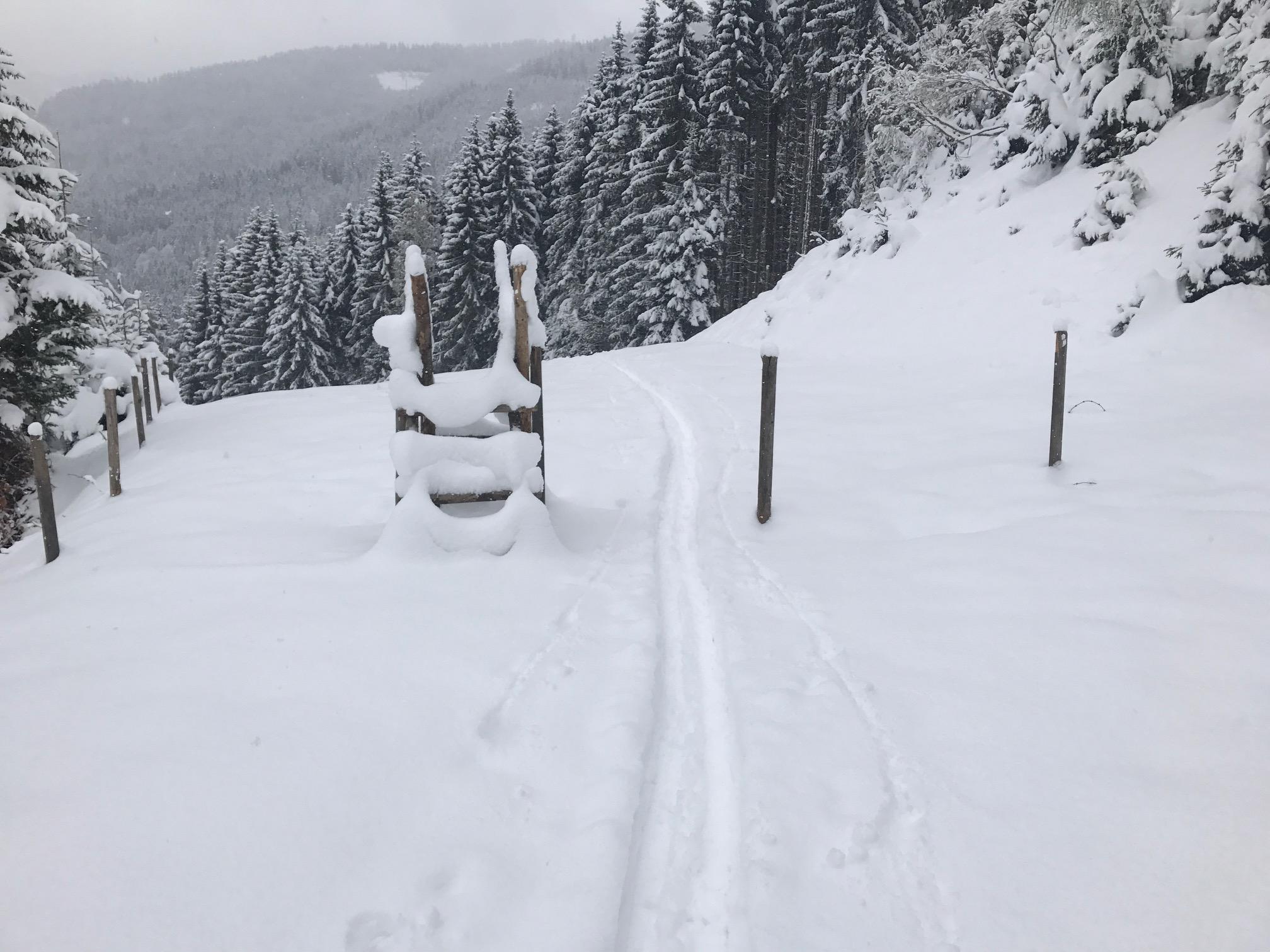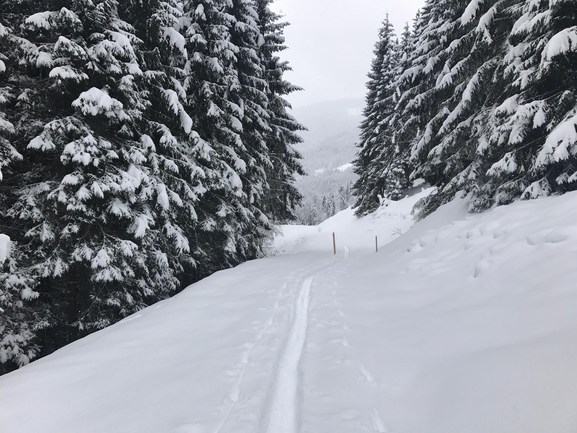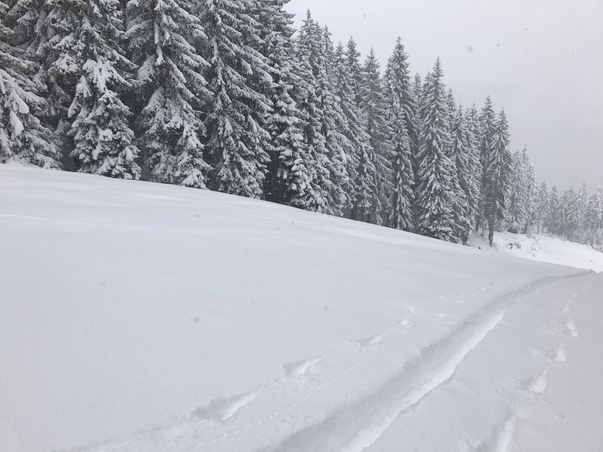 Schneeberg: Start PP Kabinenbahn Karbachalm in Mühlbach am Hochkönig bei -2 Grad. Aufstieg über Ostabfahrt. Wetter: leichter bis starker Schneefall. Schneehöhe von ca. 20cm bis zu 50cm ansteigend. Tiefwinterliche Bedingungen. Lawinen: keine Vorkommnisse. Für die ersten beiden Hänge sind „Stoanaski“ anzuraten. Teils intensiver „Feindkontakt“. Danach ein absoluter Pulvertraum. Bitte entschuldigt meine vertikal angelegte Aufstiegsspur – musste gegen Mittag wieder im Büro sein ;-)