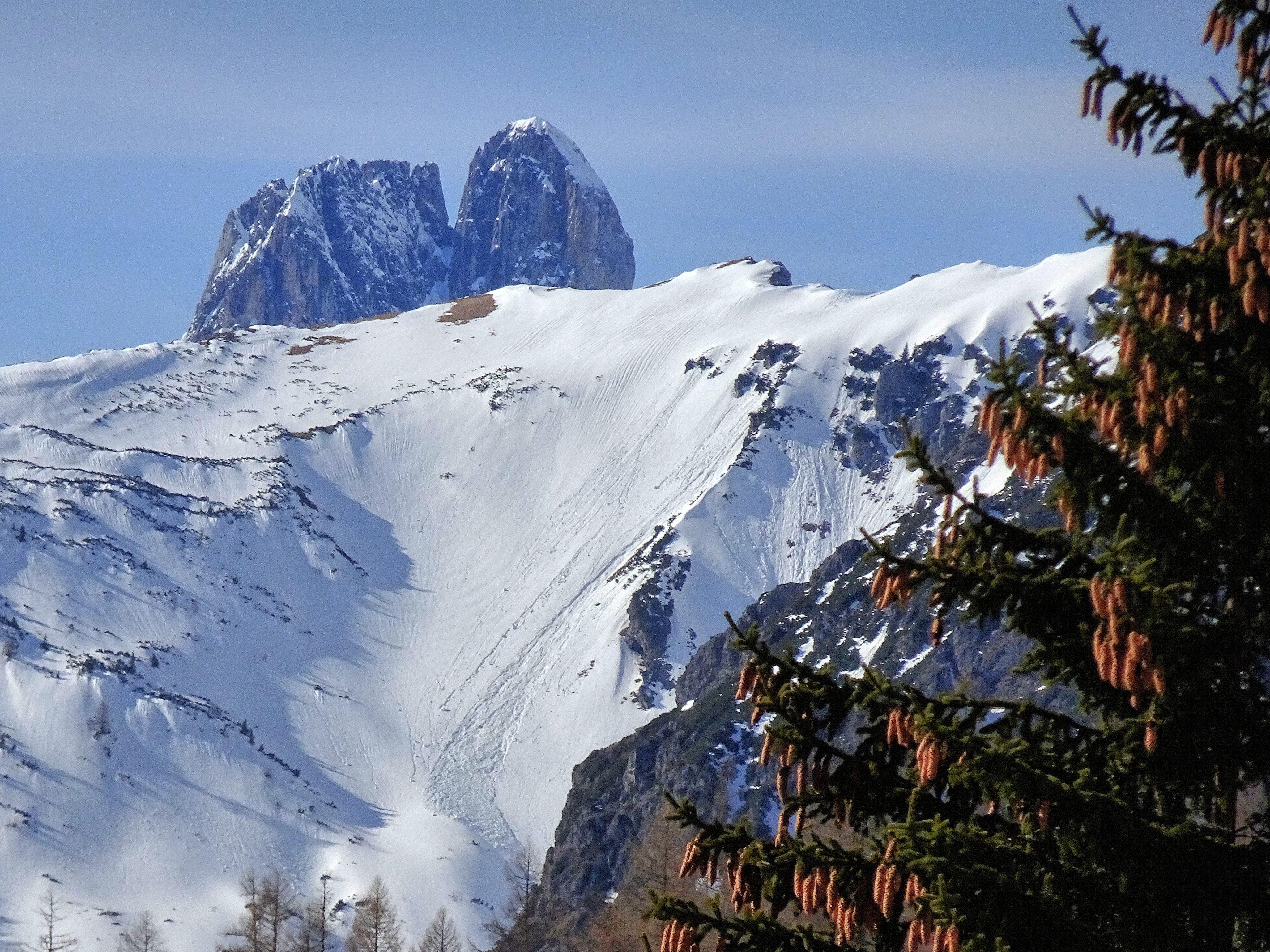 An der Dachstein Südseite sind derzeit keine Schitouren möglich. Selbst Forststraßen sind nicht sicher. Daher entschlossen wir uns heute neuerlich für den Rumpler. Auffahrt mit Bus und Bahn. Gesamt 80cm Neuschnee; Presspulver, nachlassender Wind am Hallstätter, Hochnebeldecke und Nasschnee ab 2100m. Ab Taubenkar aufreißen der Hochnebeldecke und Zauberwelt - wie so oft.
