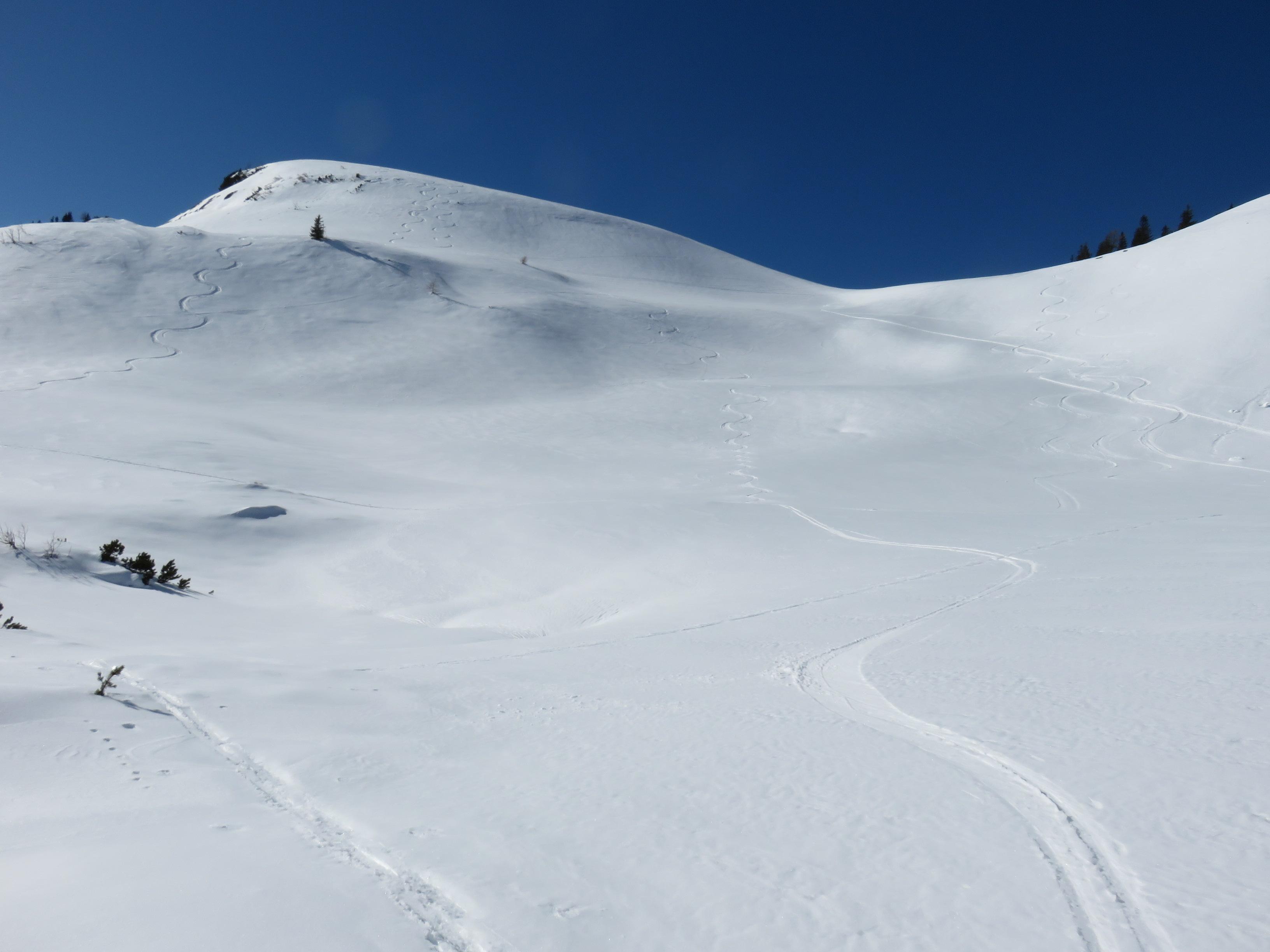 um 11 Uhr super Firn 3cm. Aufstieg zum Gr.Radl Abfahrt NO gesetzter Pulver mit leichter Kruste die aber nicht störte. Nochmal Aufstieg aufs Gr. Radl und Abfahrt